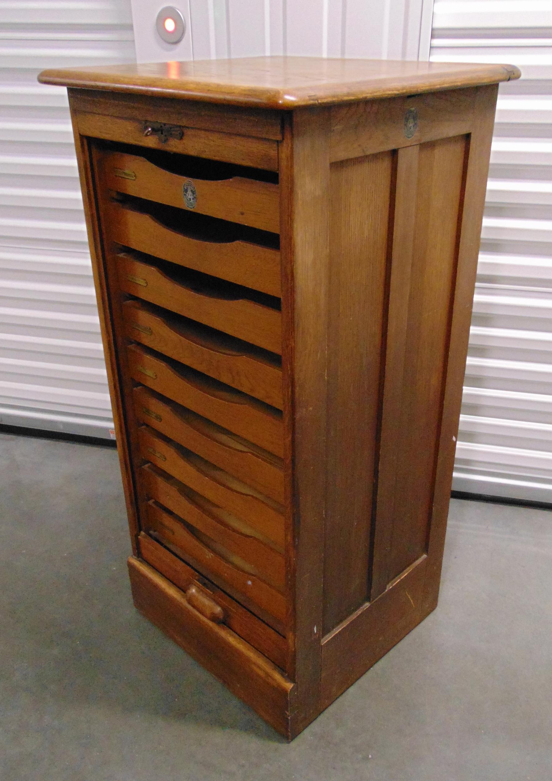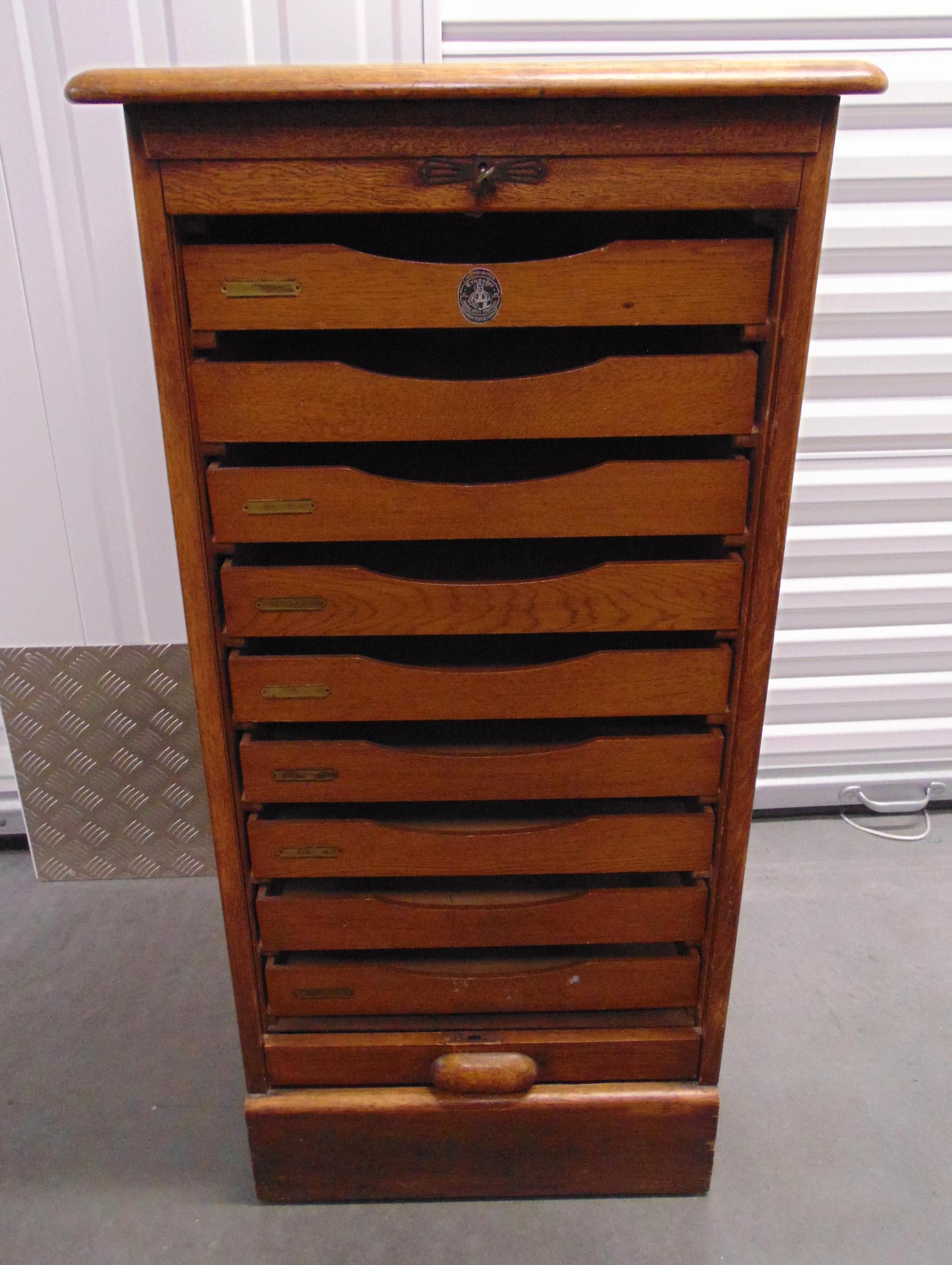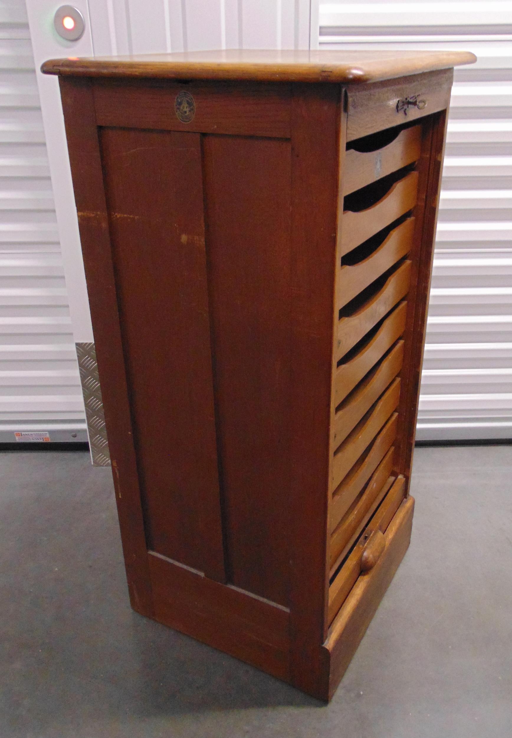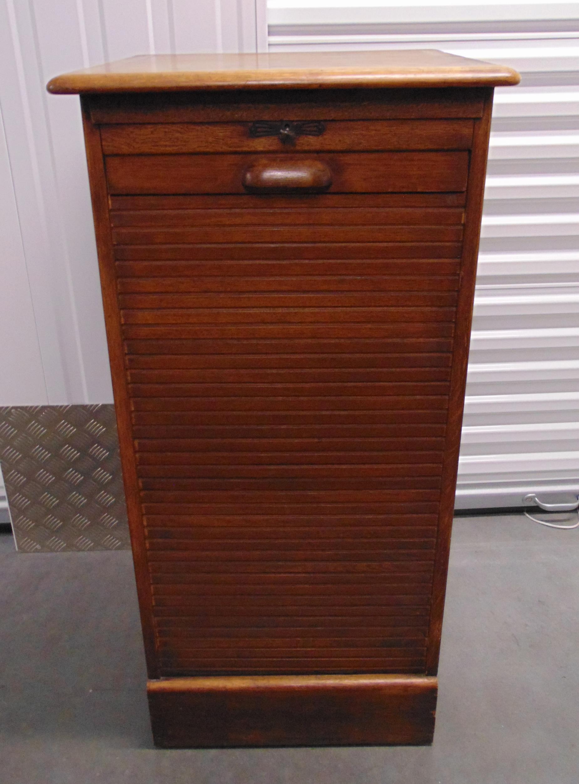A mid 20th century rectangular Crusader tambour front music filing cabinet, 112 x 58.5 x 52.5cm