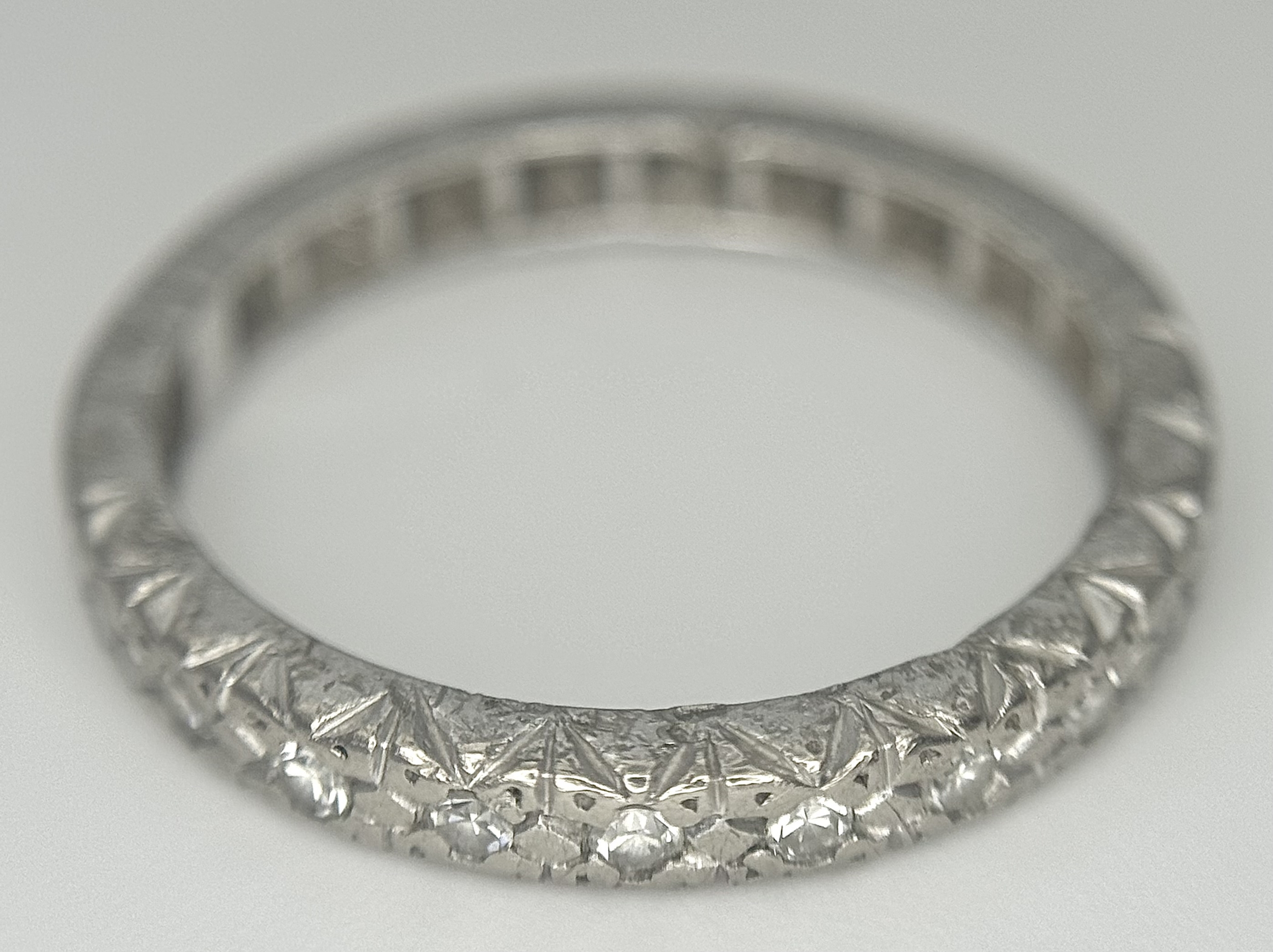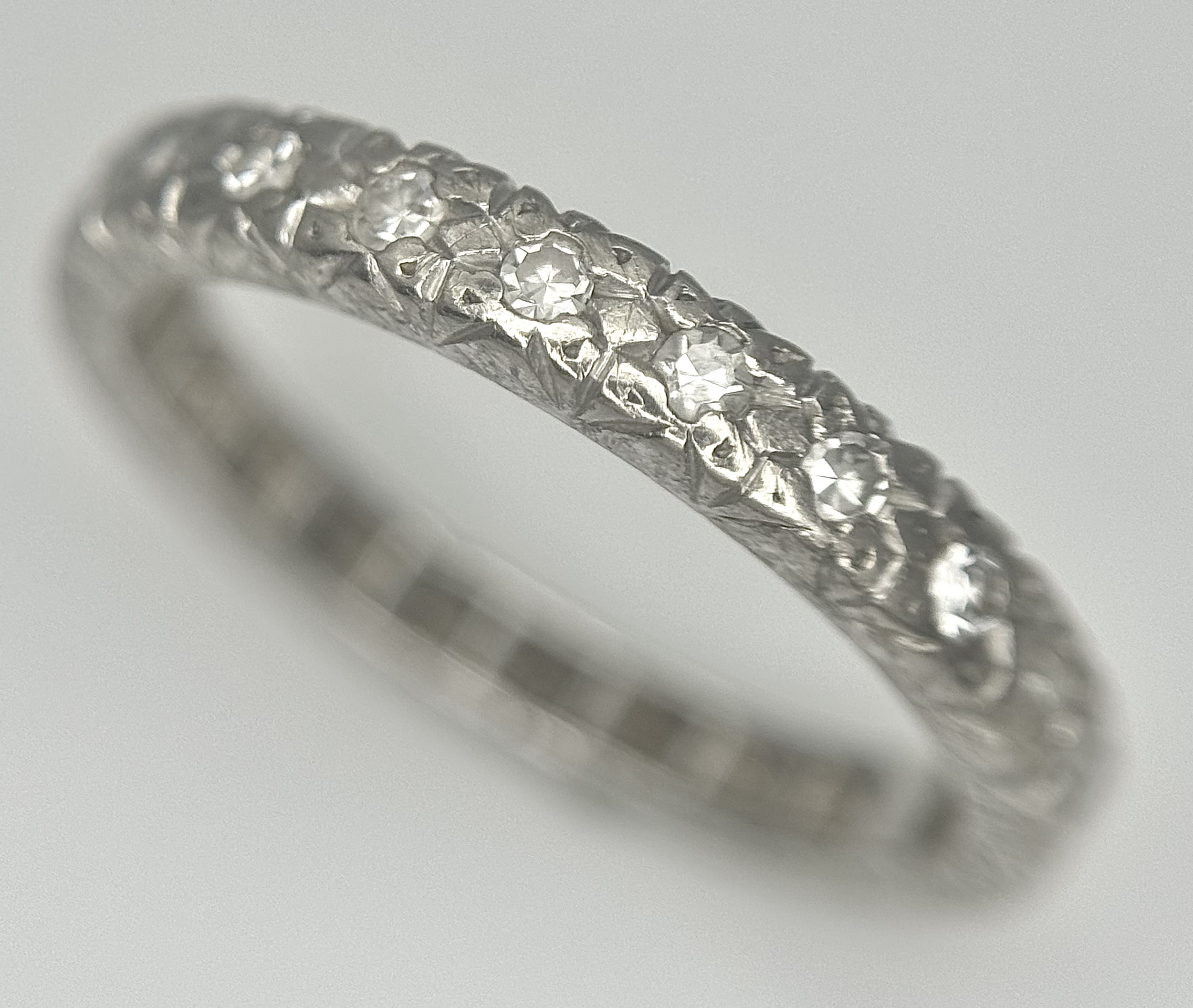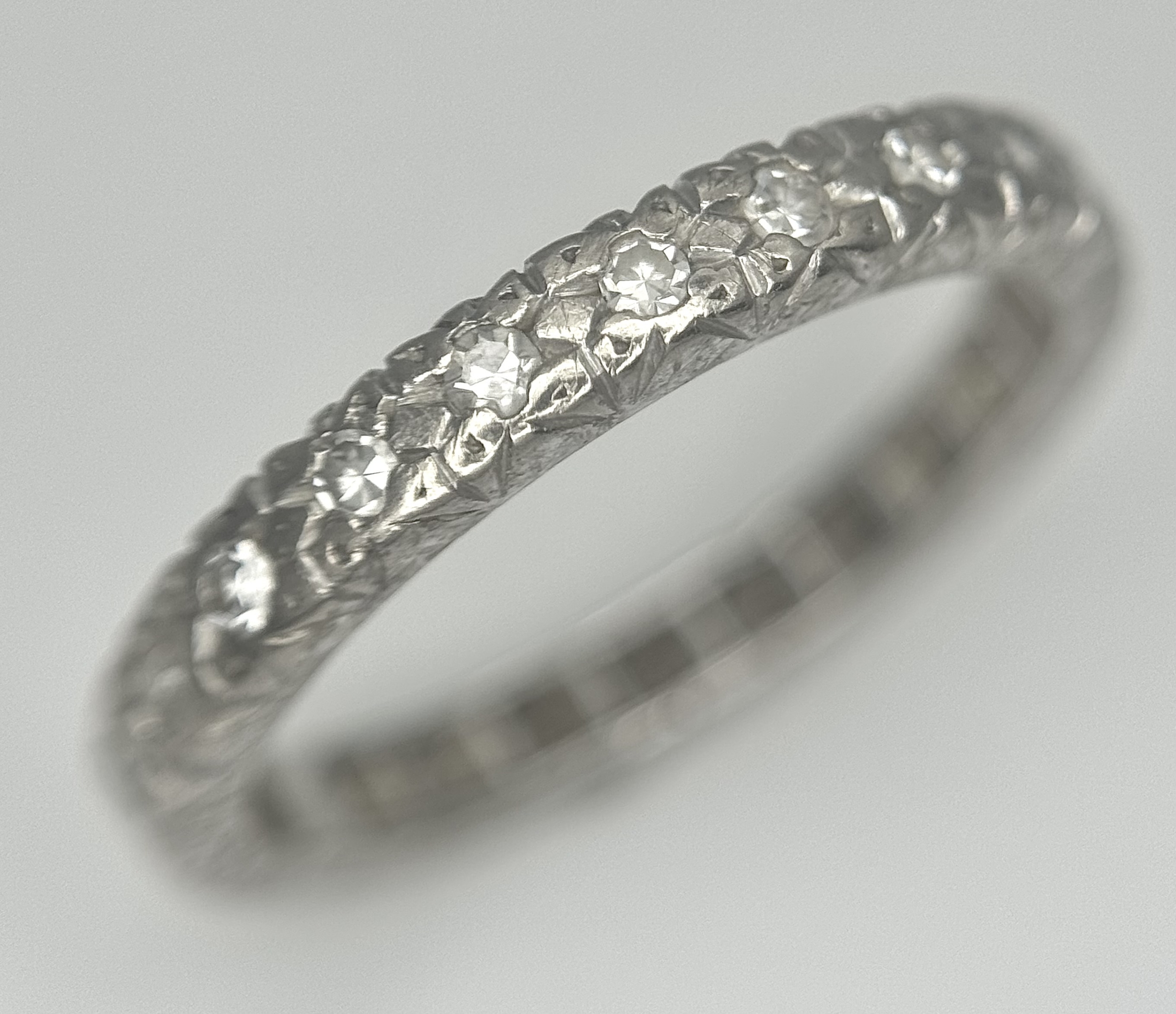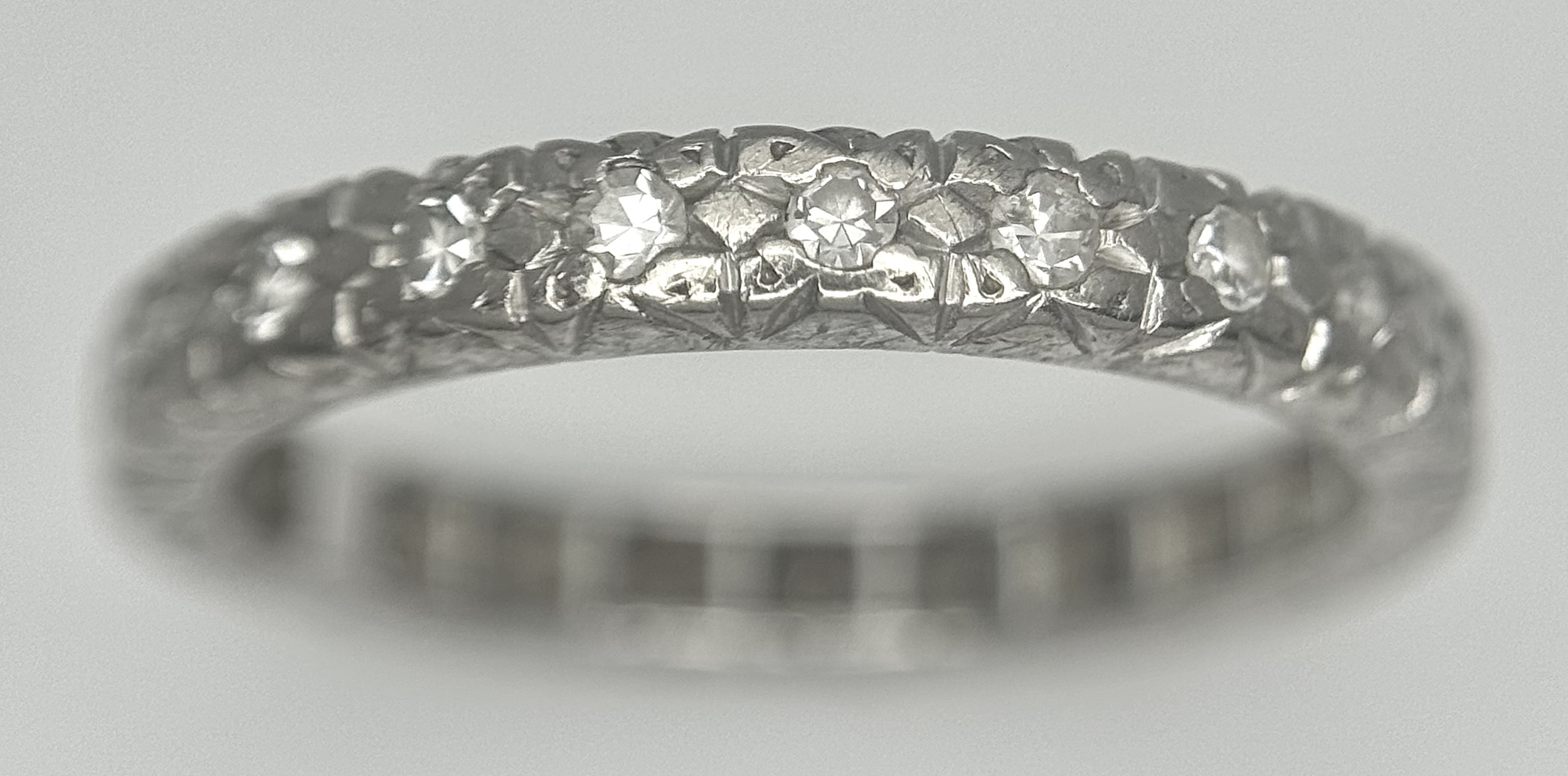 A Vintage 18K White Gold (tested) Diamond Half Eternity Ring. 0.11ctw diamonds. Size P. 4.5g. Ref: PN-3353.