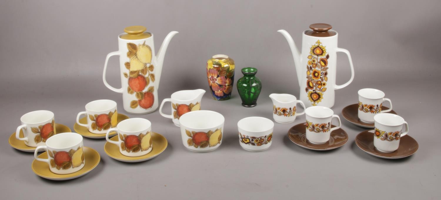 Two J & G Meakin part coffee sets, coffee pots, cups, saucers, milk jug, sugar pot etc to include a shooting stick