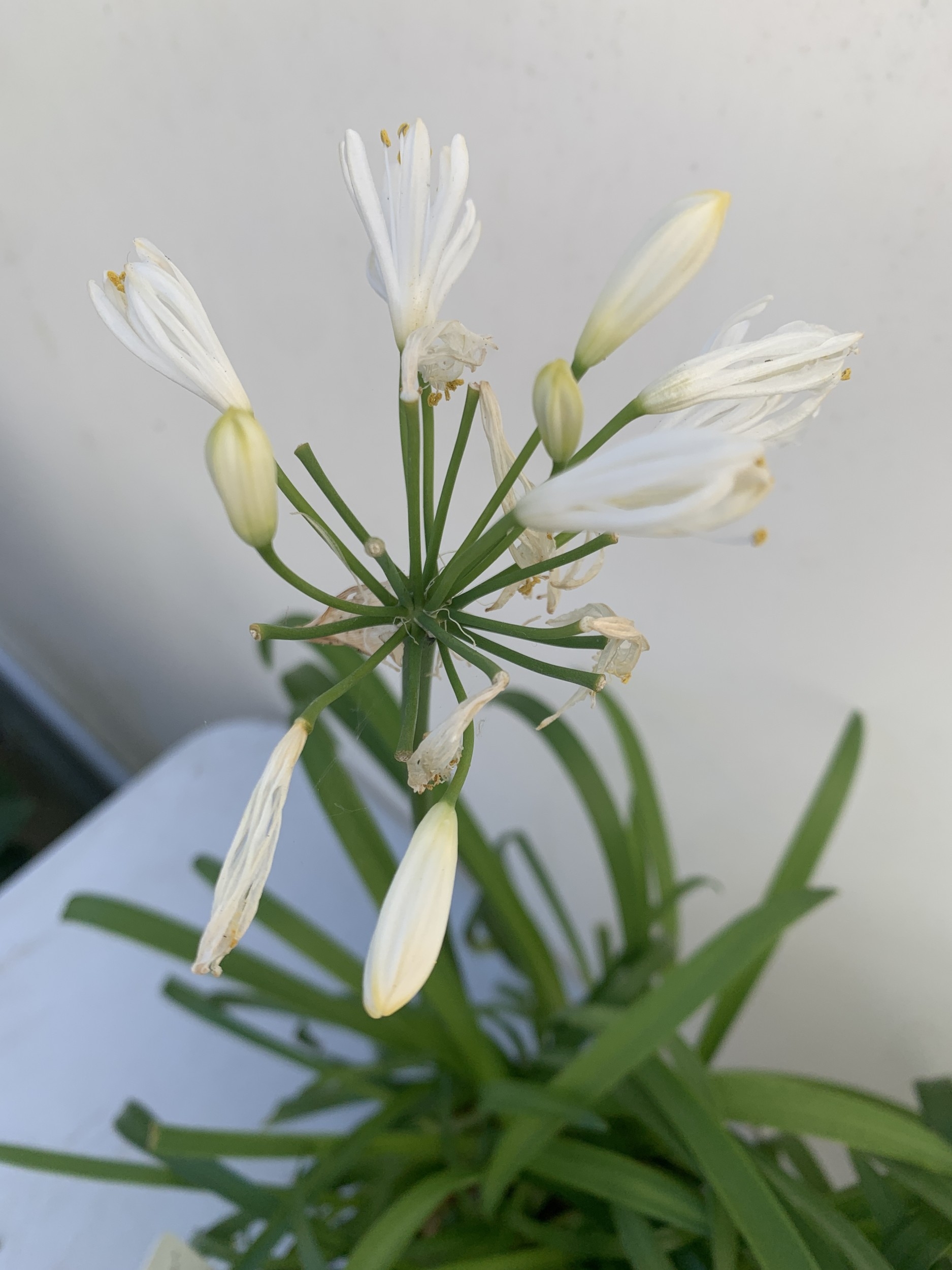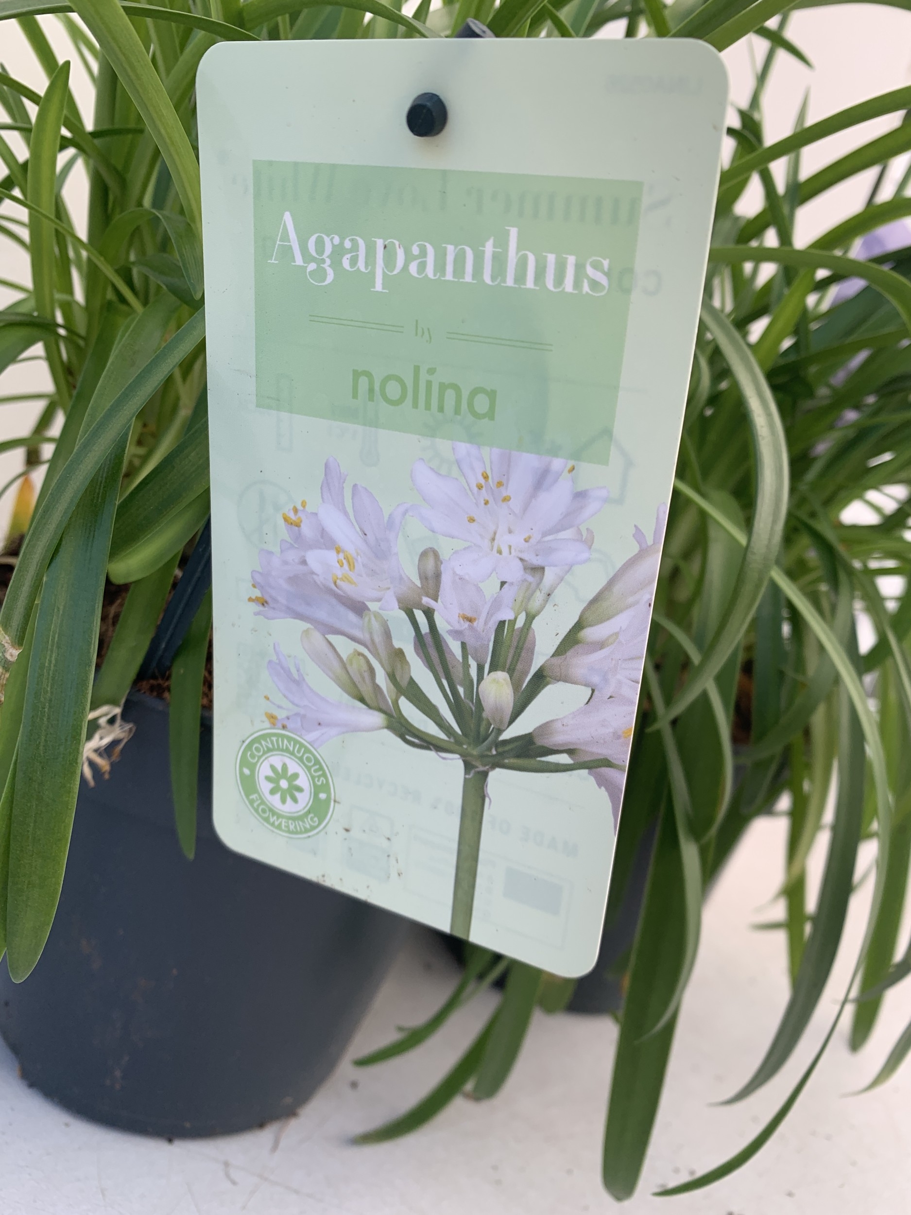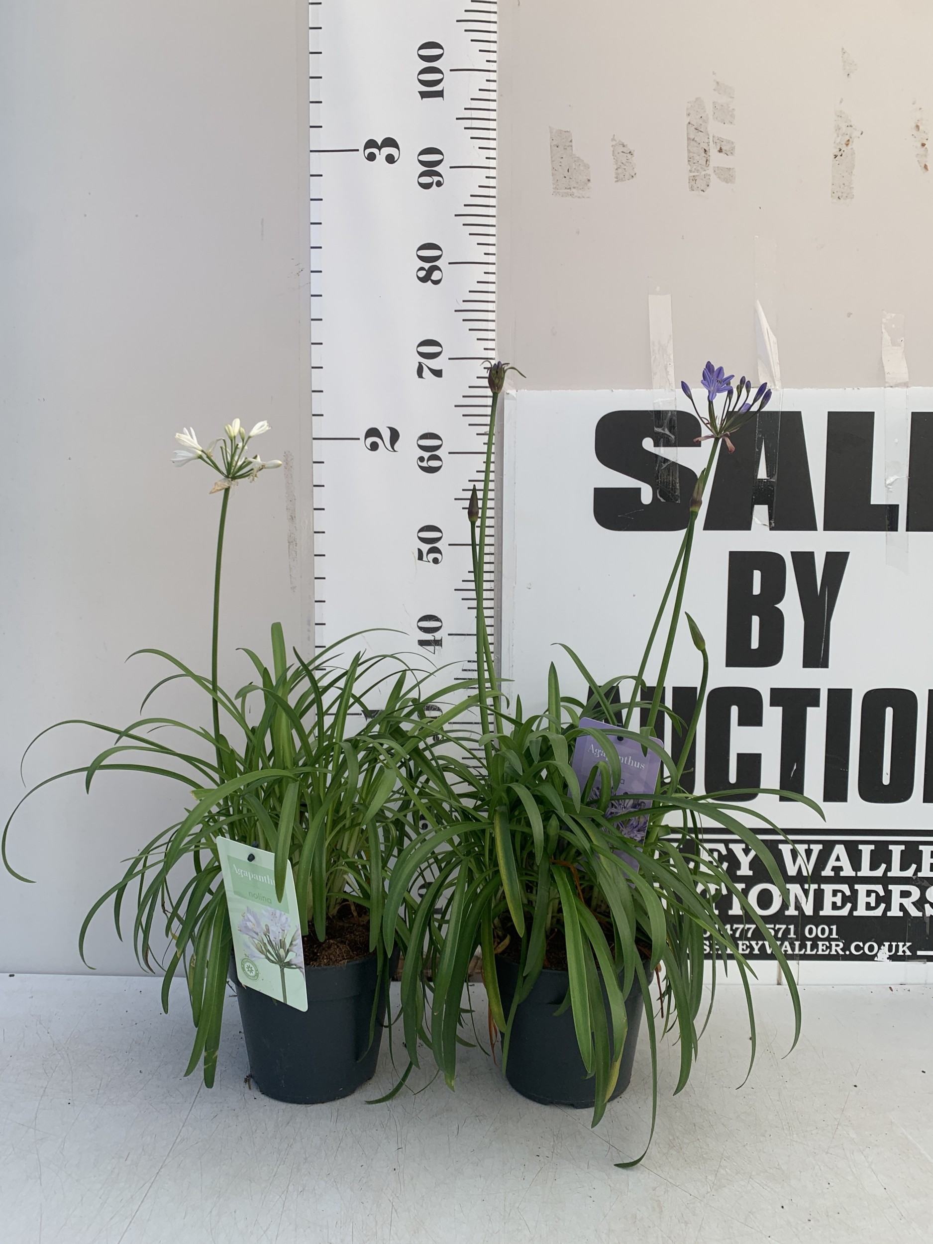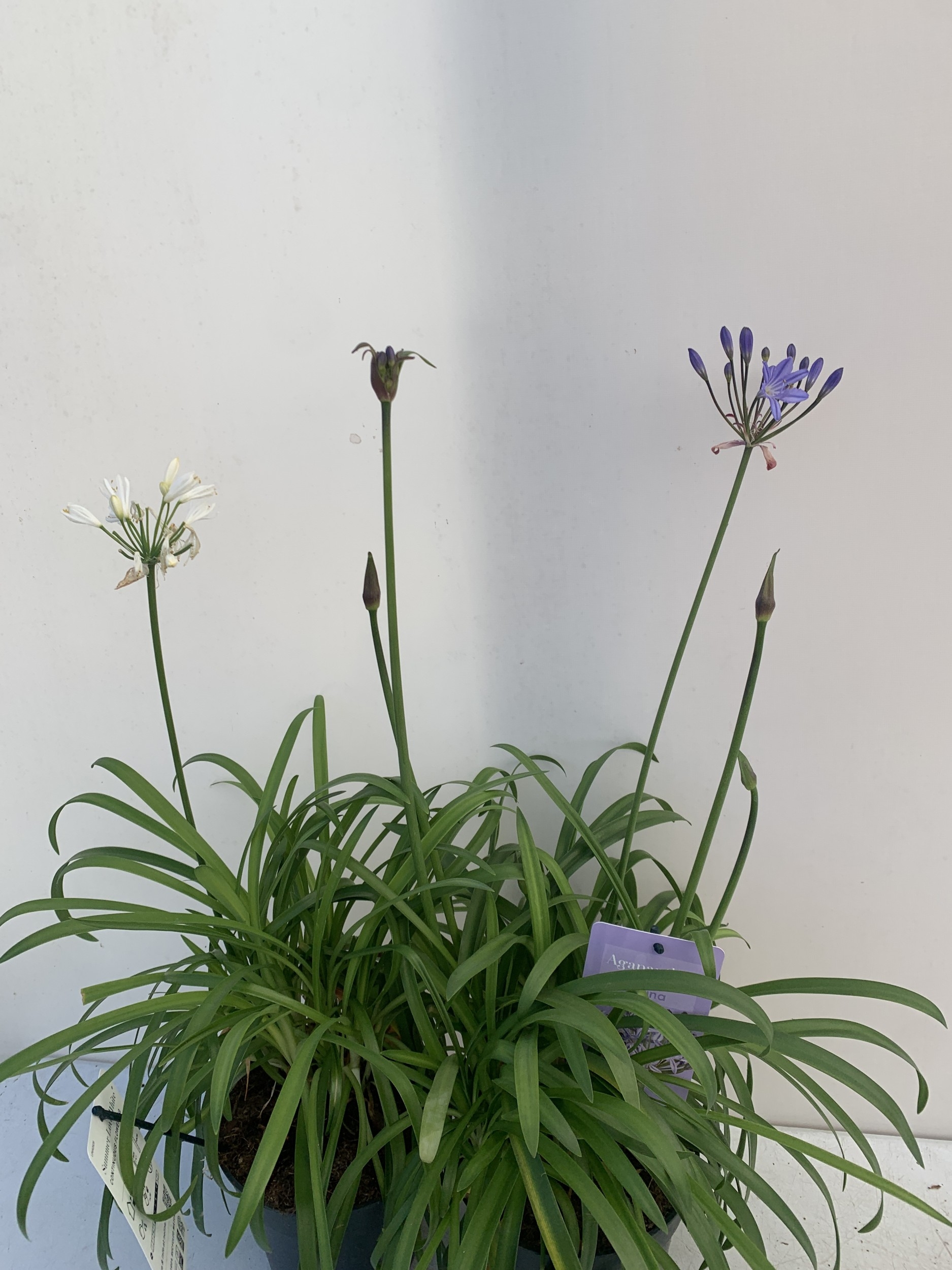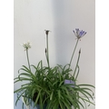 TWO MIXED AGAPANTHUS- ONE WHITE 'SUMMER LOVE' AND ONE PURPLE NOLINA IN 2 LTR POTS. APPROX 70CM TALL, TO BE SOLD FOR THE TWO