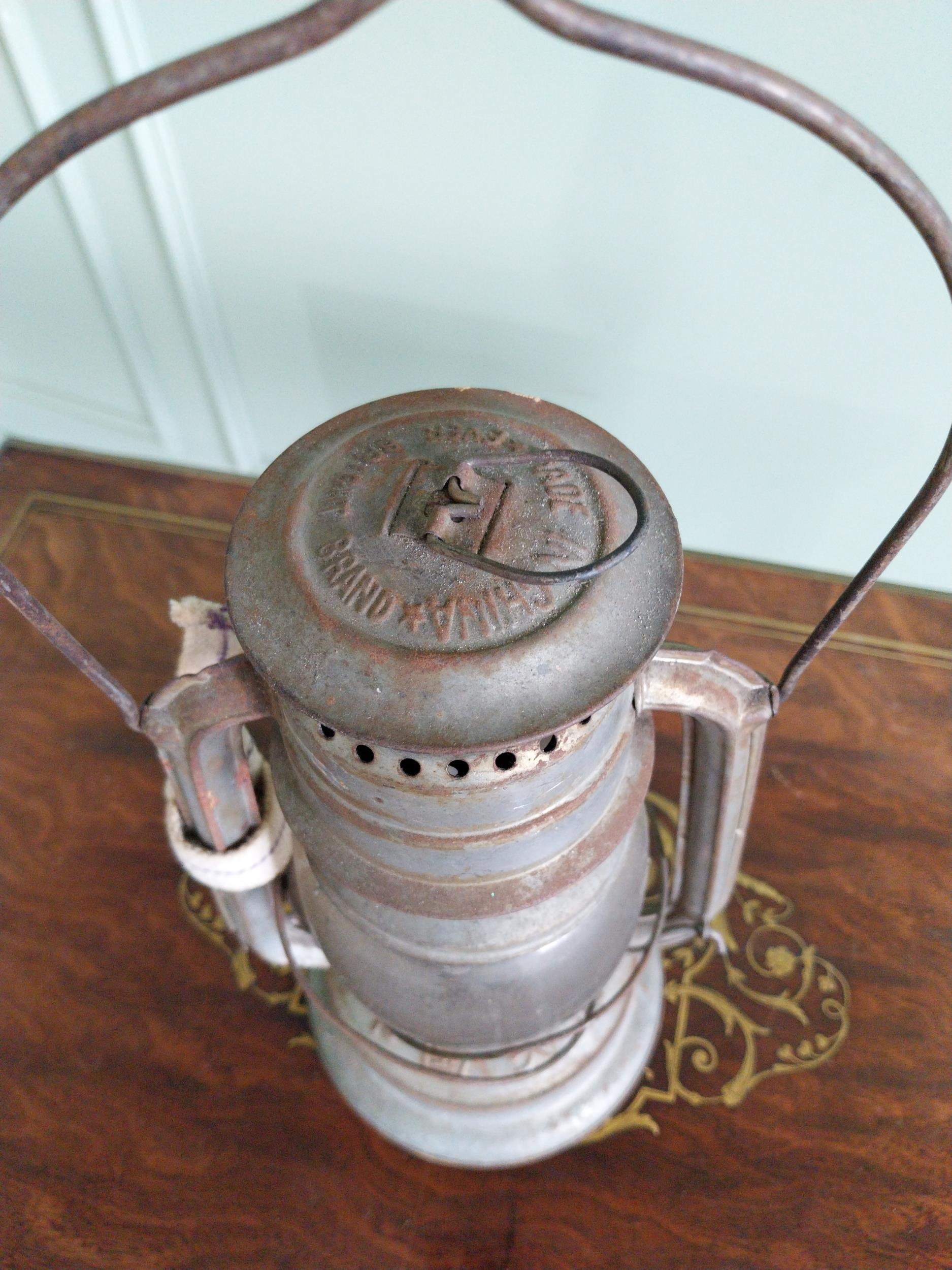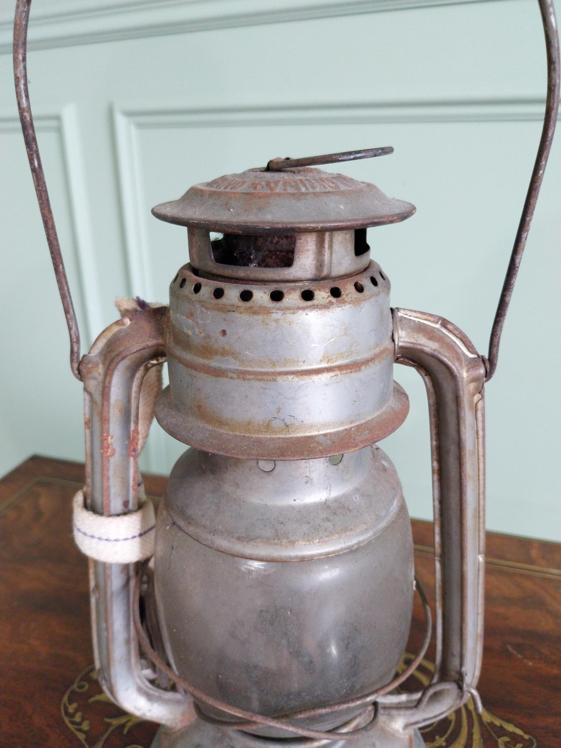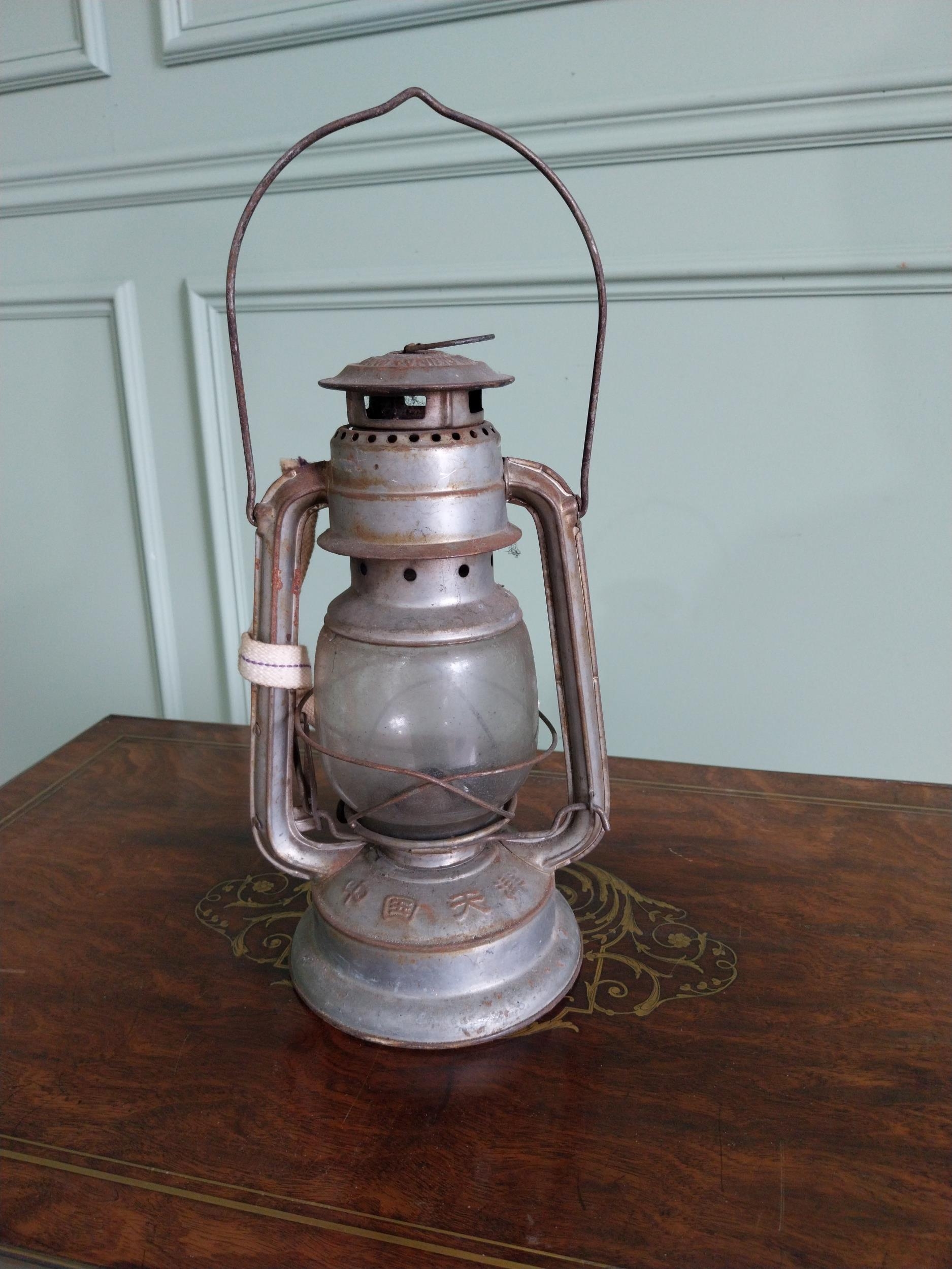 Early 20th C. tinplate hurricane lamp {38 cm H x 19 cm W x 1...
