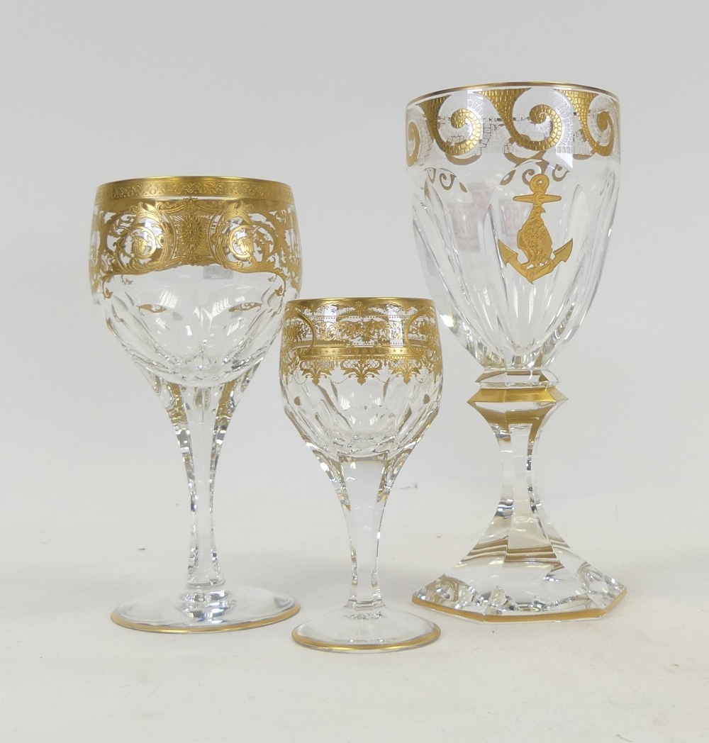 De Lamerie, heavily gilt decorated wine glass, goblet and sherry glass. (3)