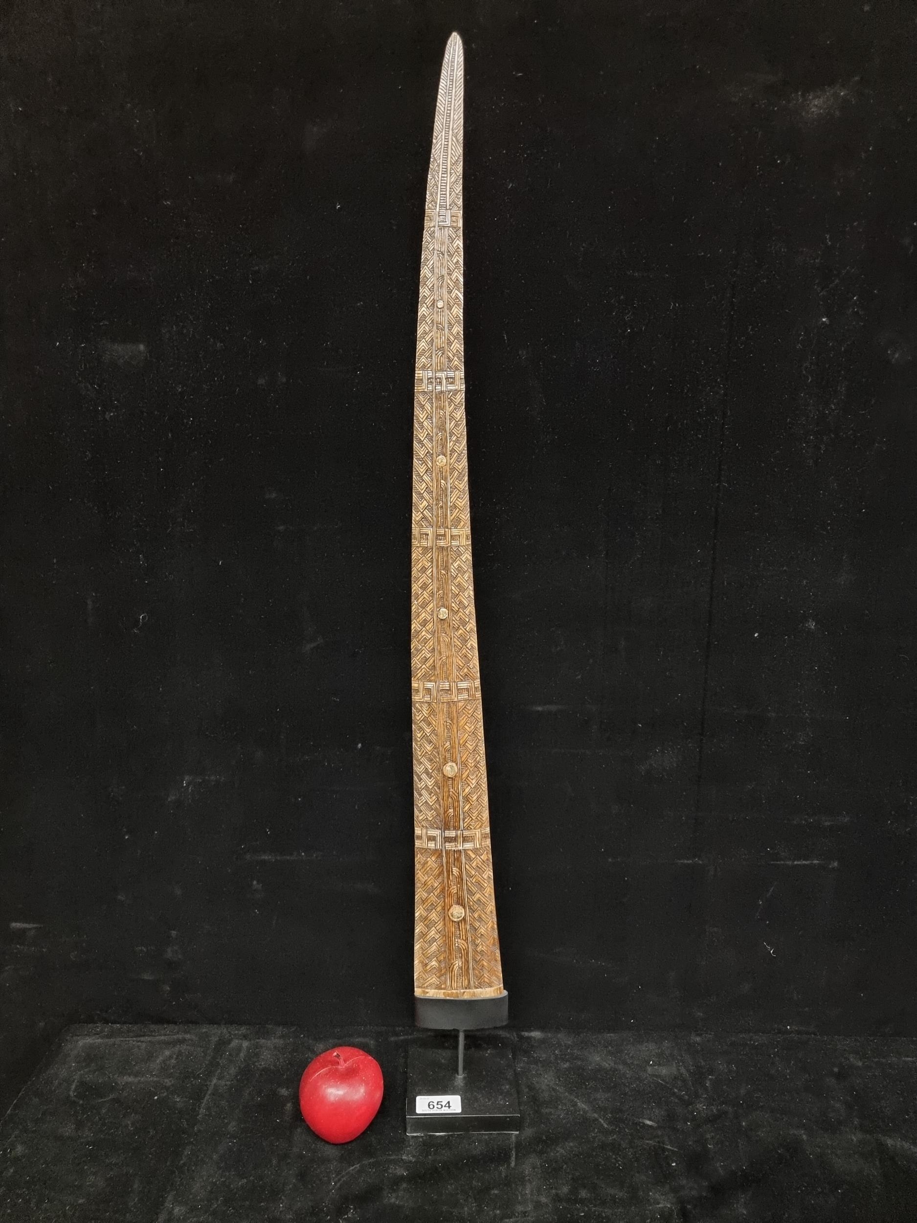 Star Lot : A stunning intricately carved swordfish bill mounted on a metal base. Mm: 90cm high. Super cool piece.