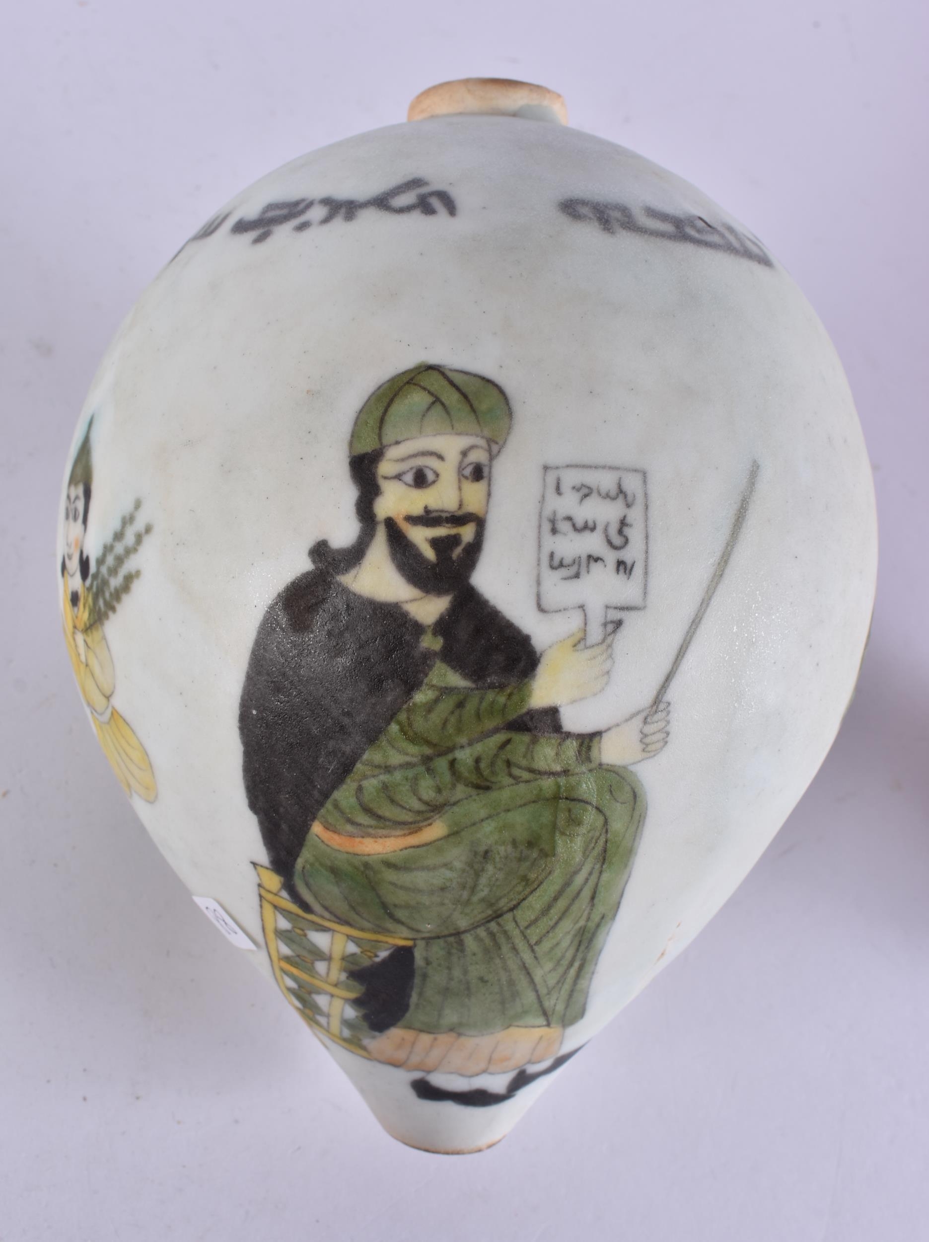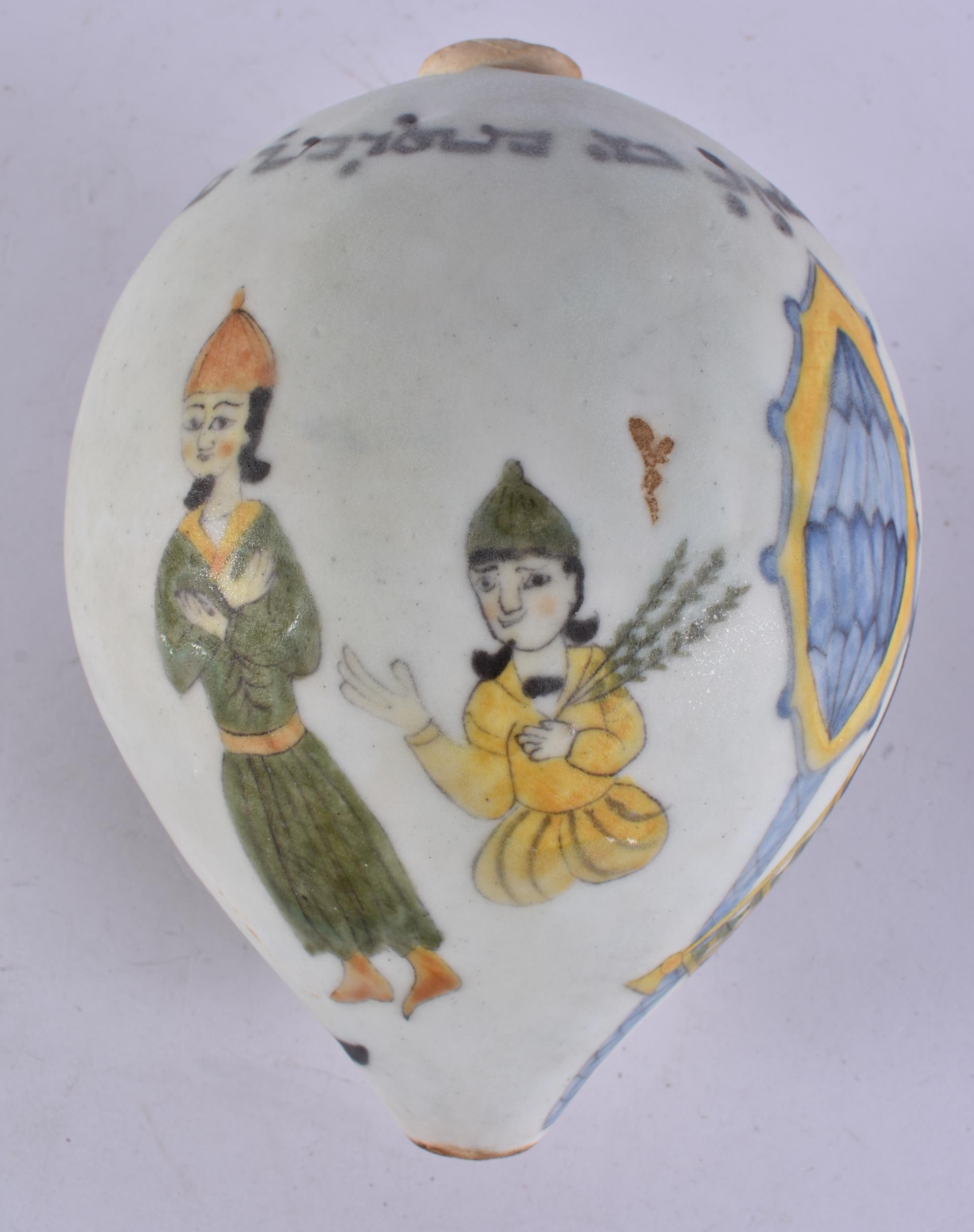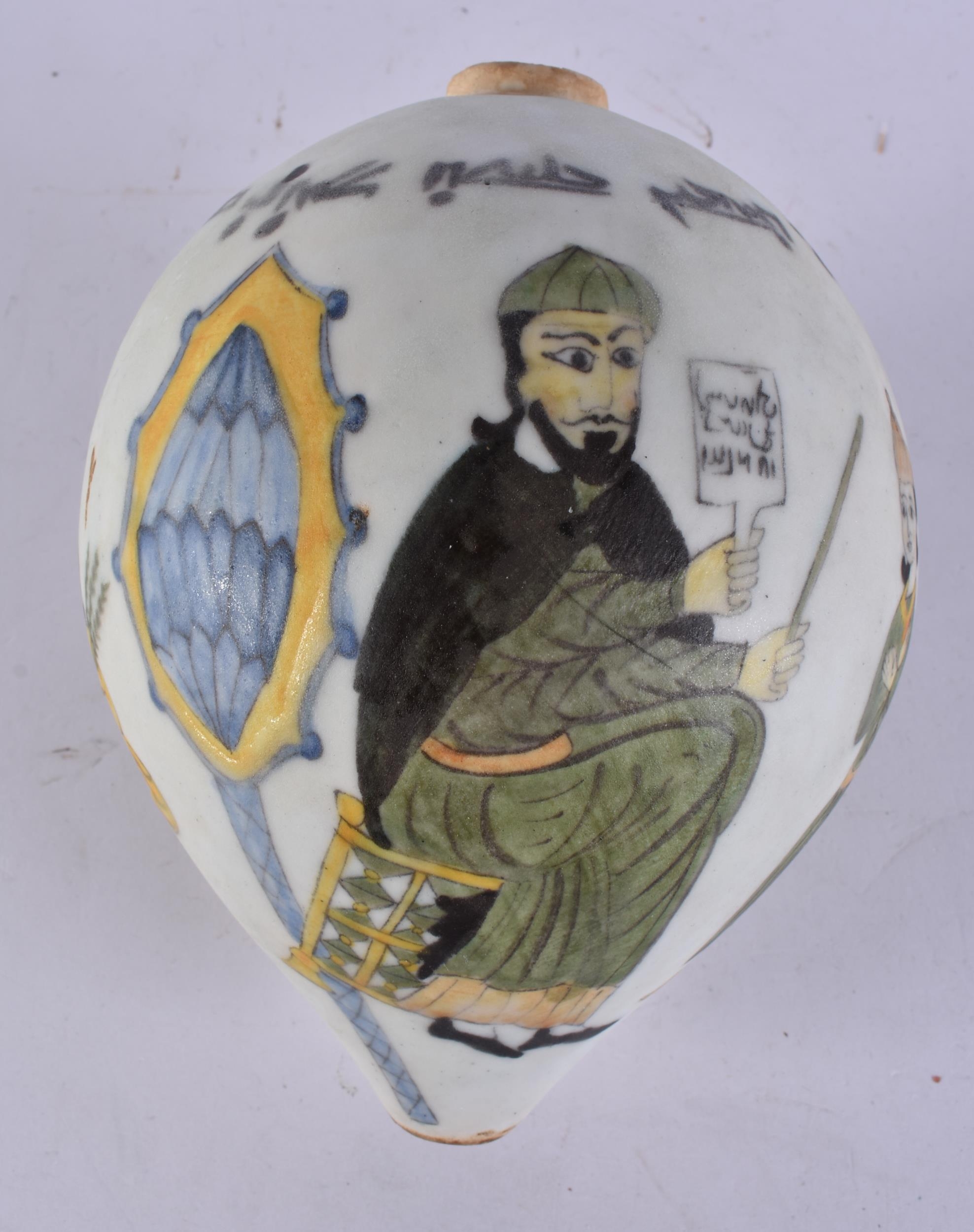 A LARGE TURKISH KUTAHYA POTTERY HANGING MOSQUE BALL. 22 cm x 12 cm.