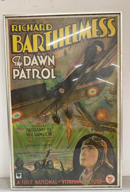 A vintage framed film poster for Richard Barthekness Dawn Patrol 54cm x 74cm