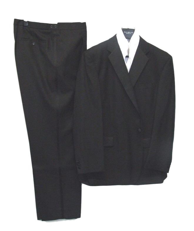 Mens Berwin & Berwin Black Wool Dress Suit, jacket 48" chest, trousers 44" waist & David Lalimer Shirt with wing collar