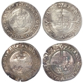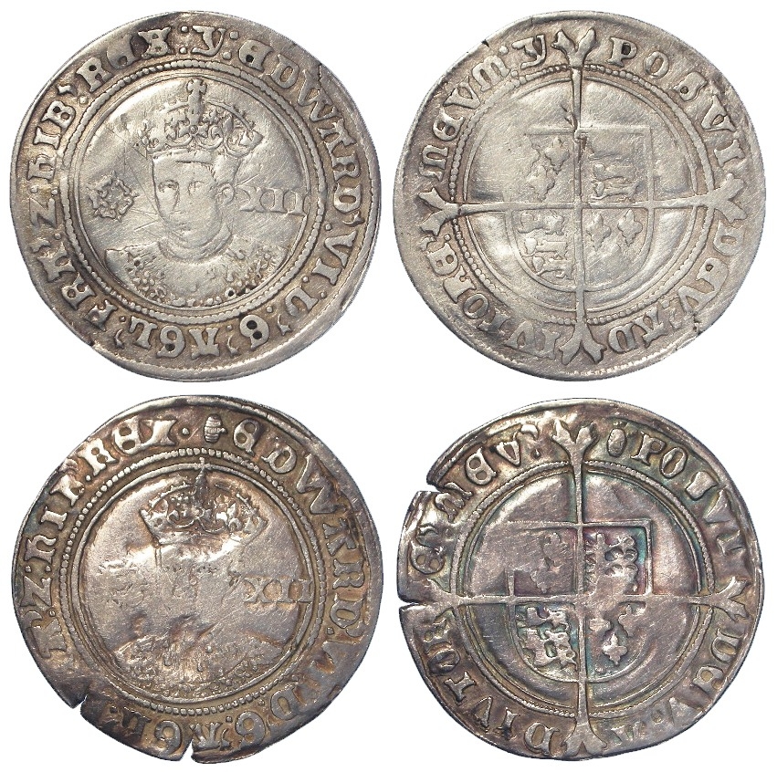 Edward VI fine silver Shillings (2) S.2482 - mm. y cleaned Fine, light scratches, and mm. tun Fine with some small dents and splits.