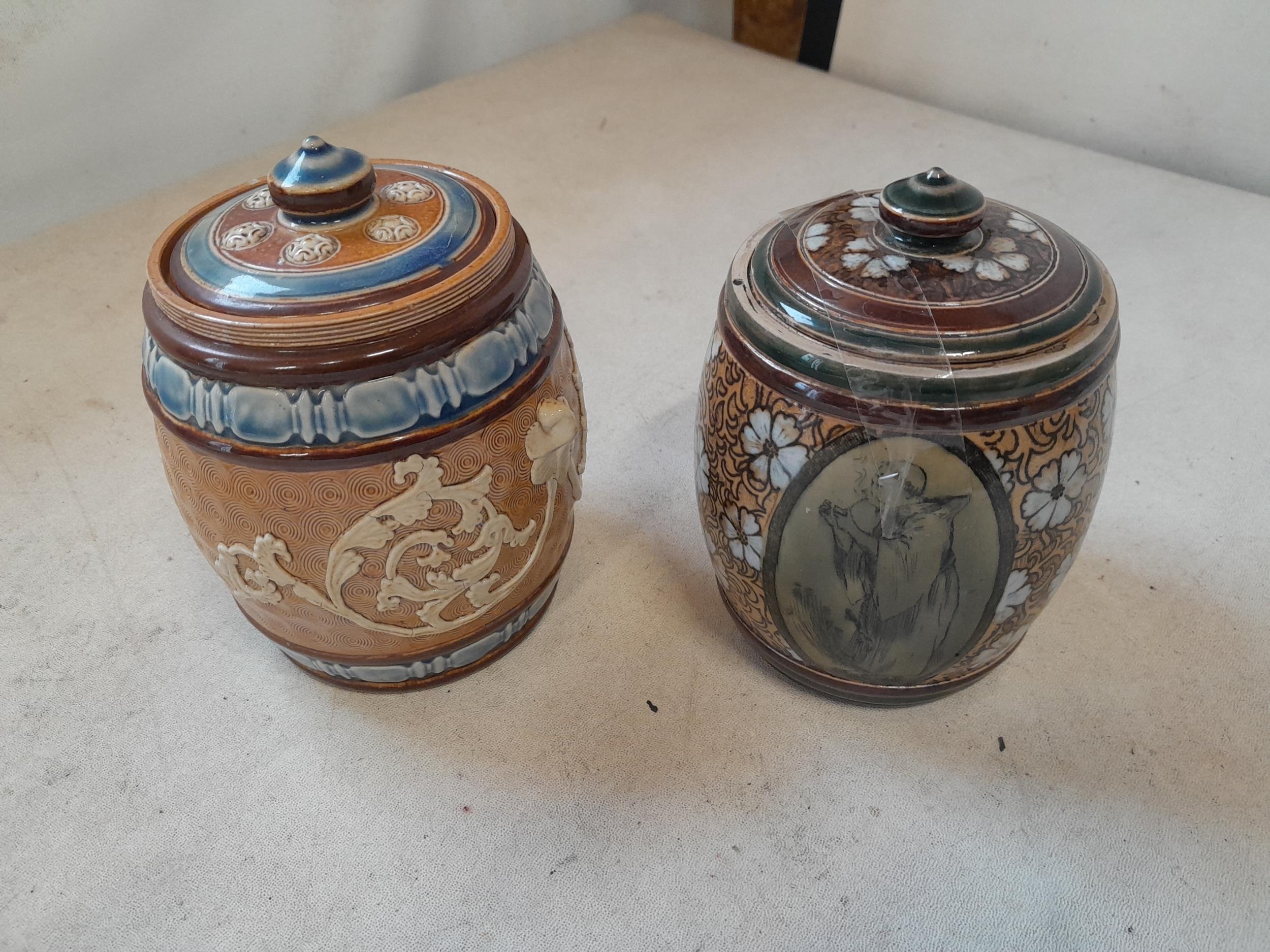 2 x Royal Doulton stoneware tobacco vases with lids