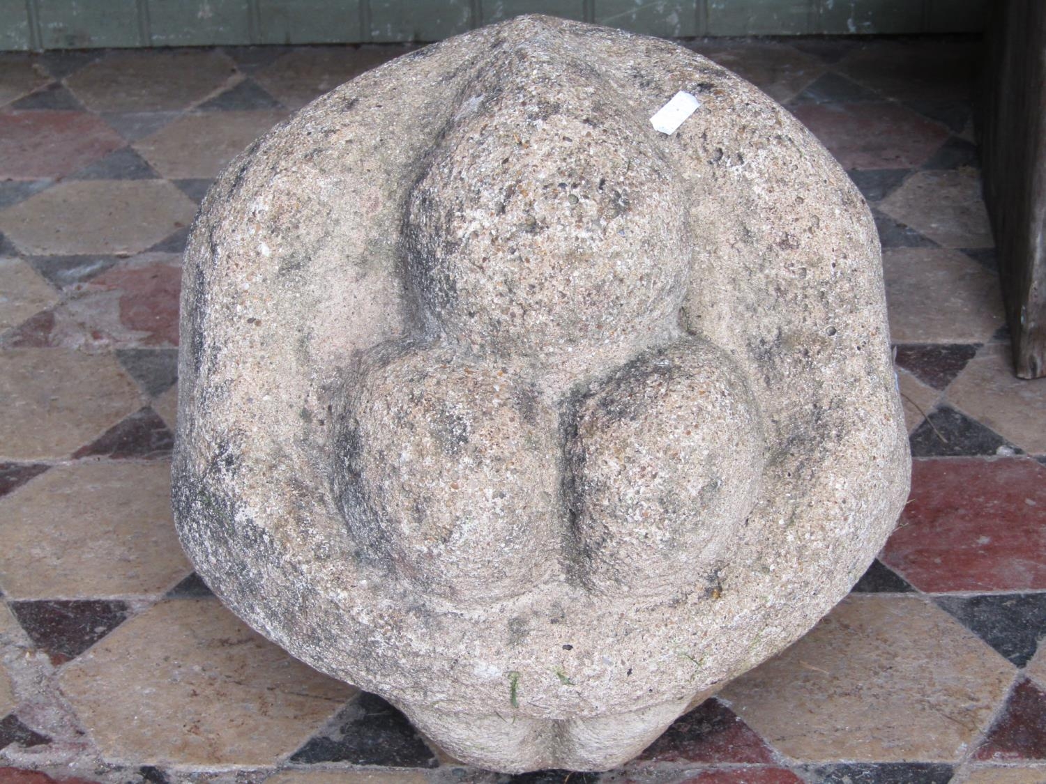 A reclaimed garden ornament/sculpture of a figure curled up into a ball 36 cm in diameter approx