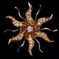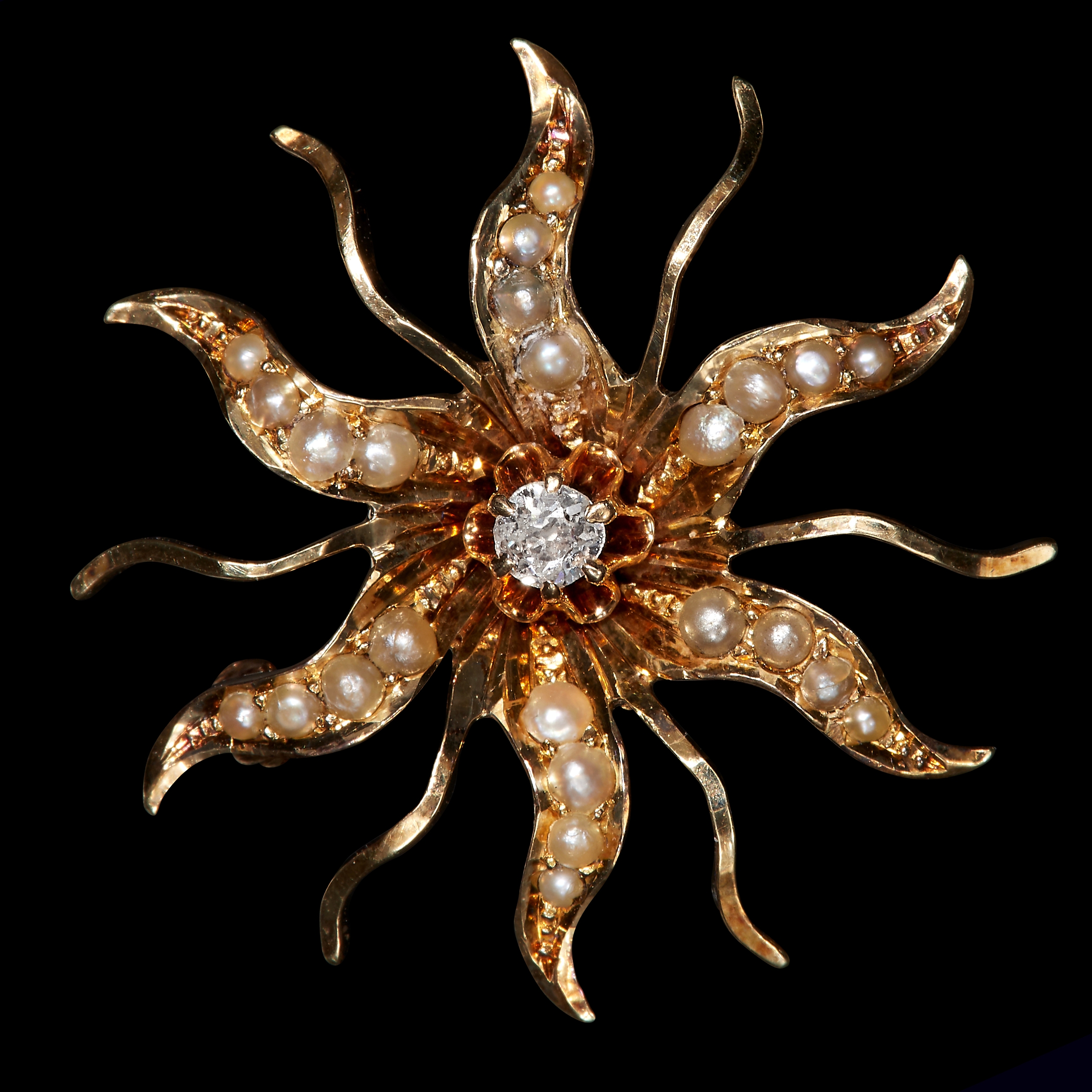 ANTIQUE PEARL AND DIAMOND STAR BROOCH. W. 2.5 cm. 3.1 grams.