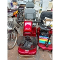 A red Rascal ride on four wheeled mobility scooter with key,...