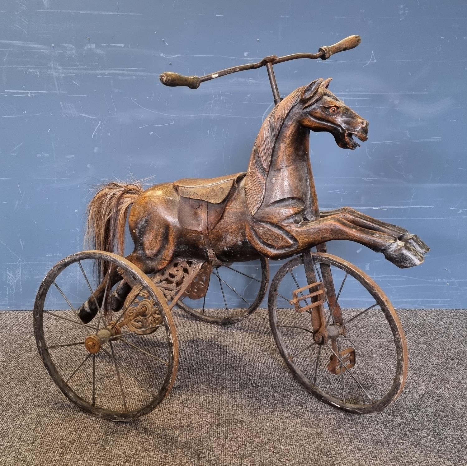 Tricycle, Carved Horse. H:85 x W:90 x D:63cm