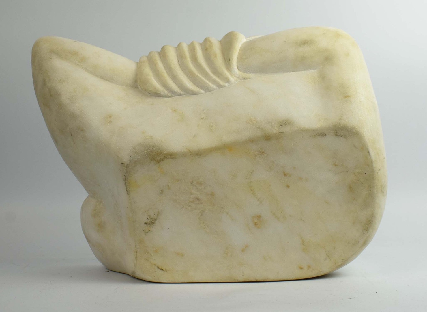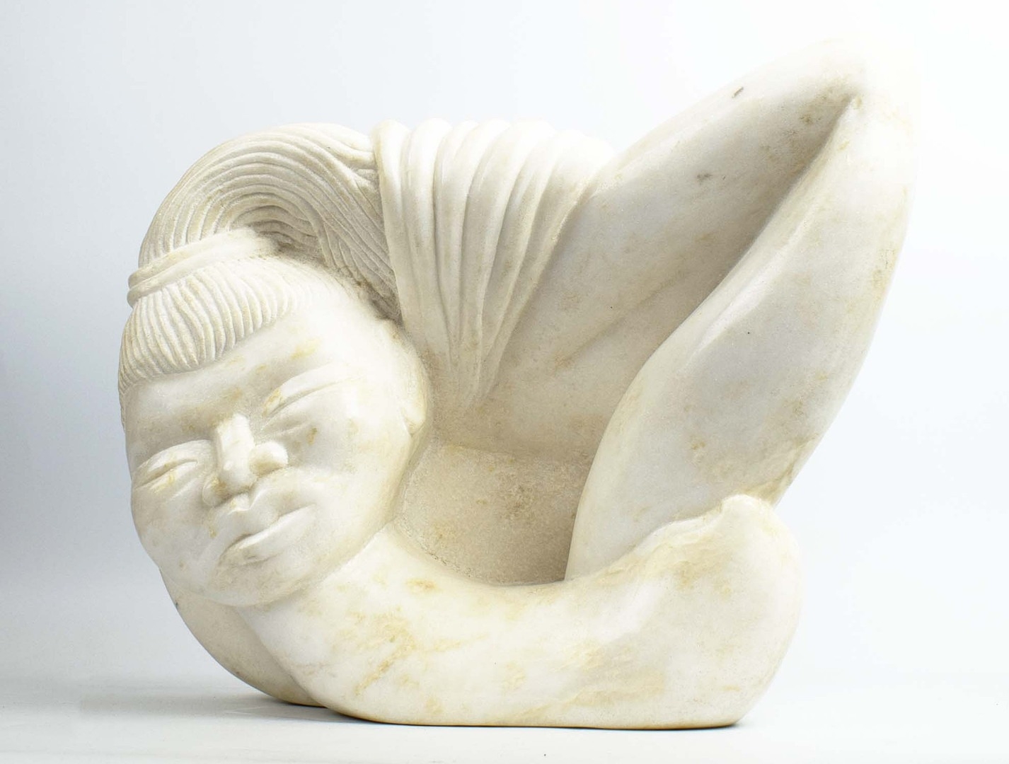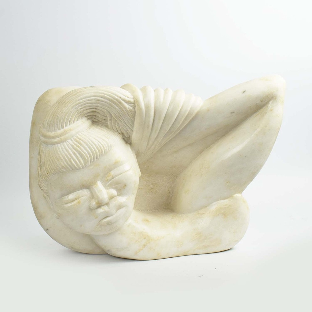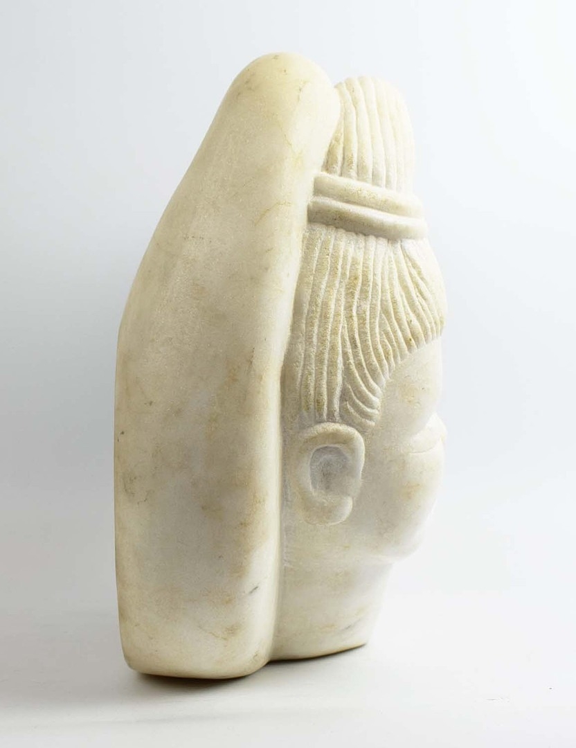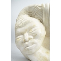 WAYNE ( ASIAN SCHOOL ). BLESSING BOWL IN FORM OF A HEAD. White Marble, 50cms, signed to base.