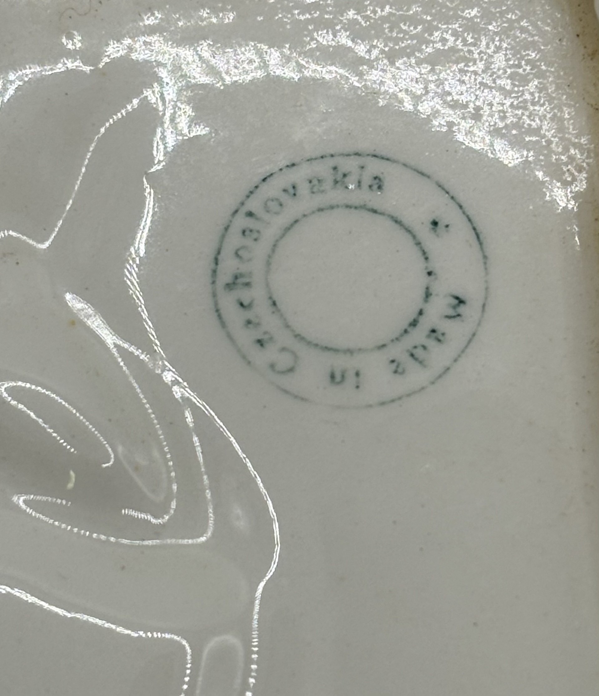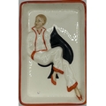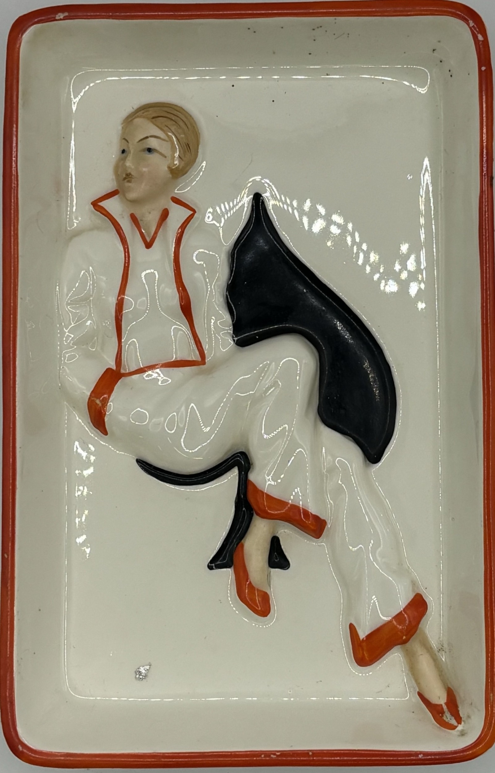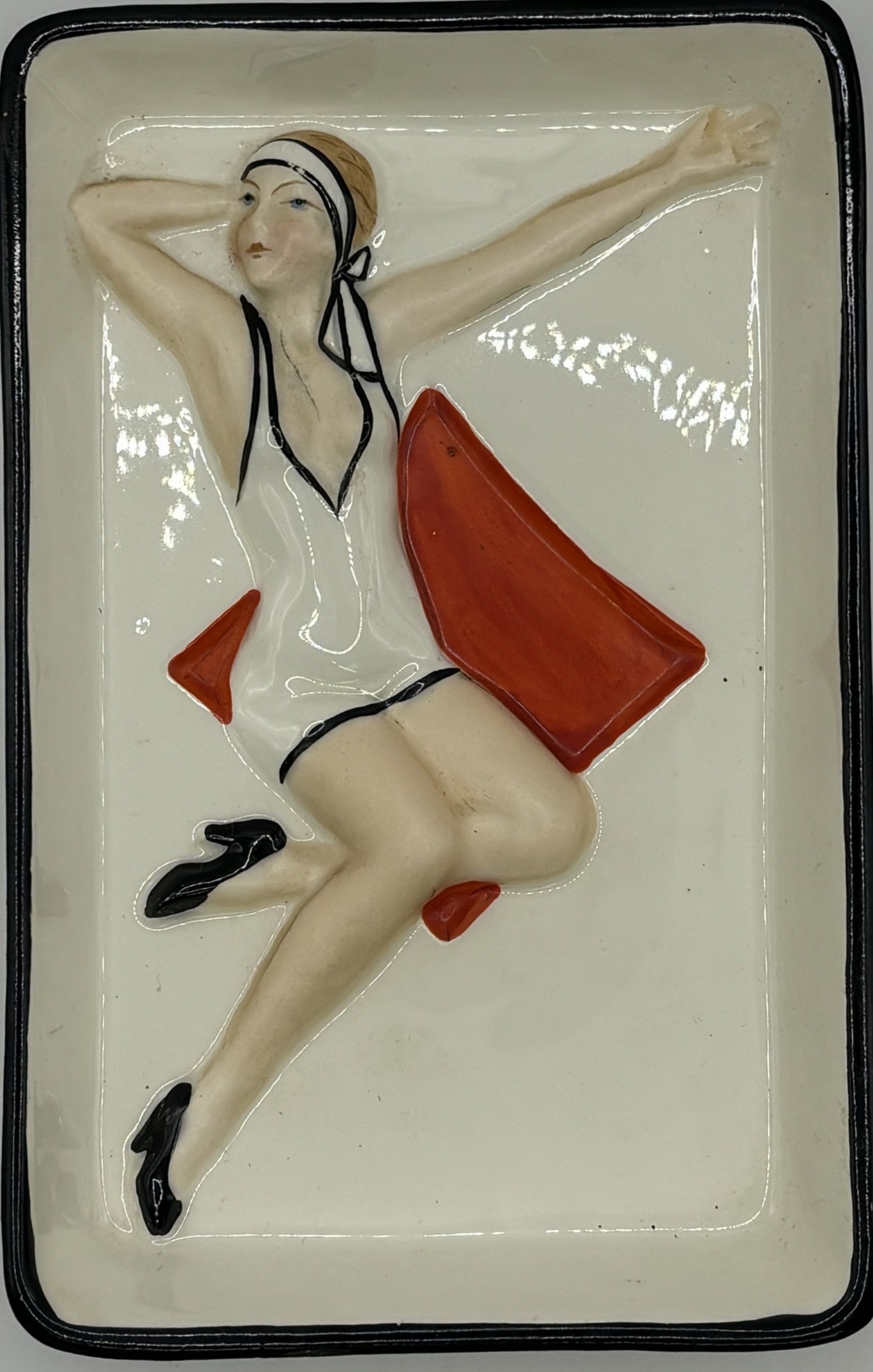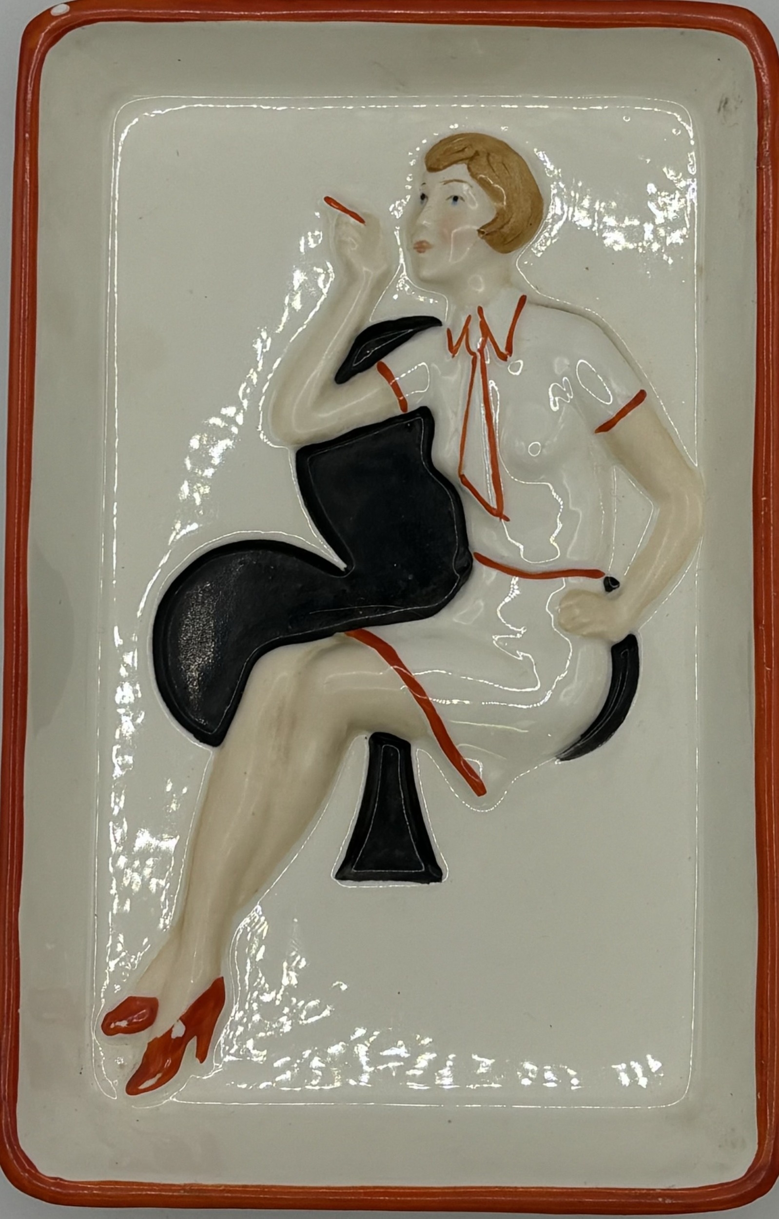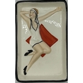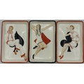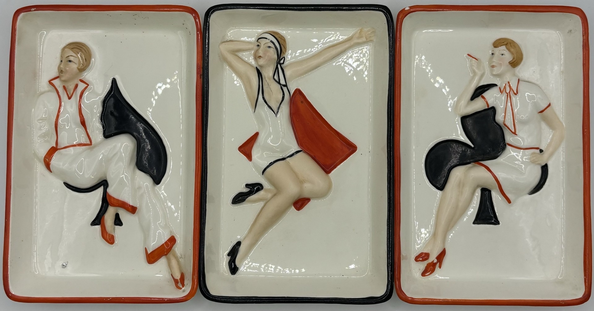 Three Art-Deco style wall plates. Each depicting a lady & playing card suit. Made in the former Czechoslovakia. Dimensions(cm) H15, W10, D2.