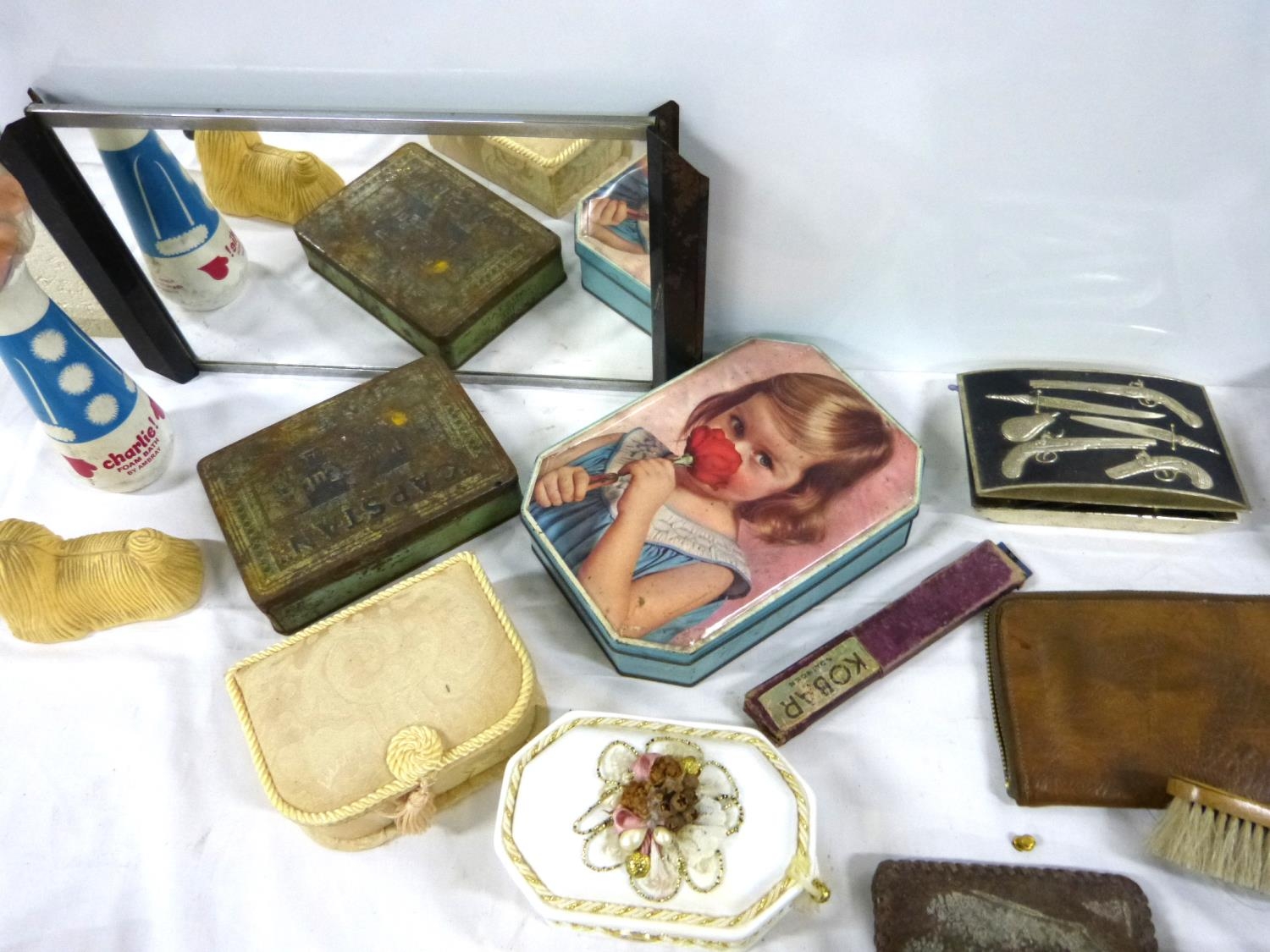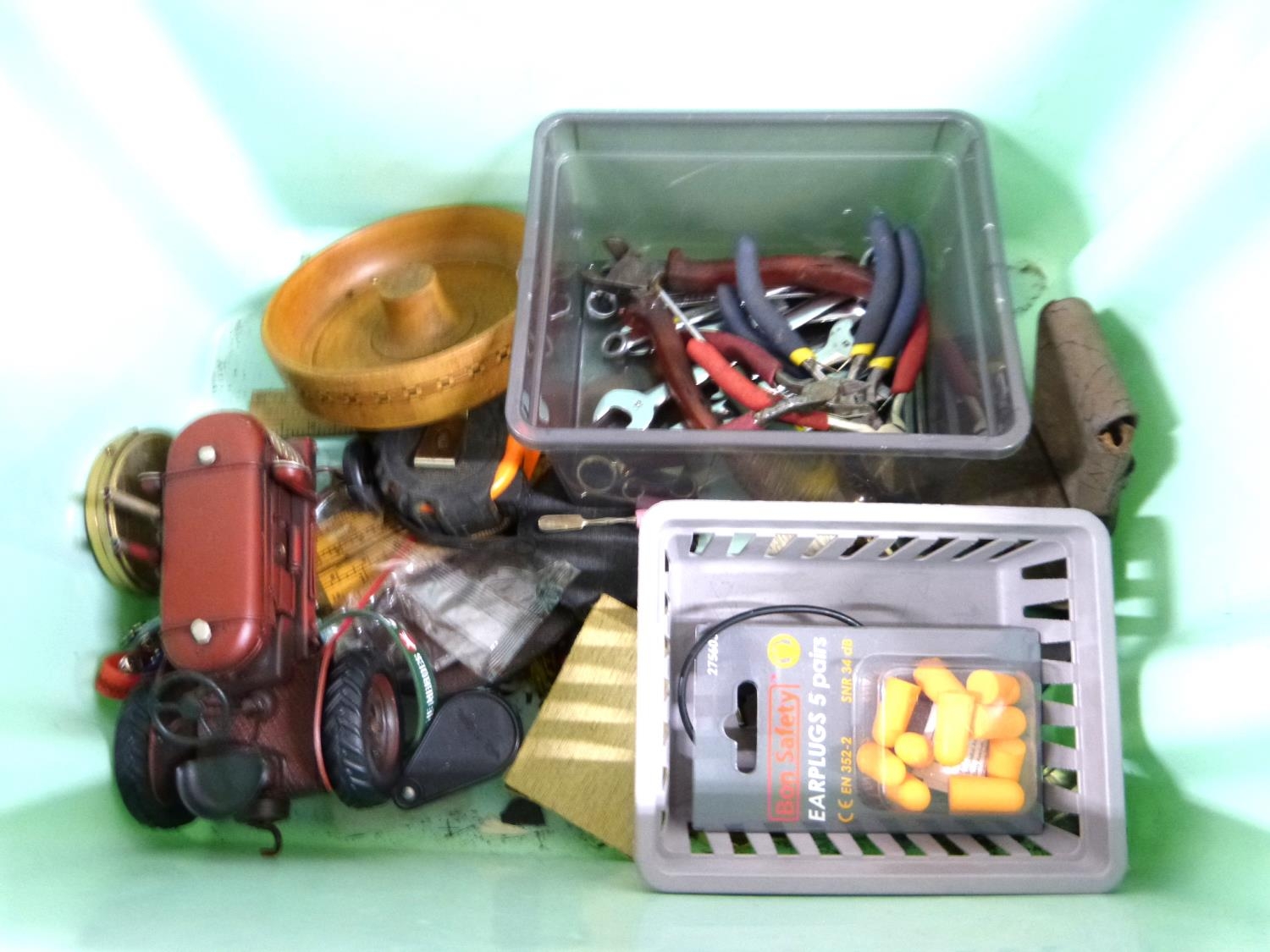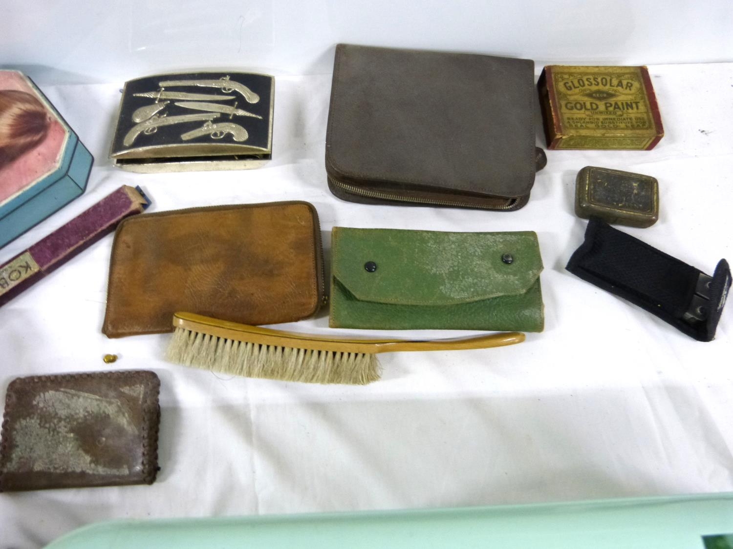 Collection of various tools, purses, toolbox etc.