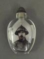 A Chinese reverse painted snuff bottle decorated with a Chinese gentleman in bamboo hat, calligraphy to the other, 3' high