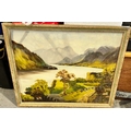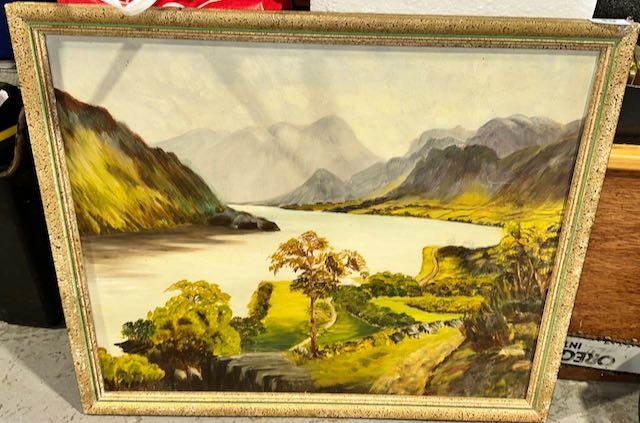 Vintage Framed Oil On Board- Mountain Lake Scene - Approx 25" x 22"