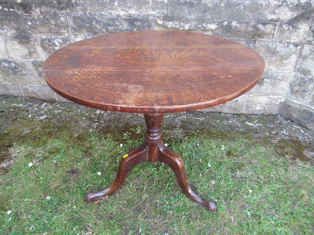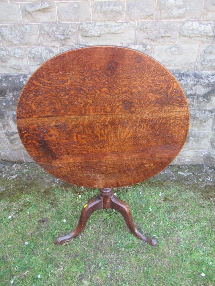An Antique oak tripod table, diameter 31ins, height 28ins