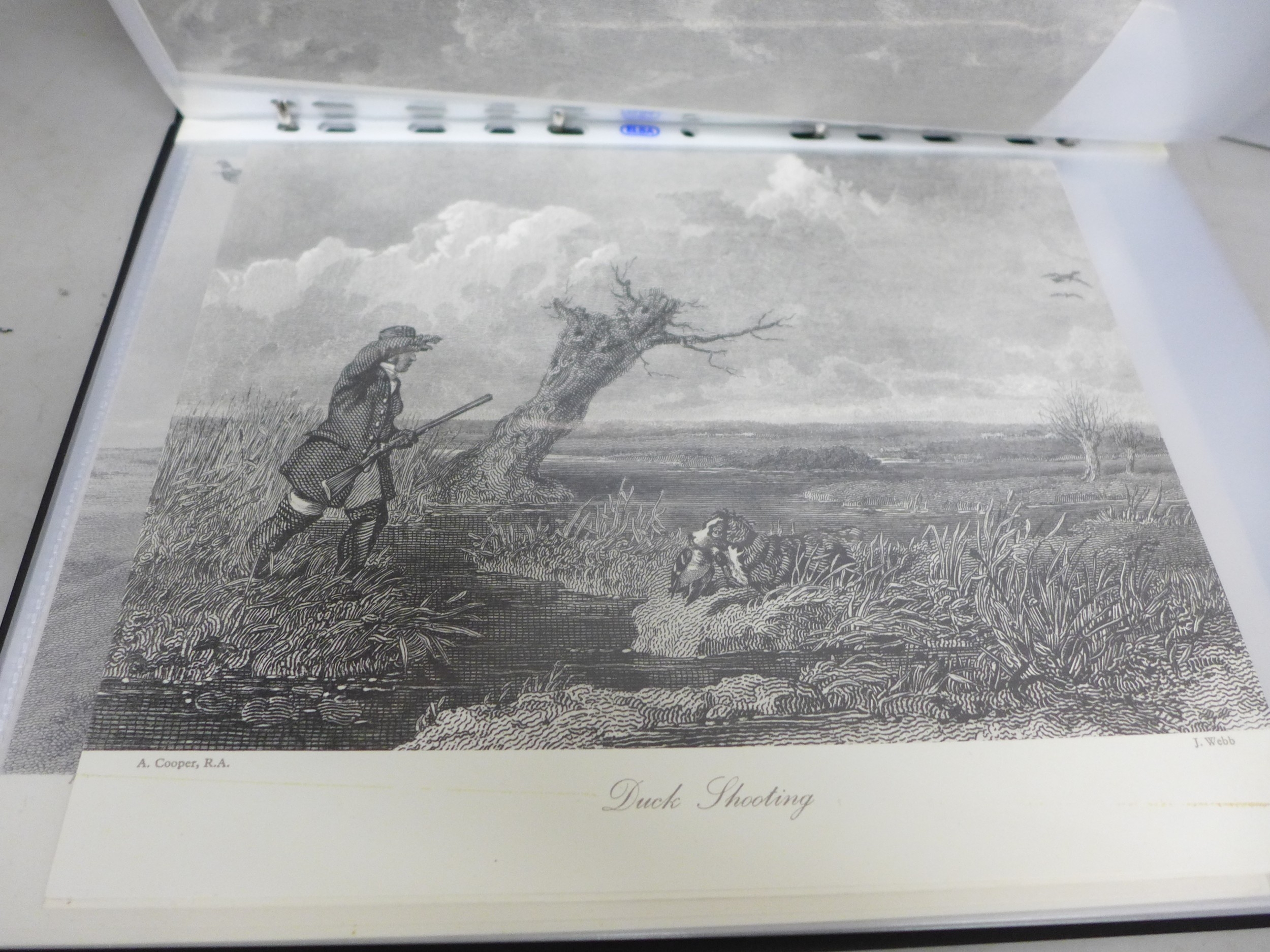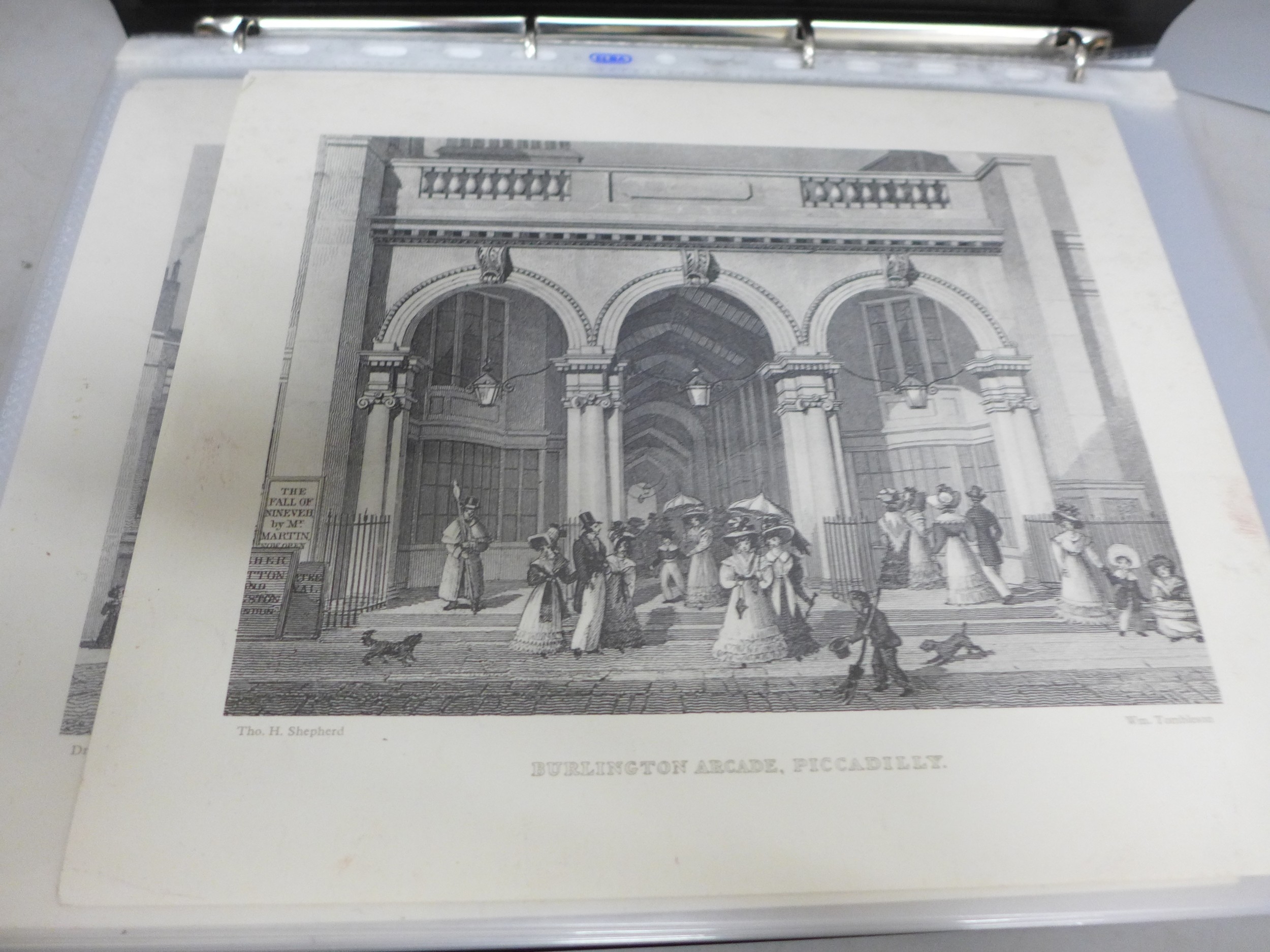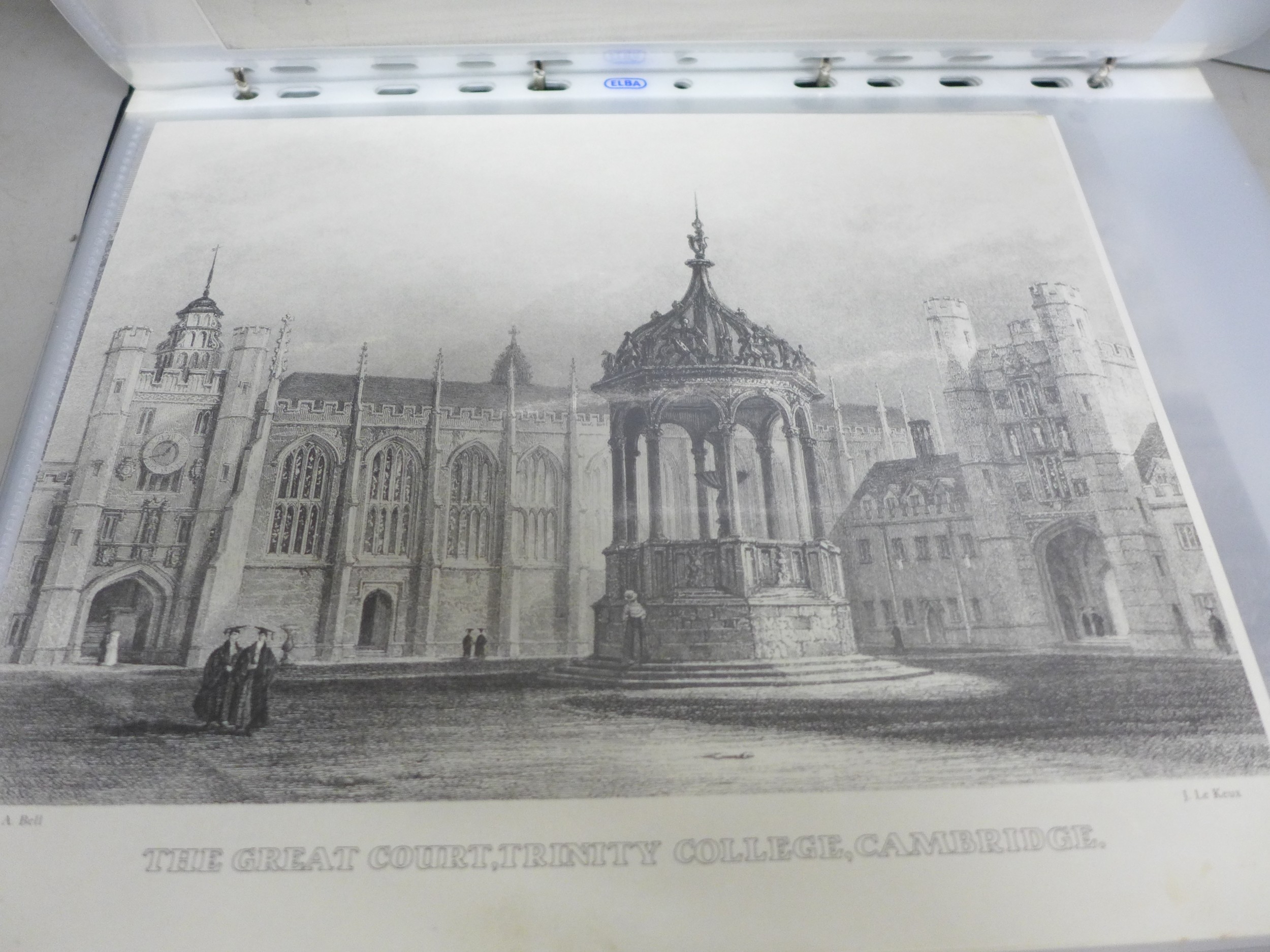 A collection of over 120 engraved prints, (very fine in definition), in black and white covering topics such as scenes of London, York, Cambridge, etc., hunting scenes, old town engraving views of other European cities including Copenhagen, etc.