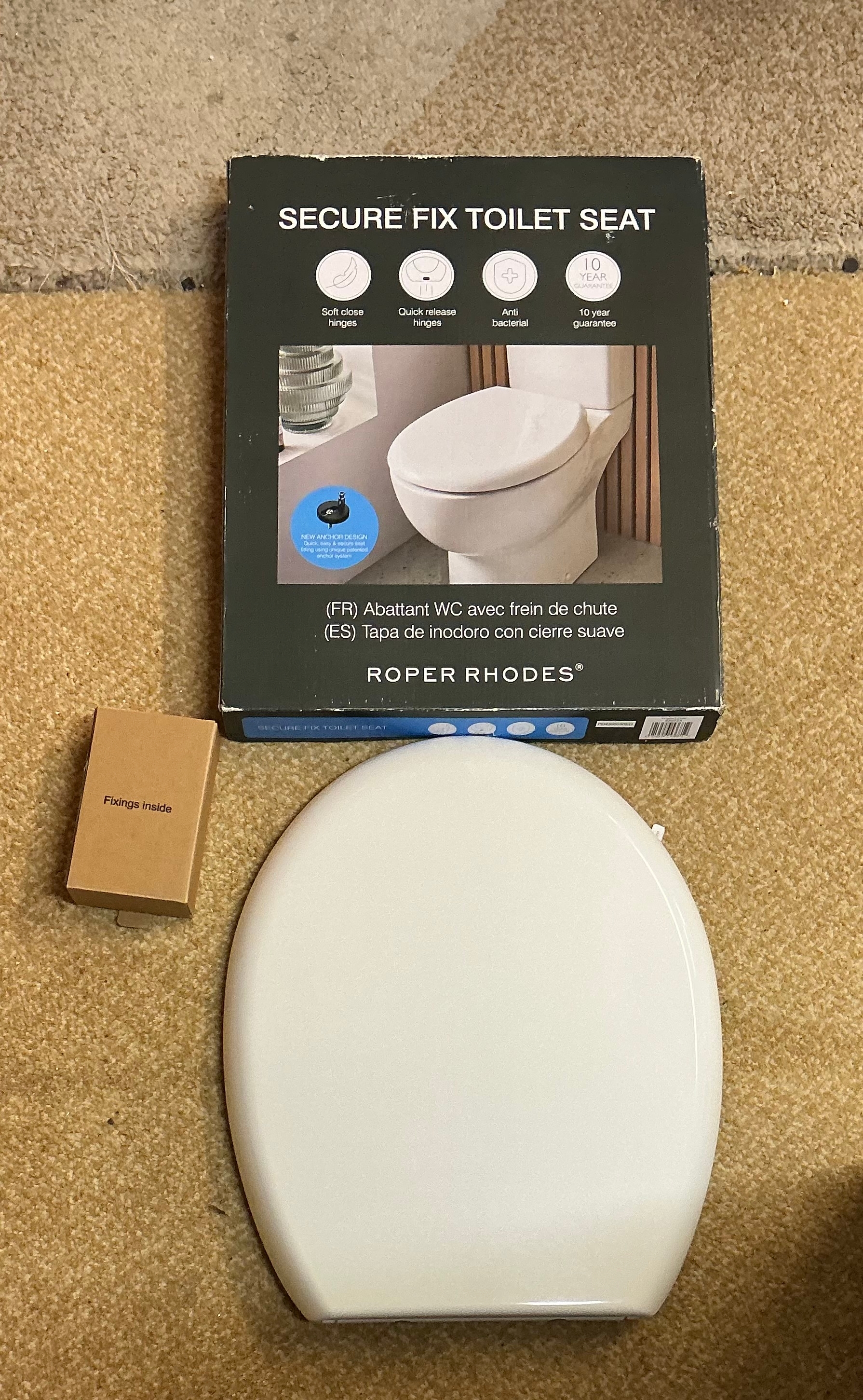 BOXED ROPER RHODES SECURE FIX TOILET SEAT WITH FITTINGS