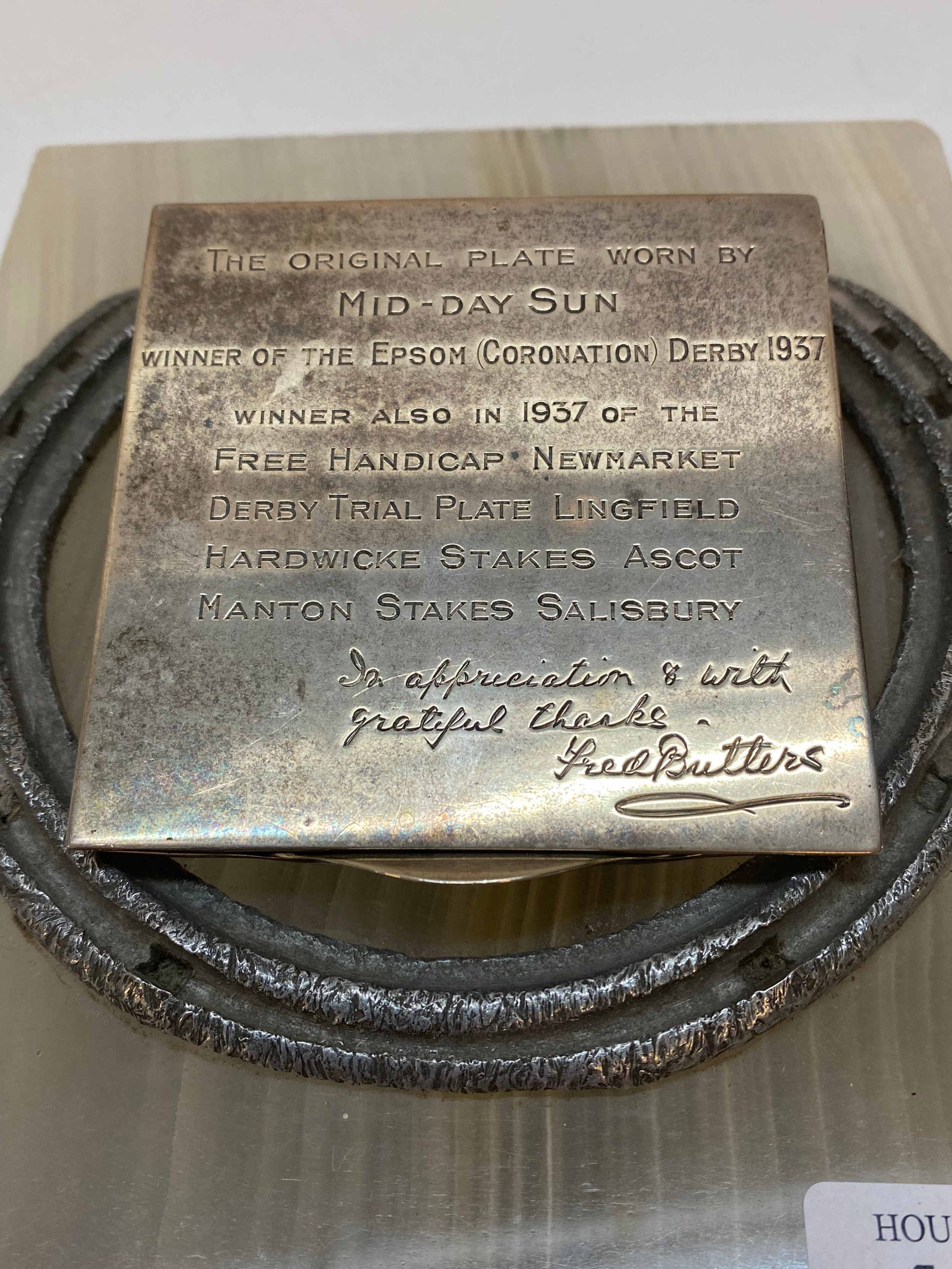 An onyx desk paperclip with horse shoe and silver clip