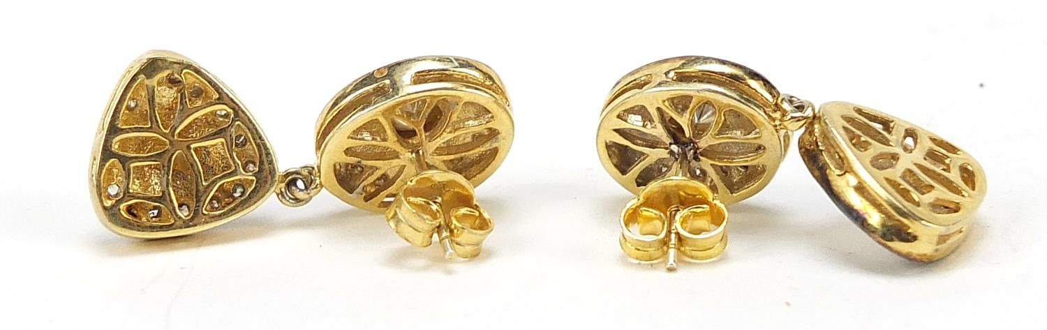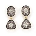 Pair of Indian silver gilt diamond drop earrings, 3cm high, 12.6g