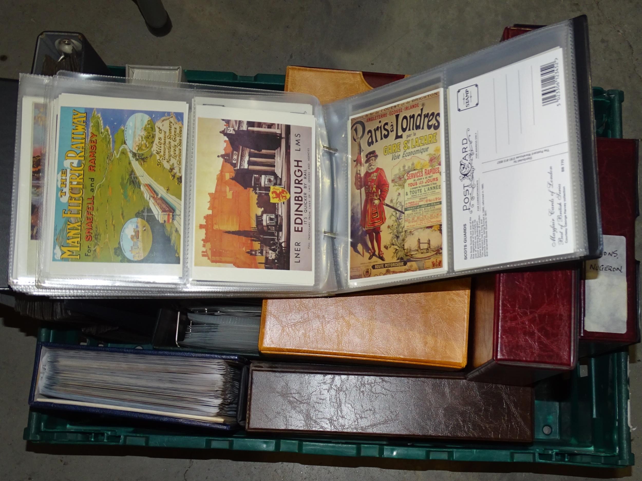 A large collection of modern postcards in albums, mainly reproduction advertising posters, etc.