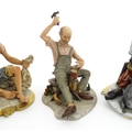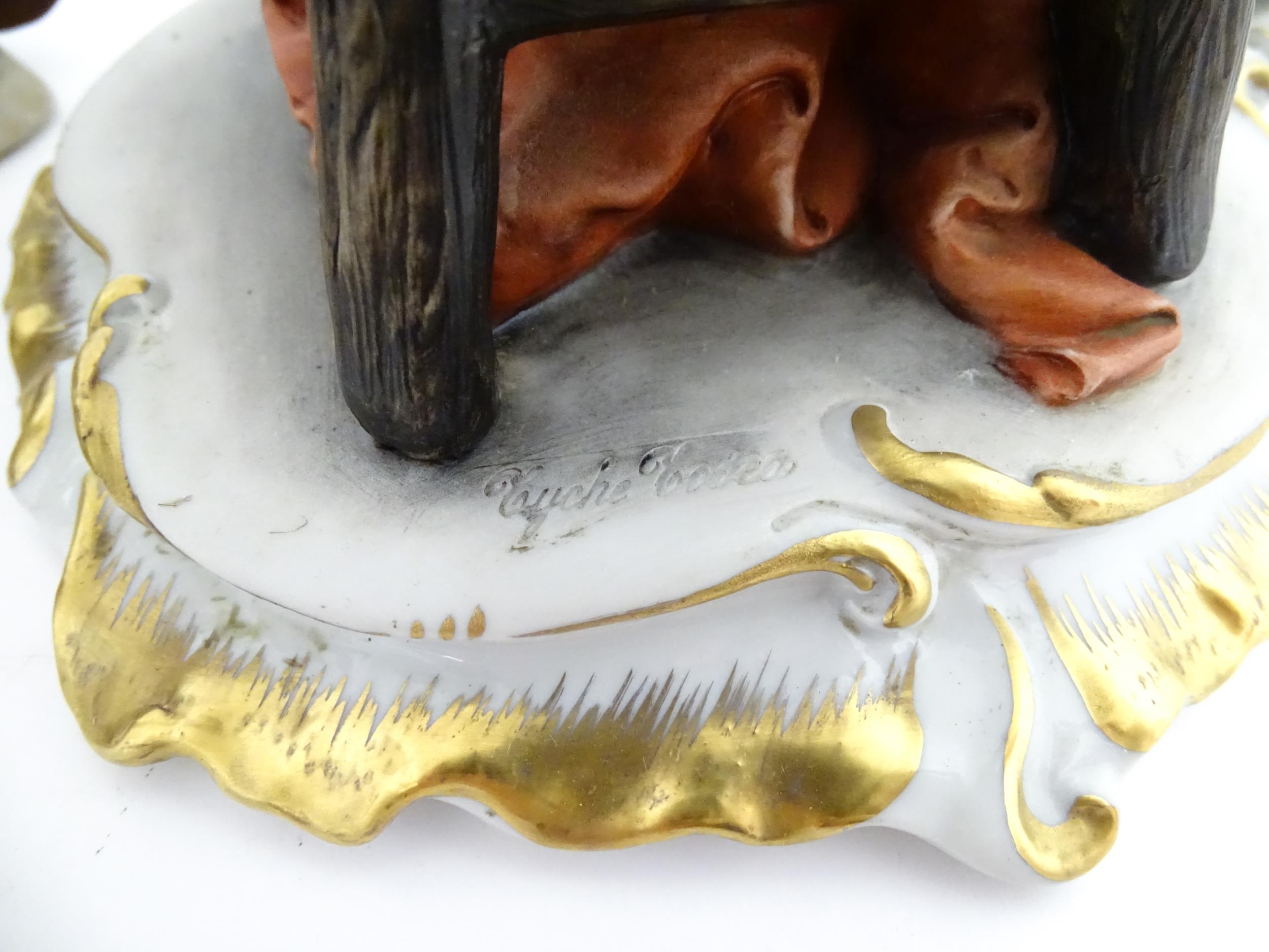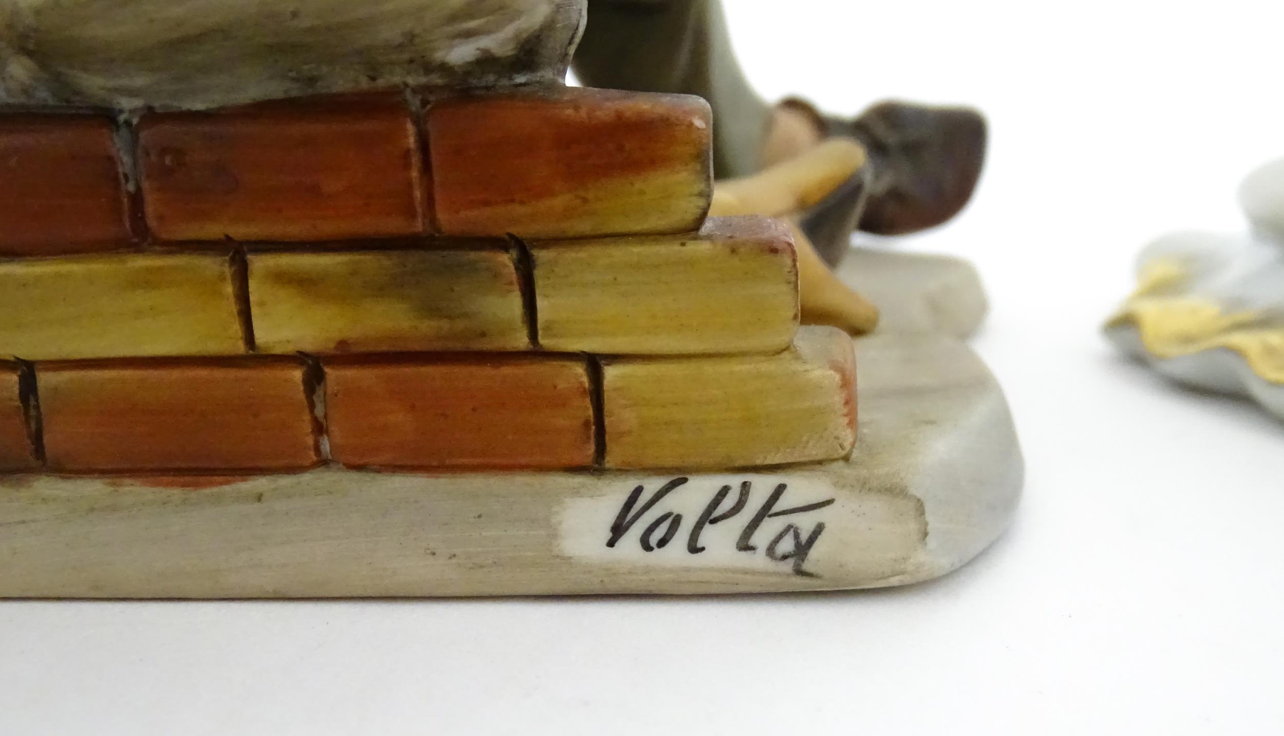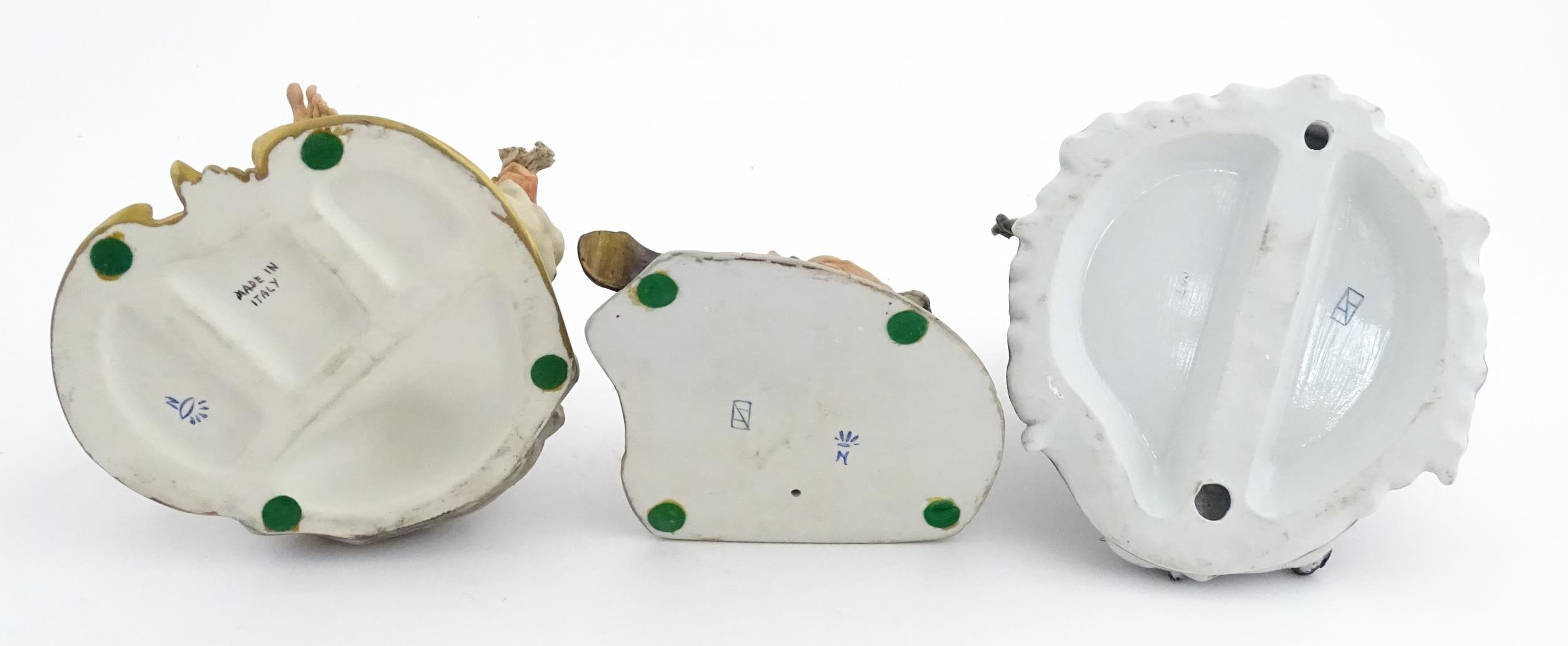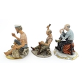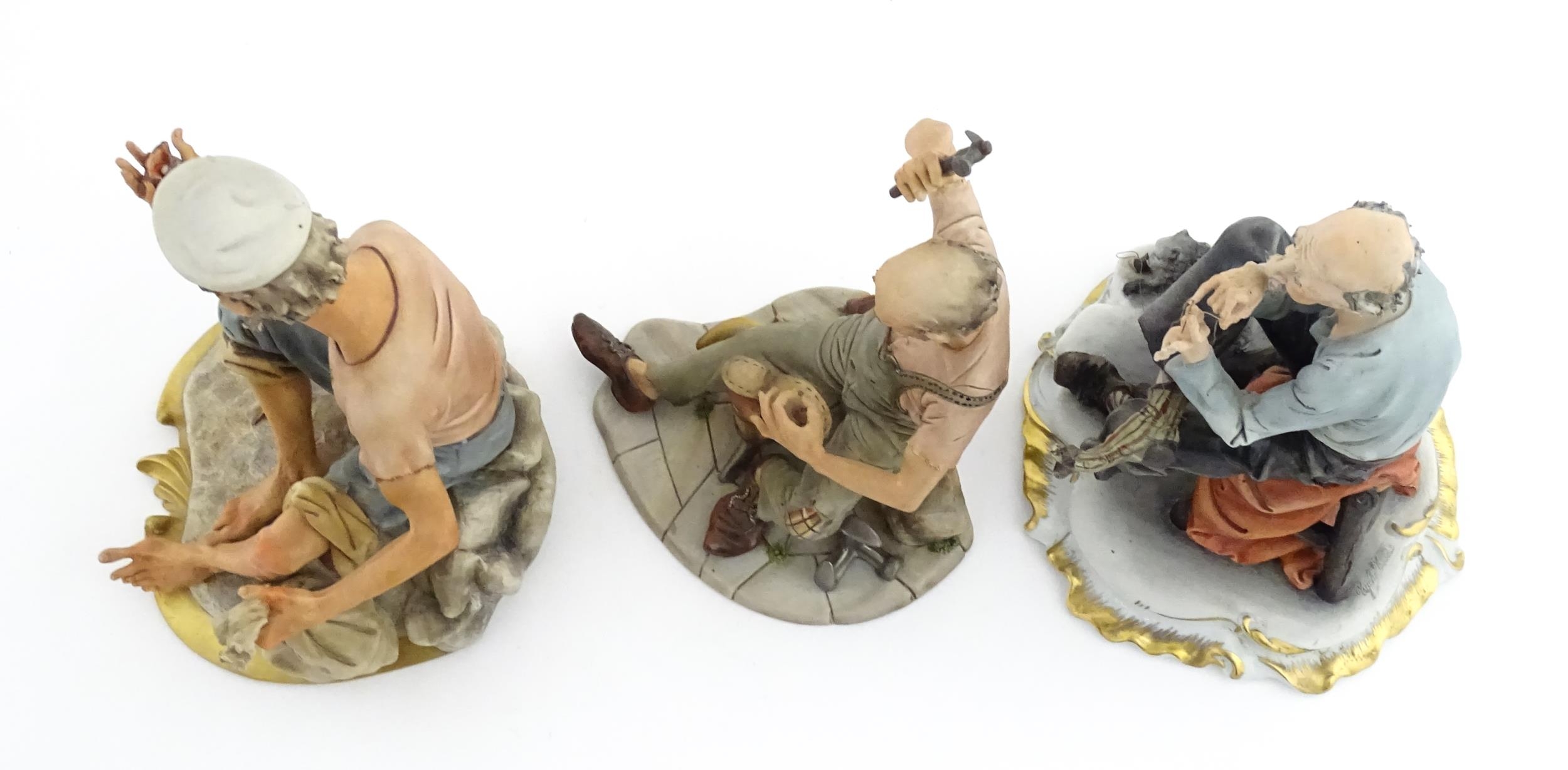 Three Capodimonte figures comprising a model of a sailor, a cobbler, and a tramp with needle and thread. Two signed Volta, and one signed Tyche Tosca. Largest approx. 9 1/4" high (3)