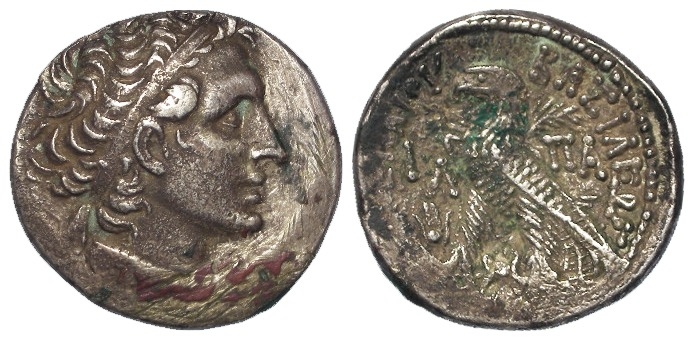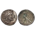 Ancient Greek: Ptolemaic Egypt, Ptolemy XII Neos Dionysos (Auletes) (80-51 BC) silver Tetradrachm, Alexandria, regnal year 30 (52-51BC). Diademed head of Ptolemy I right, wearing aegis. / Eagle standing left on thunderbolt, closed wings, palm frond over shoulder, LA and ΠA in fields, headdress of Isis to left below. Svoronos 1840. 13.61g. VF, some old cleaning scratches around portrait.