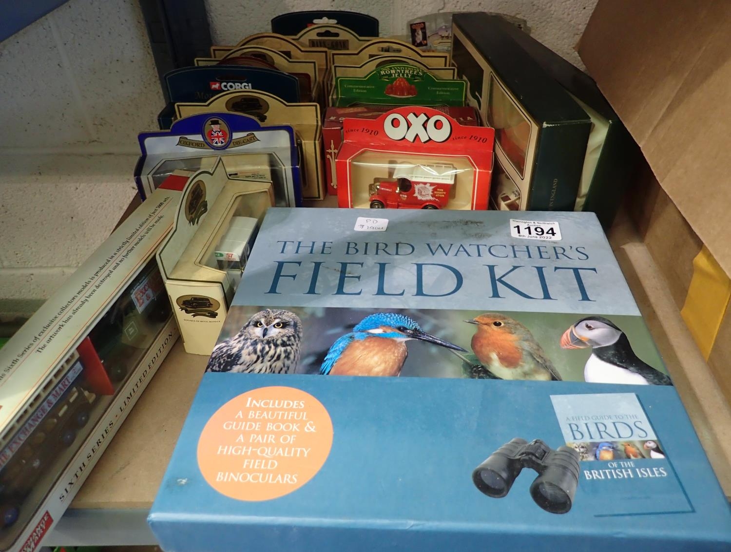 Mixed diecast vehicles in blister packs to include Oxford, Corgi etc, and a Bird Watchers Field Kit. Not available for in-house P&P, contact Paul O'Hea at Mailboxes on 01925 659133