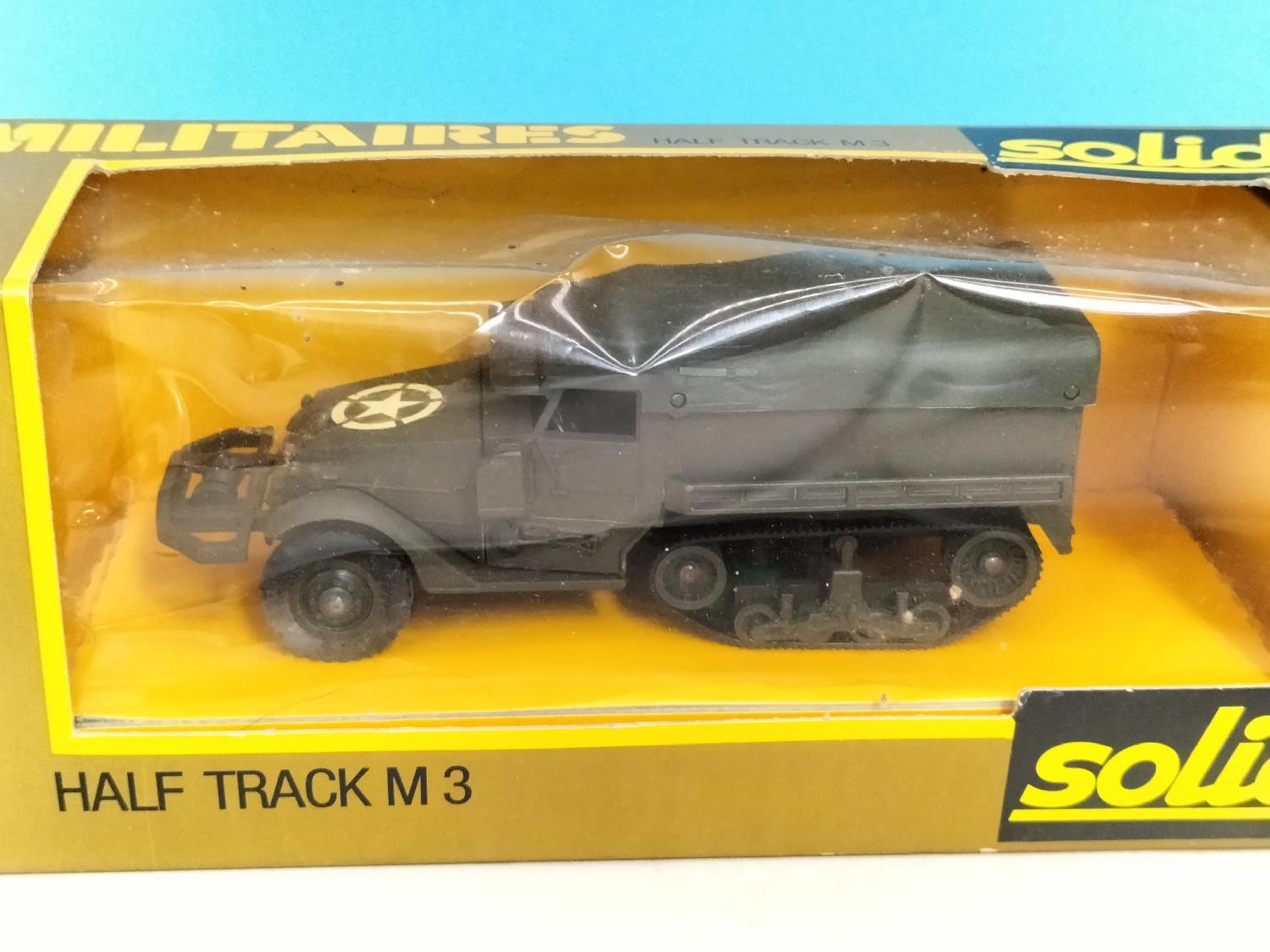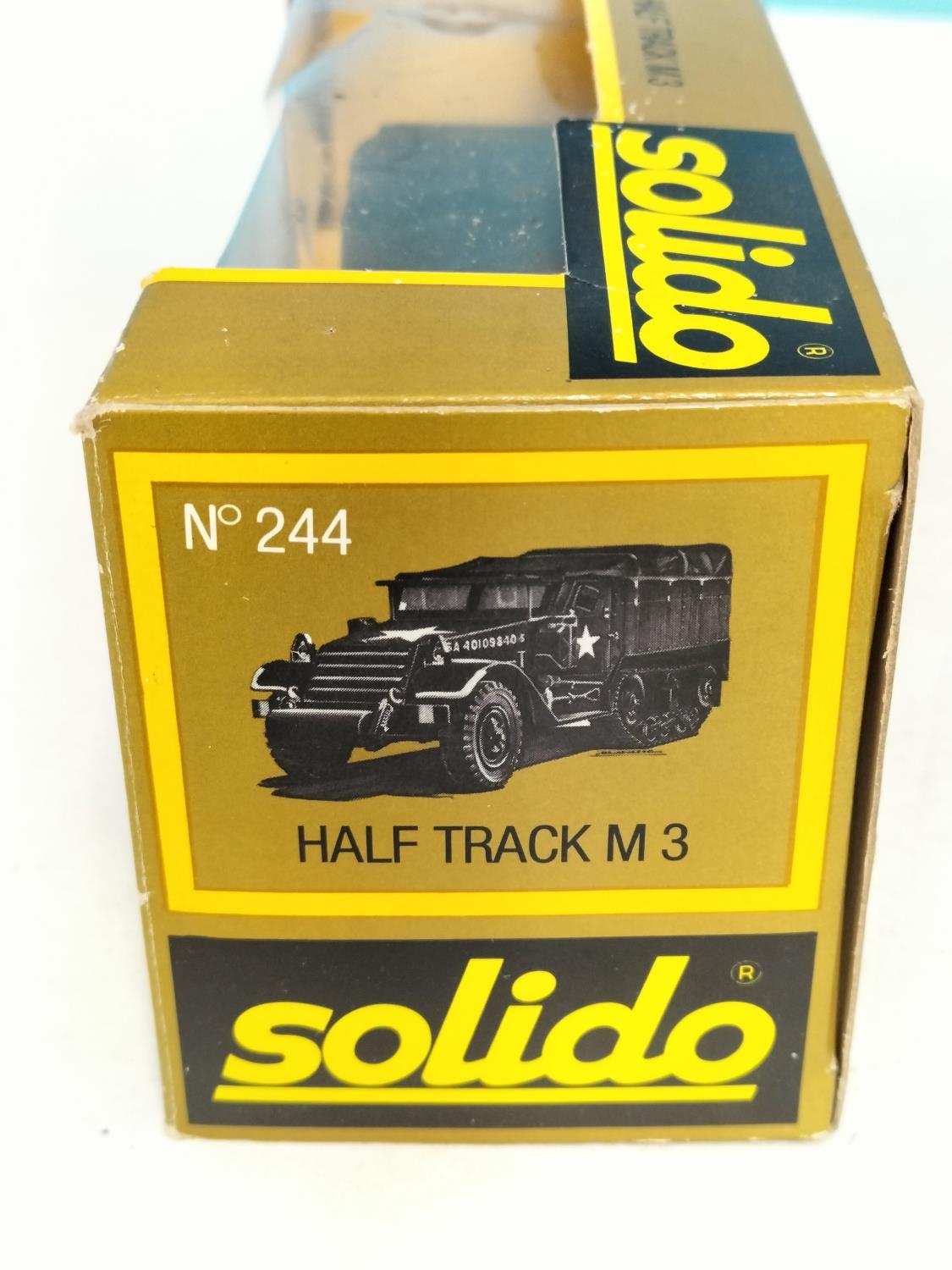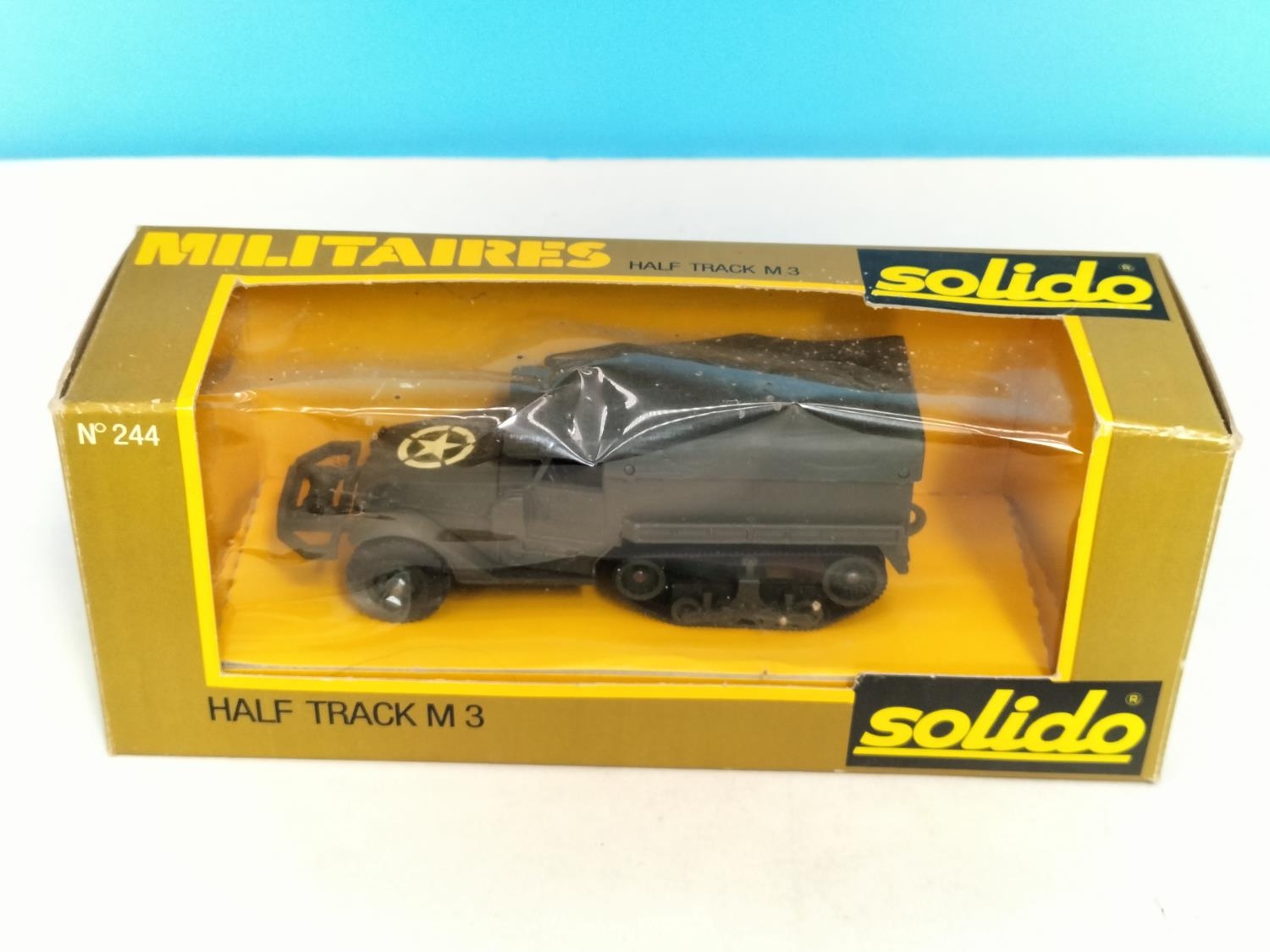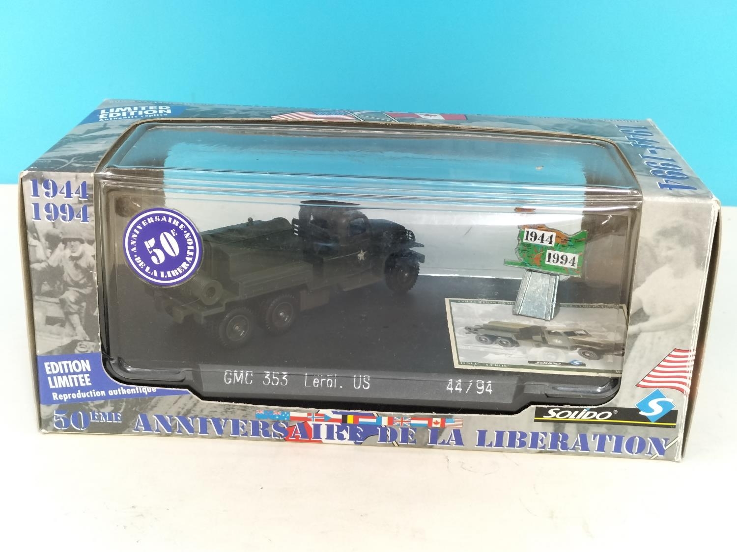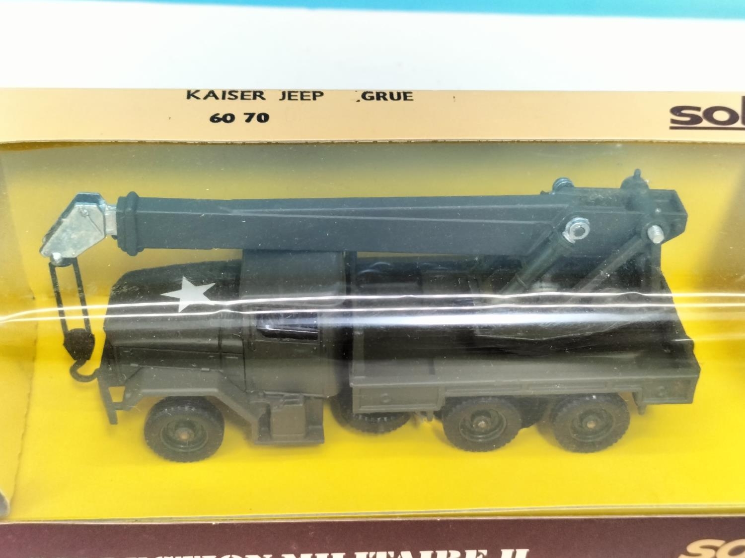 Collection of Boxed Die-Cast Military Vehicles (5) to include Solido Half Truck M3 No 244, Solido 6005 Kaiser Jeep, Solido Kaiser Jeep GRUE, Atlas Collectables Multiple Gun Motor Carriage M16 and a GMC 353 Leroi.