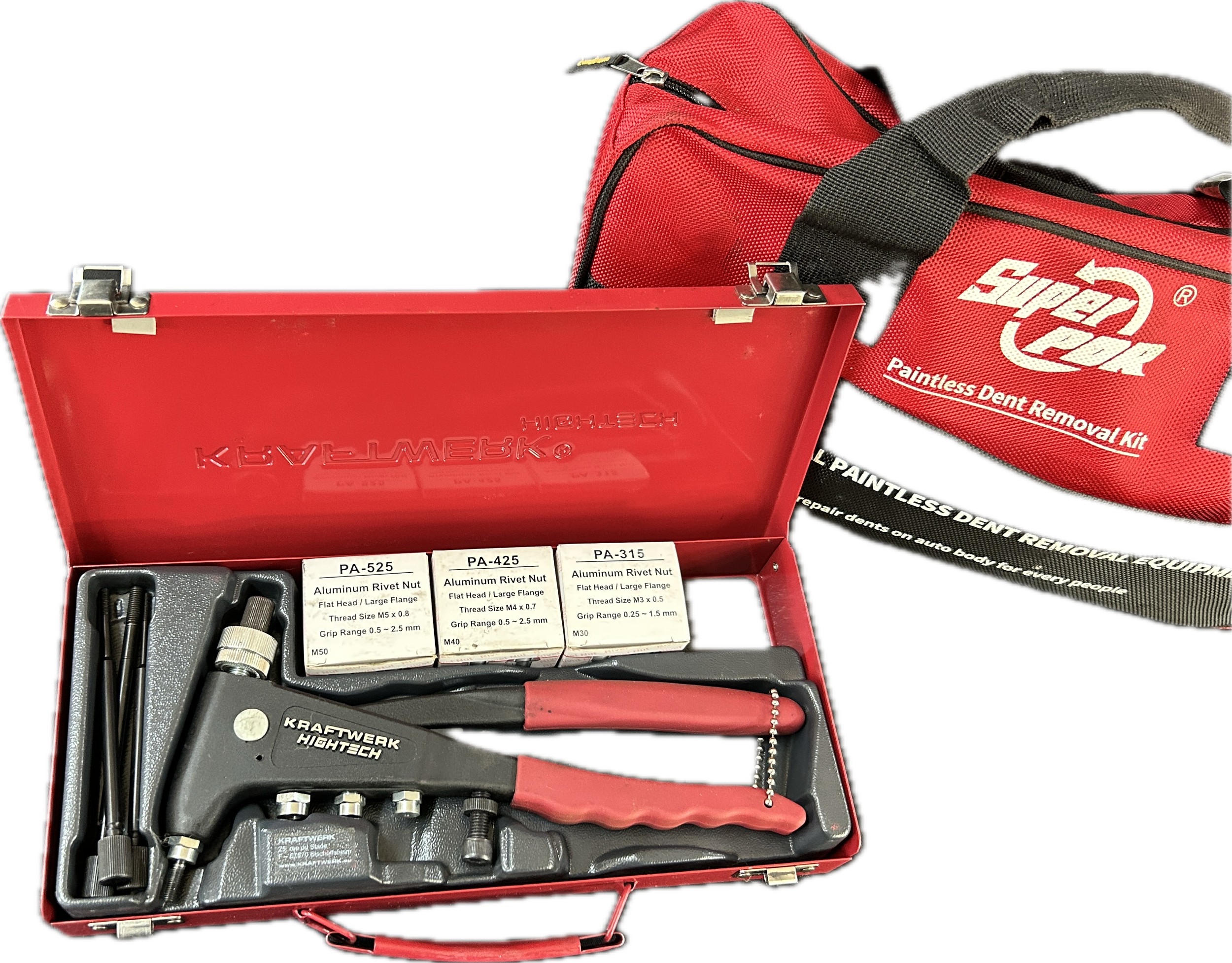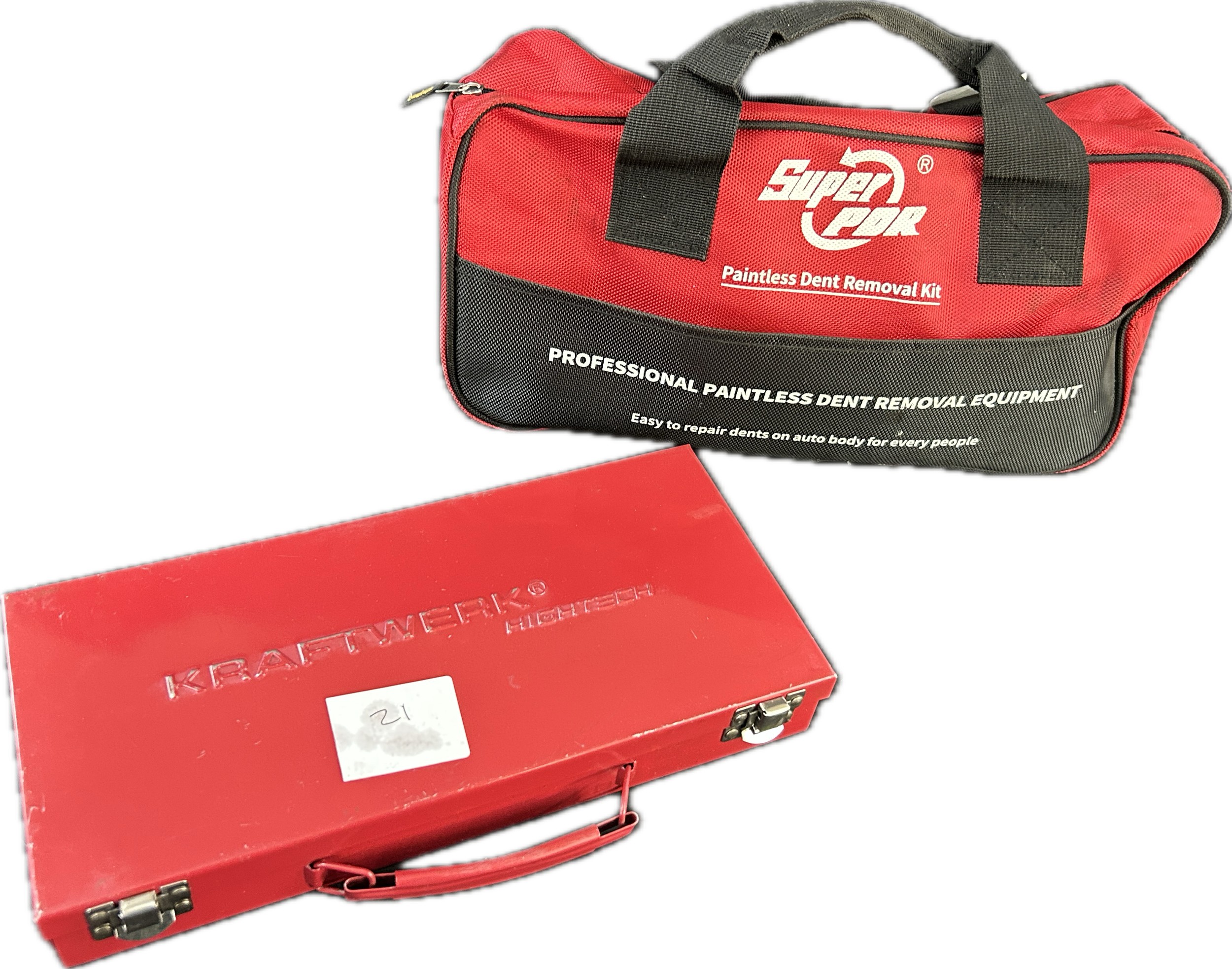 Kraftwork high tech patent no US 5725.880 and a Super por paintless dent removal kit