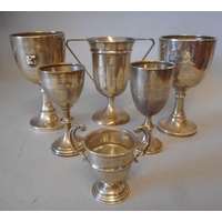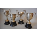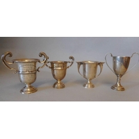 Four small silver trophy cups, various makers and dates: awarded to H.M.Hicks, includes; The Douglas Challenge Cup Trial, 1924; The Walter Welch Cup; The League Trial 1925 and one just dated 1927, H.M.Hicks, total weight of silver 178gms, 5.72ozs, (4).