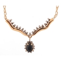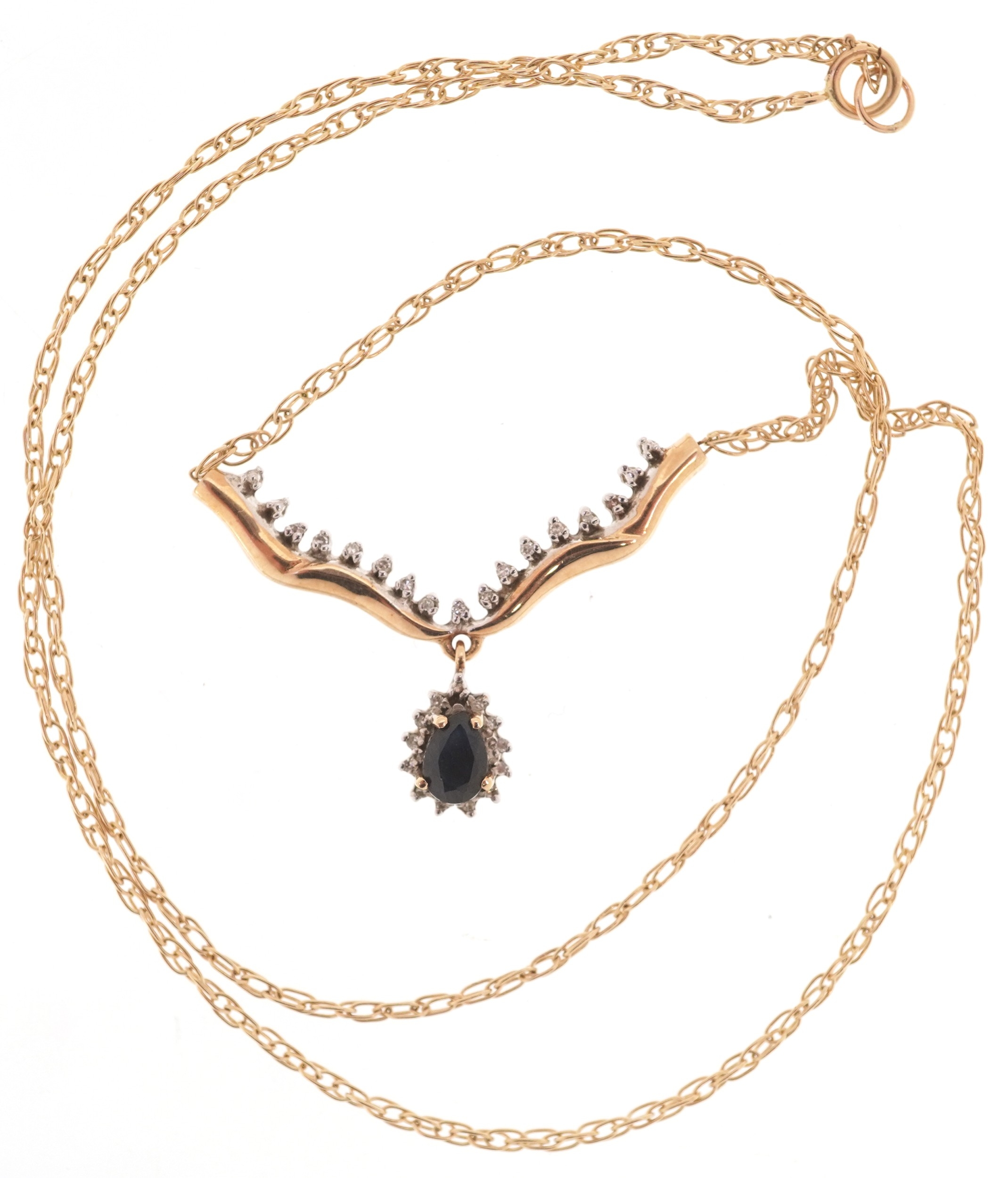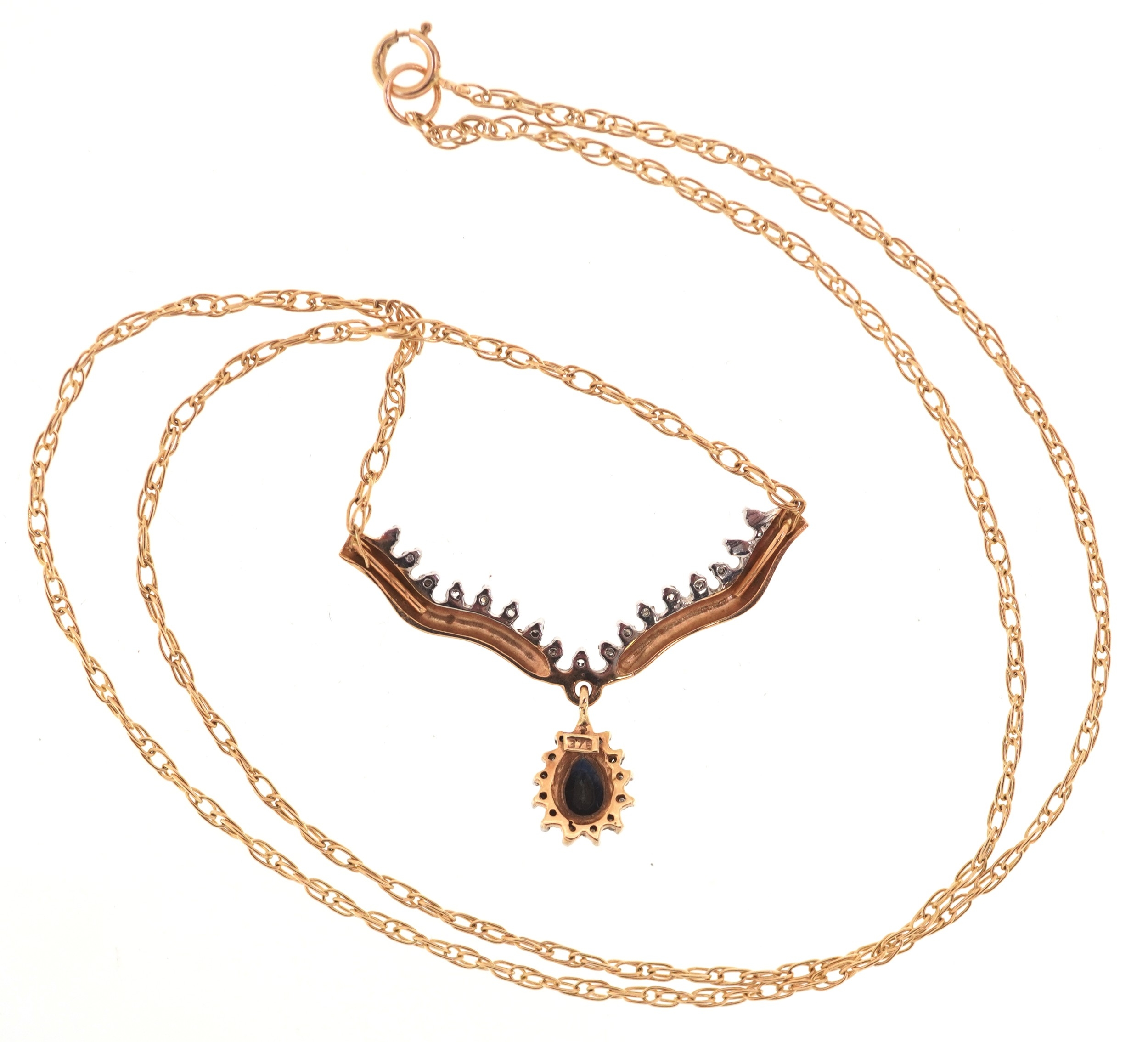 A 9ct gold sapphire and diamond necklace, 48cm in length, 3.7g.