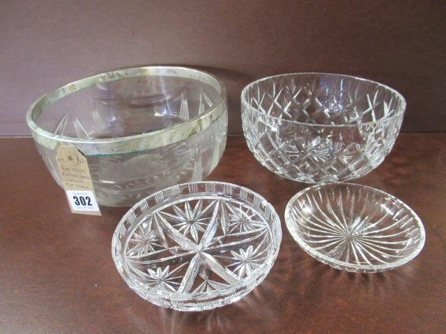 800 STD SILVER RIMMED BOWL AND OTHER CUT GLASS