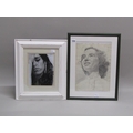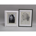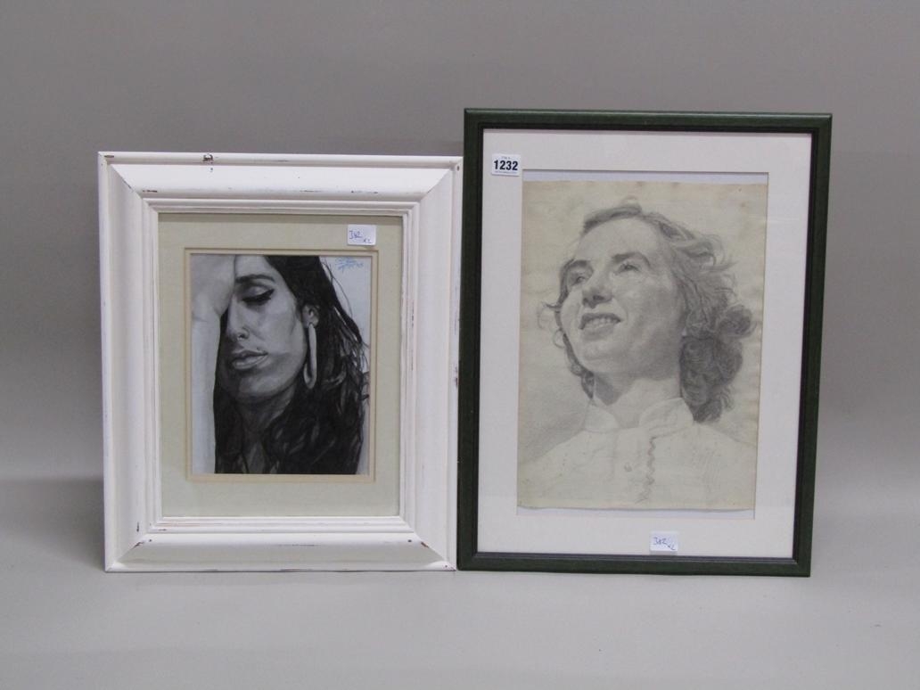 TWO PENCIL AND INK SKETCHES - LADIES FACES (ONE AMY WINEHOUSE)