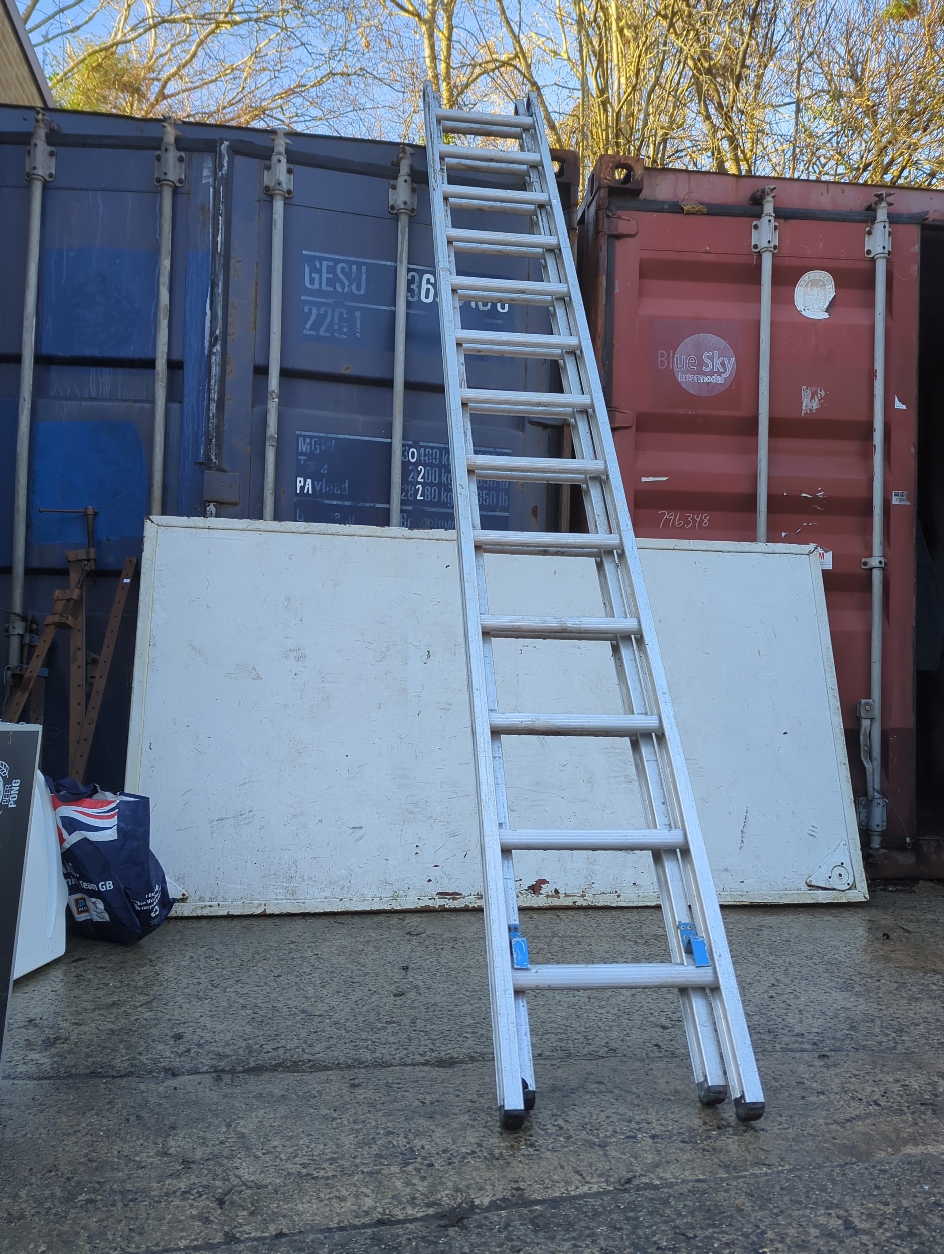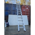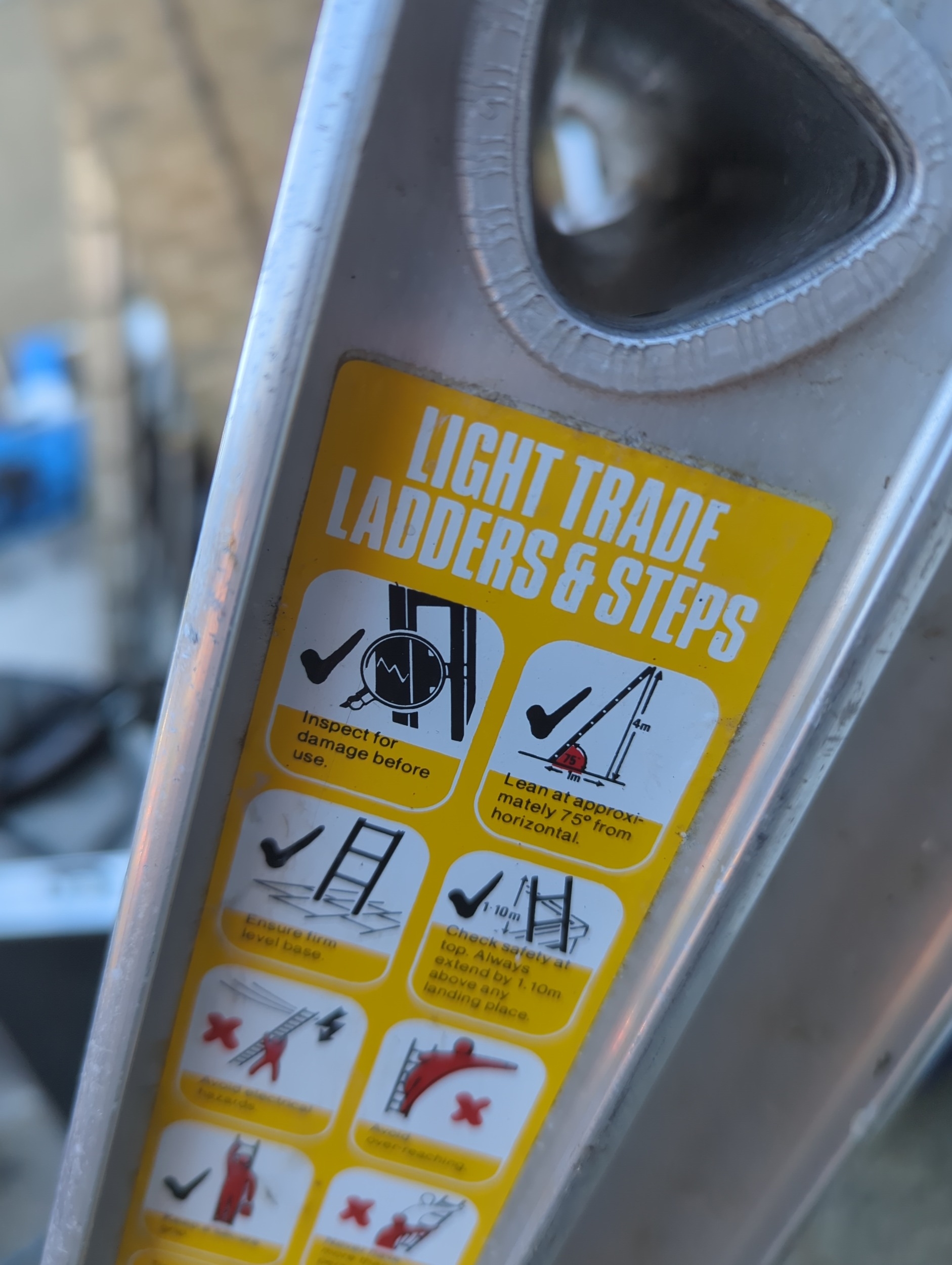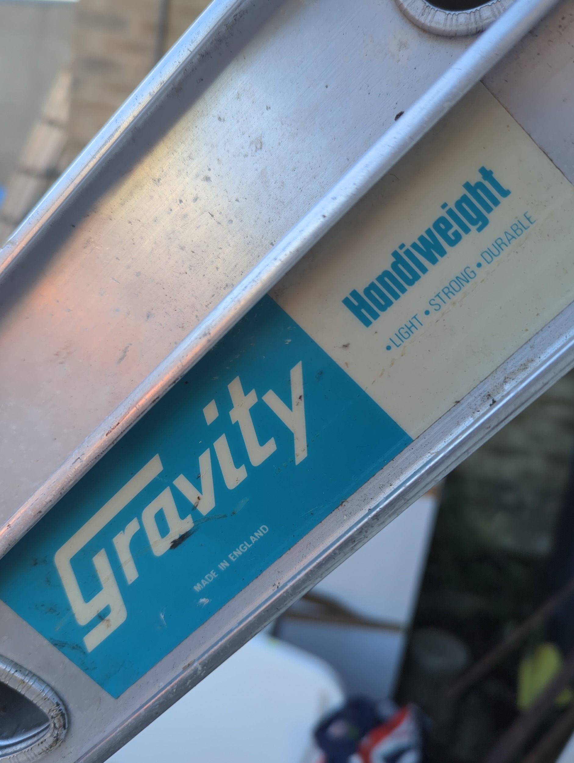 The Gravity Lightweight Ladder is designed for easy handling and durability, ideal for both professional and home use. This ladder features safety instructions printed on the sides, ensuring proper usage and safety. Made in England, the product is labelled as strong and capable, fitting a variety of trade and domestic applications.