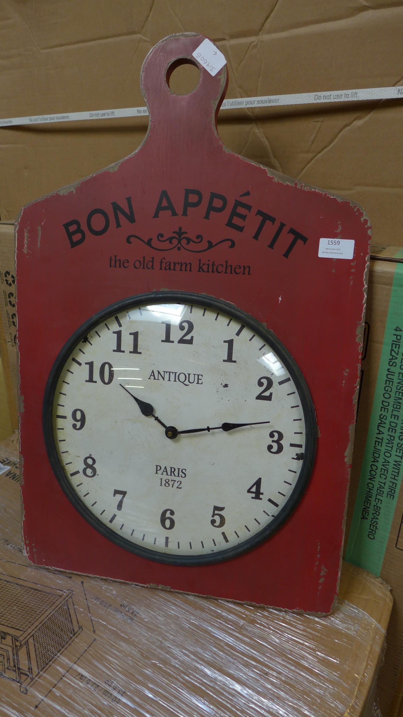 A 'Bon Appetit' antique effect wall clock