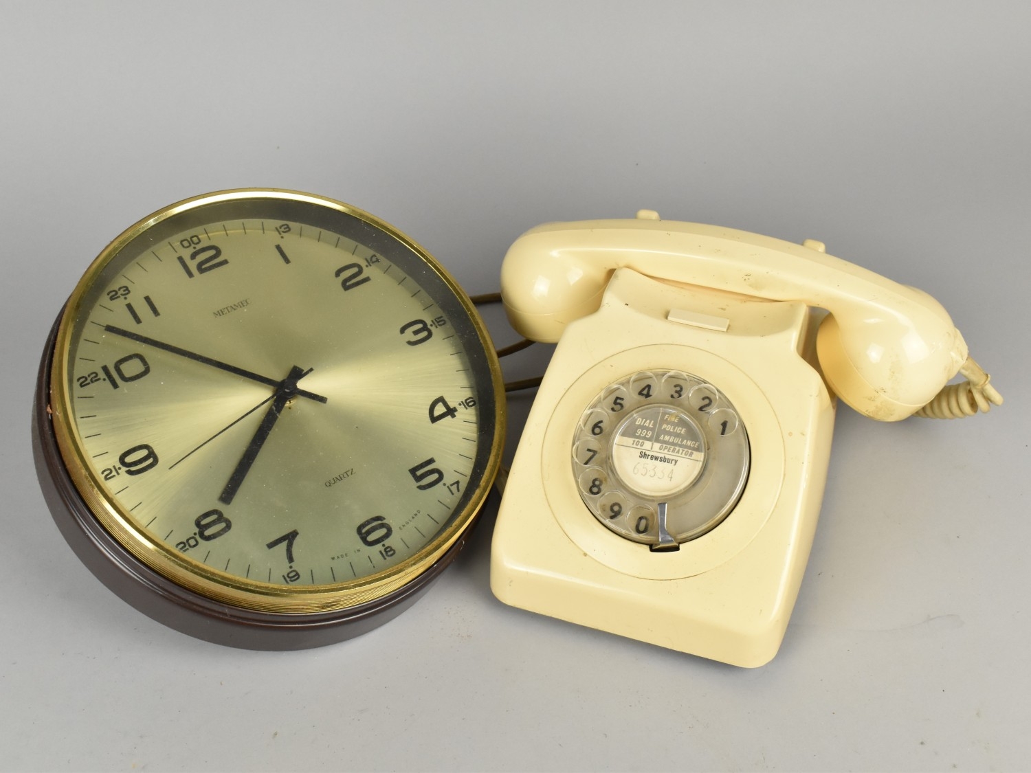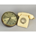 A Mid 20th Century Metamec Circular Wall Clock with Quartz Movement together with a Cream Vintage Telephone