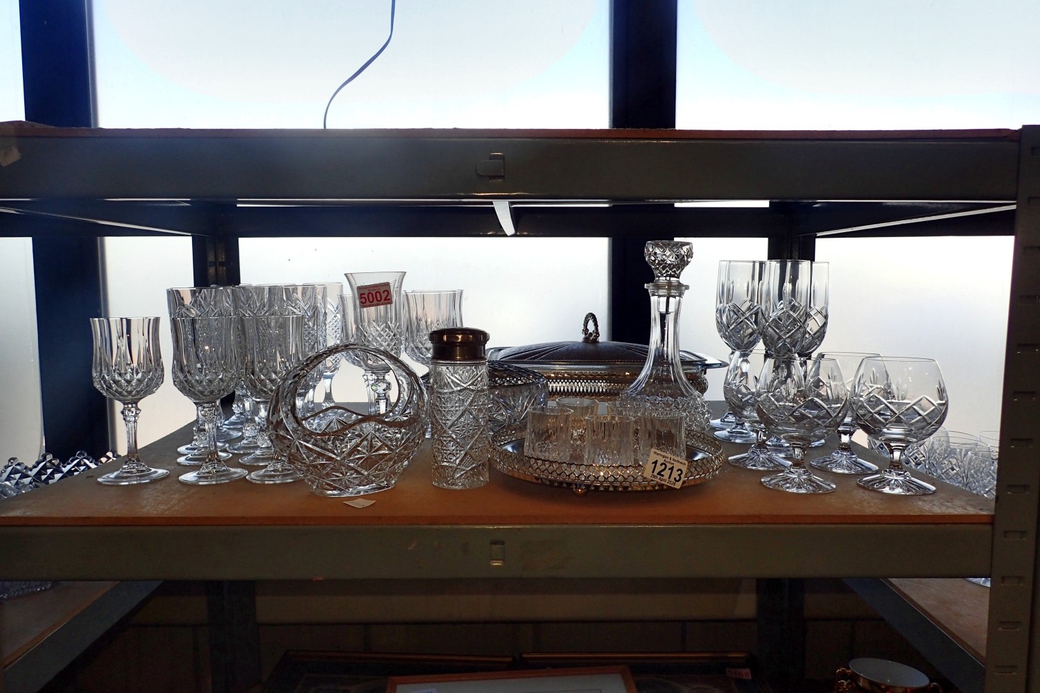 Mixed glassware including a silver plated serving dish. Not available for in-house P&P
