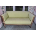 with an upholstered roll back, raised on spiral turned legs to the fore, terminating on brass castors. 73 cm. high; 155 cm. wide; 80 cm. deep