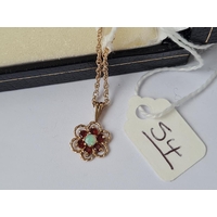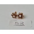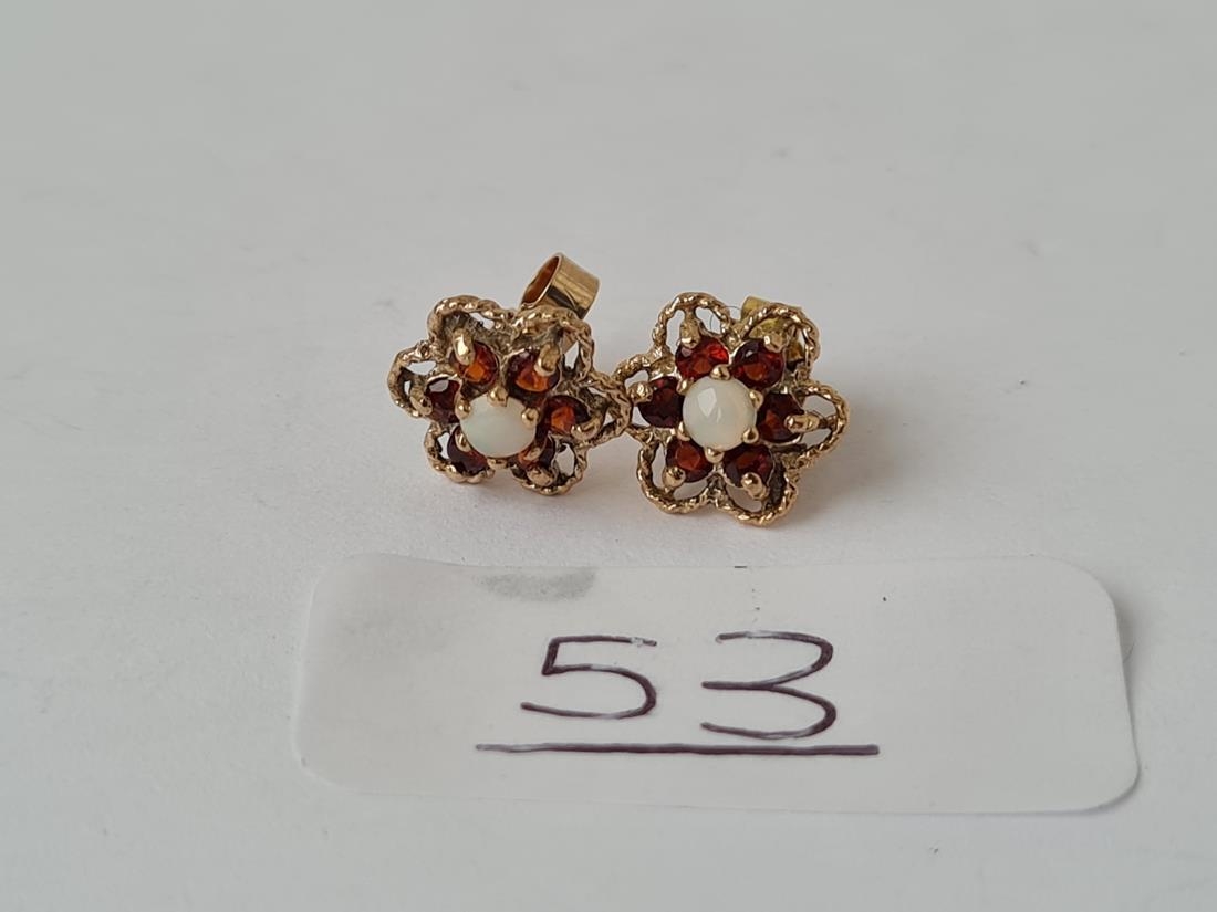 A pair of opal & garnet stud earrings in 9ct - hallmarked on stems