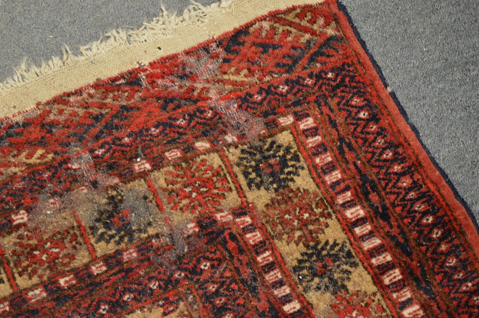 A small Persian bokhara rug (moth damage) 158cm x 110cm.