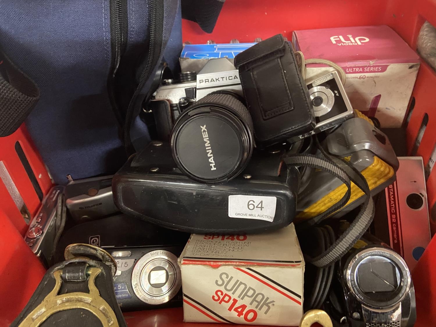 BOX OF CAMERAS INCL HANIMEX & PRAKITA