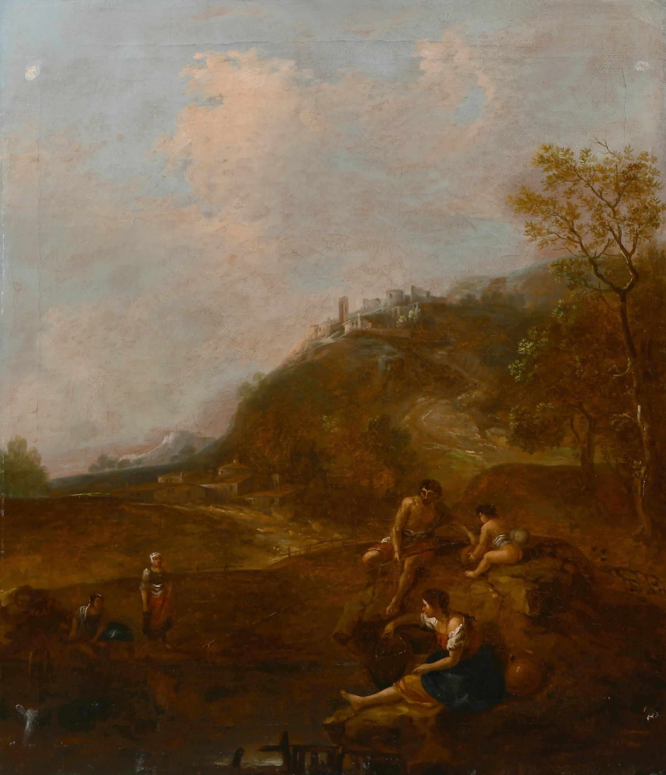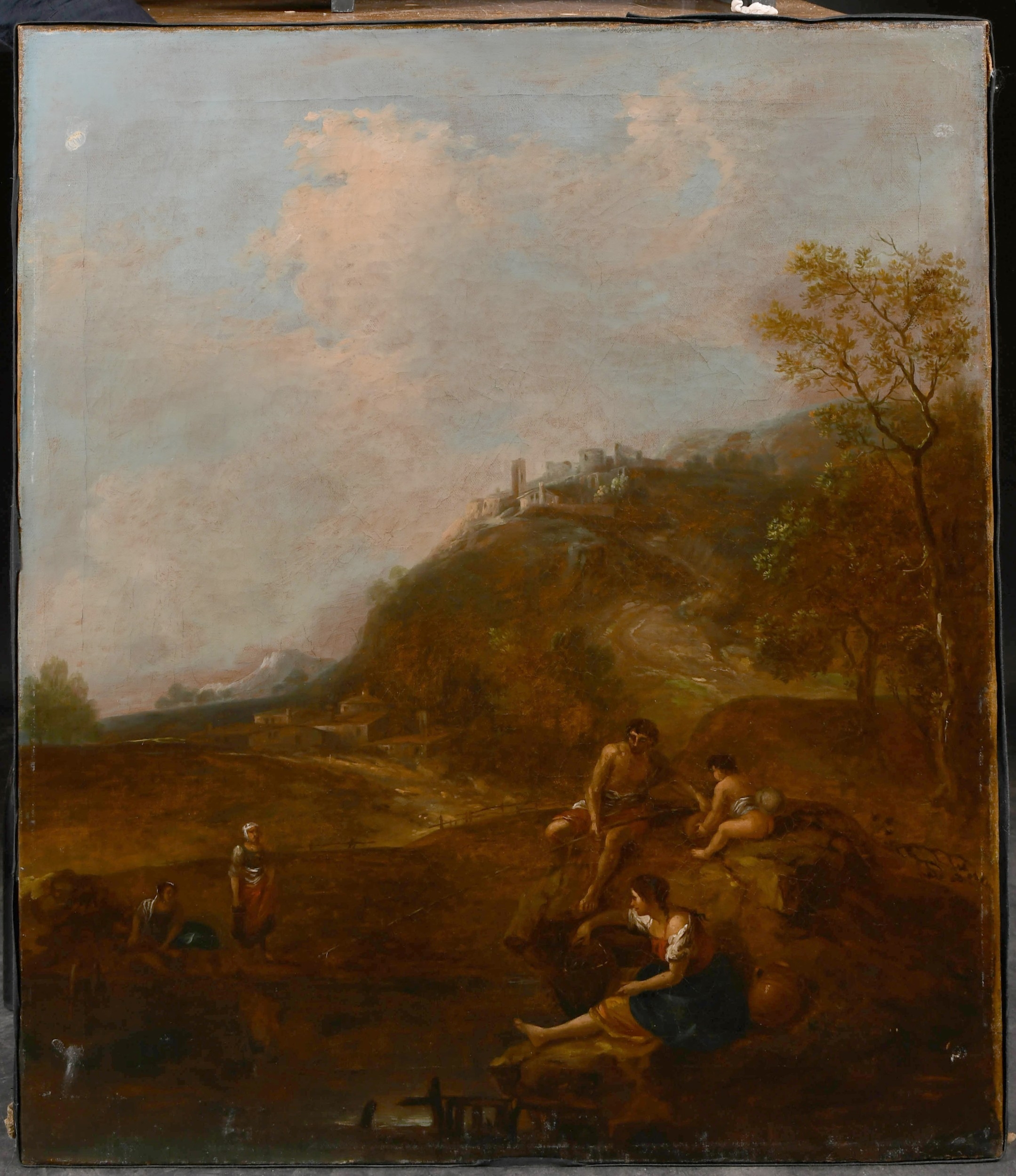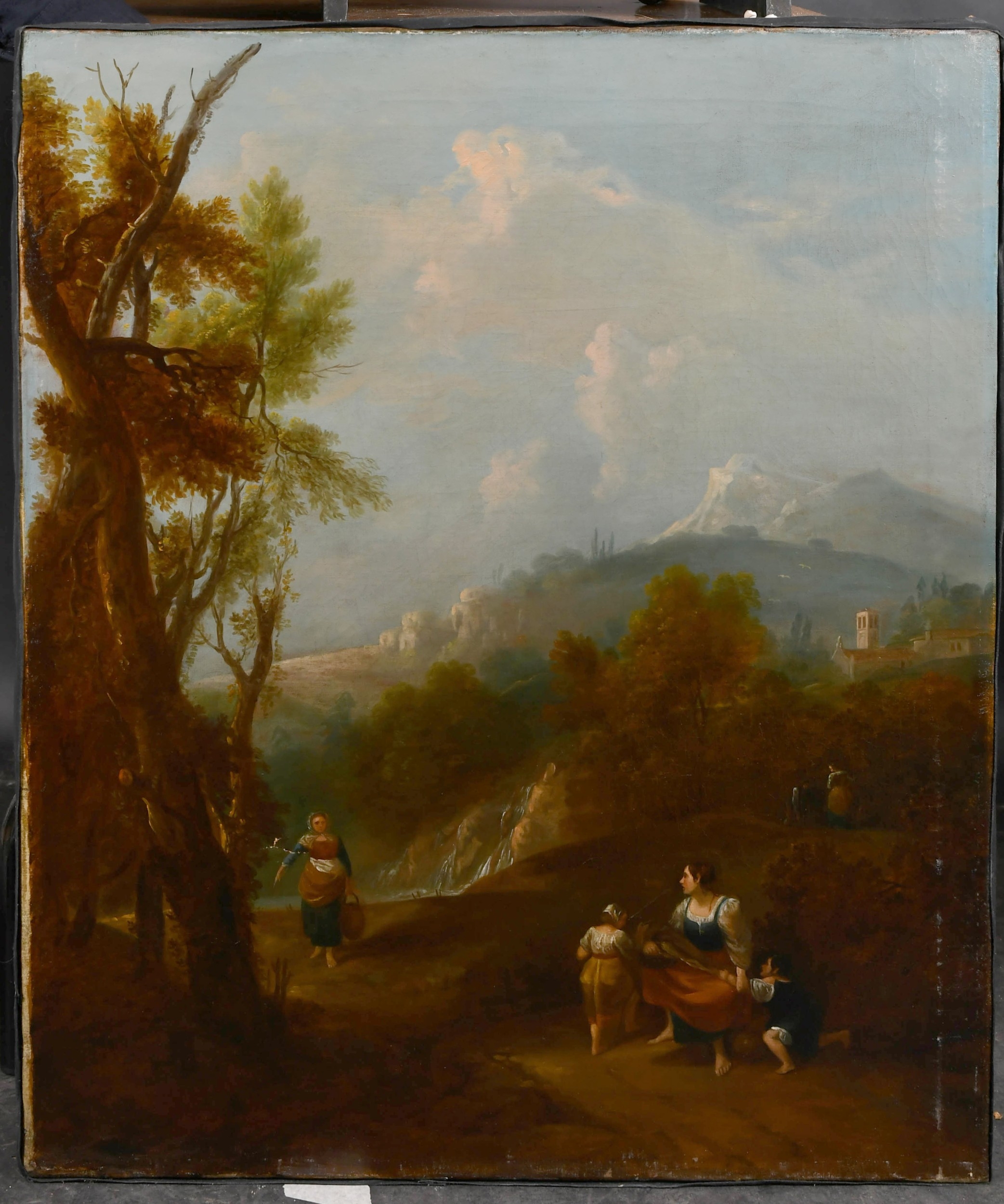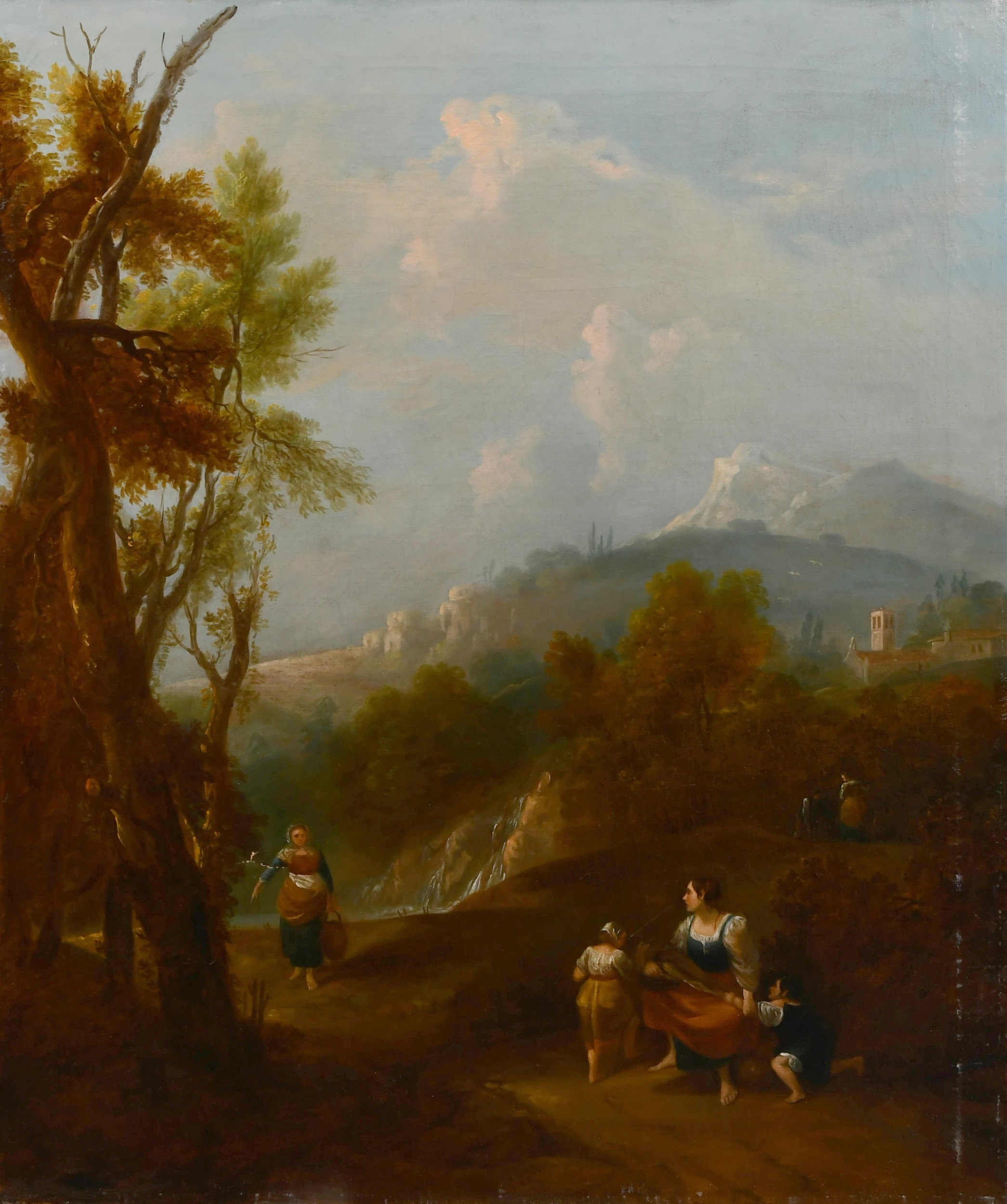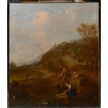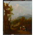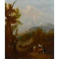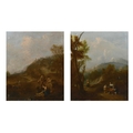 Circle of Francesco Zuccarelli (1702-1788) Italian. Figures in a Classical Landscape, Oil on canvas, Inscribed on a label verso, unframed 30" x 25" (76.2 x 63.5cm) and the companion piece, a pair (2). Provenance: C Worthington; Betty Worthington