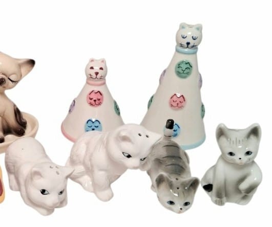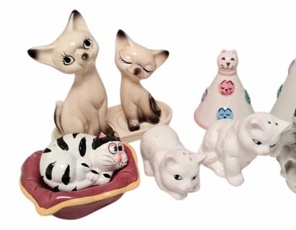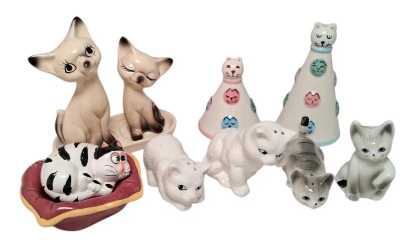A Collection of 5 Vintage Ceramic Cat Salt and Pepper Sets. All in excellent condition. A couple have the stoppers missing.