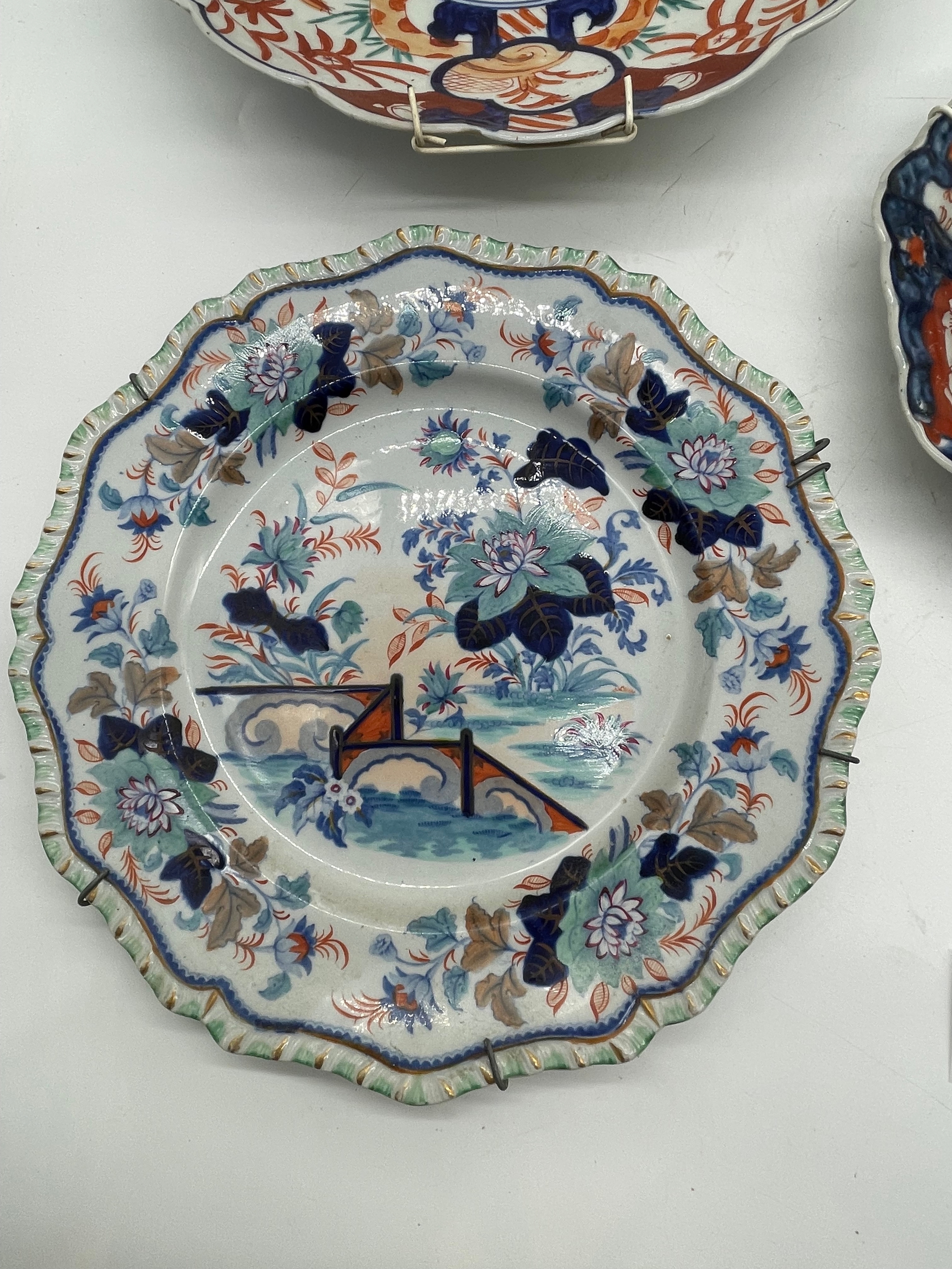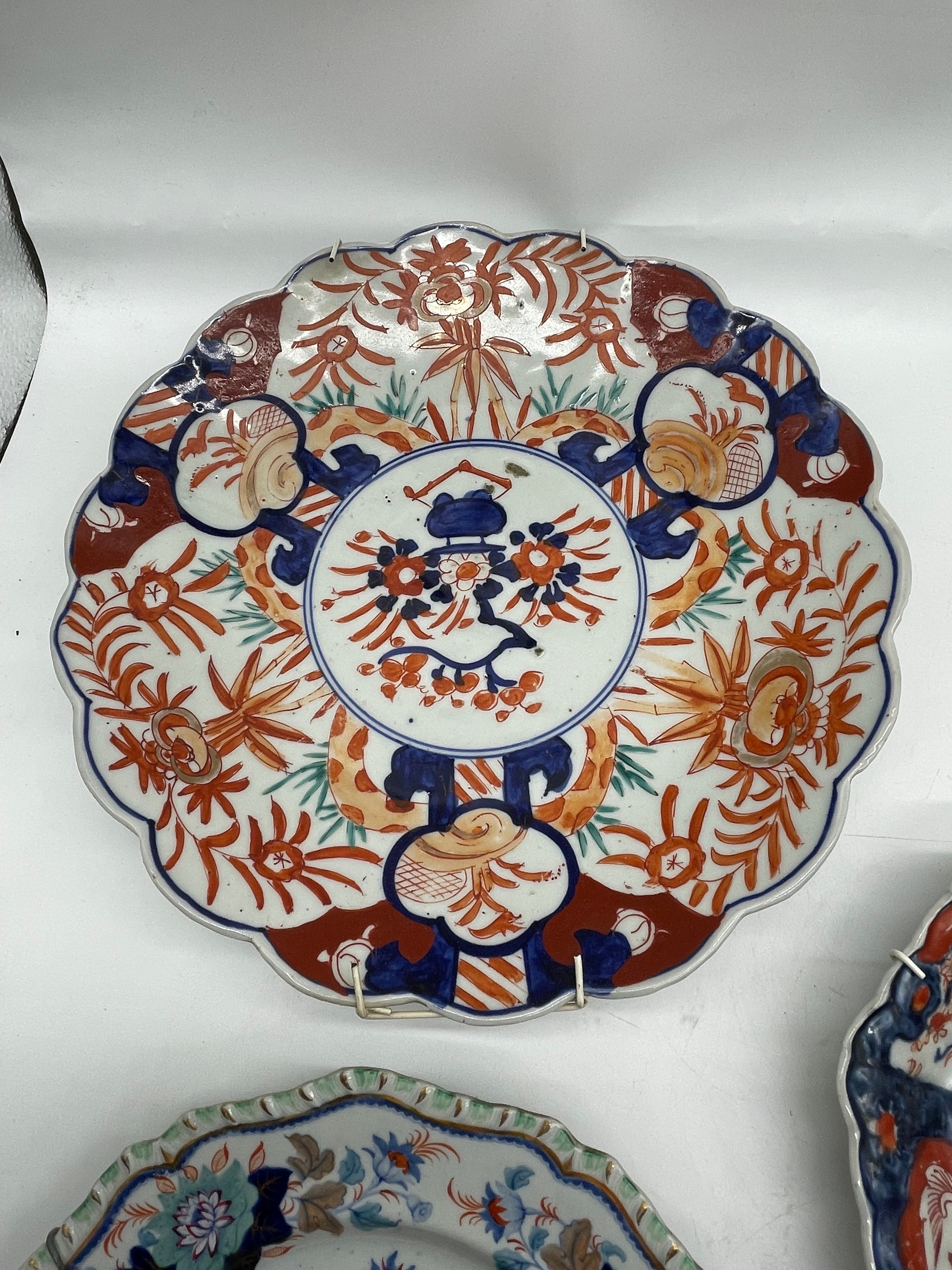 A group of ceramic plates including antique Japanese Imari plates
