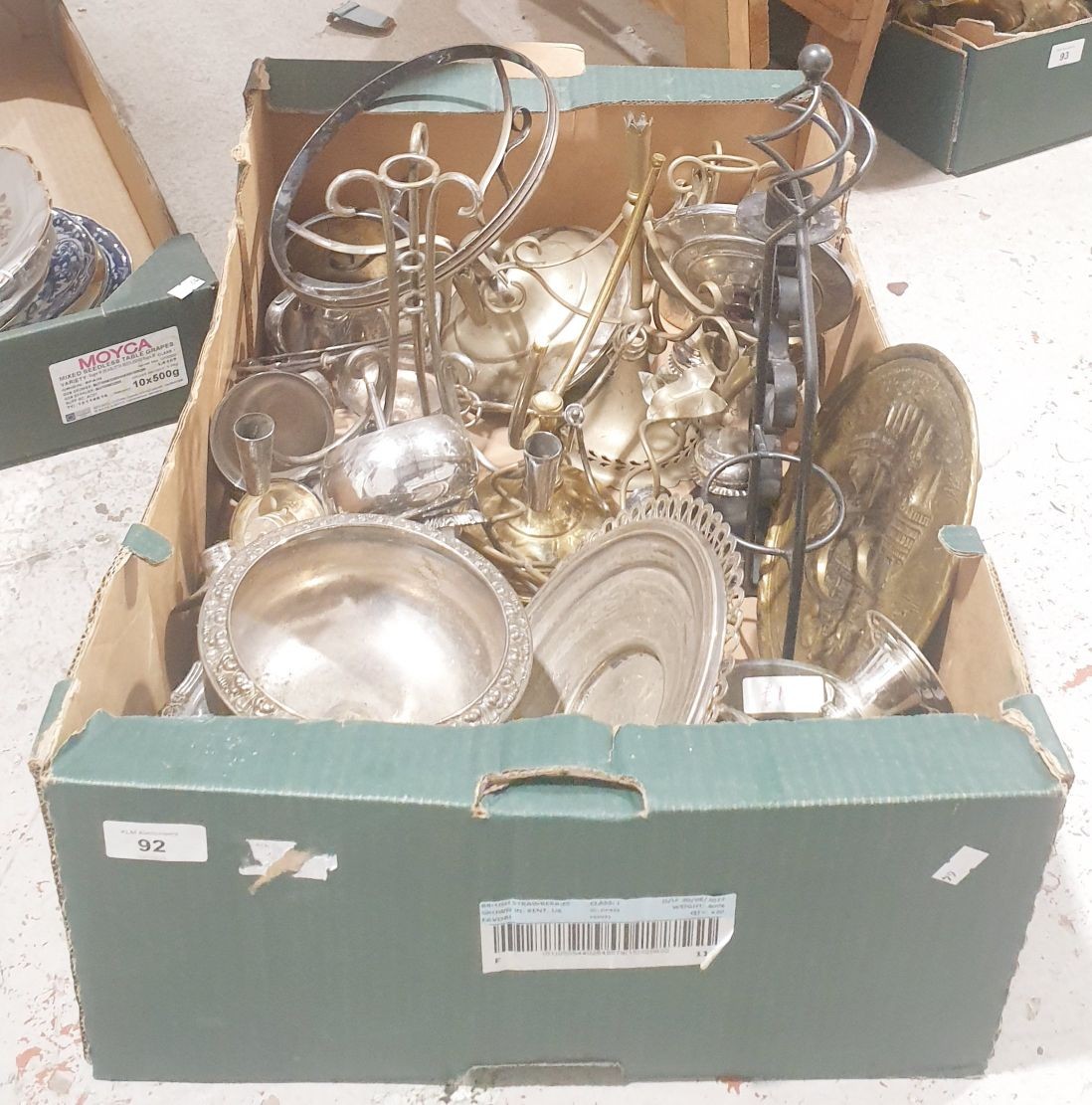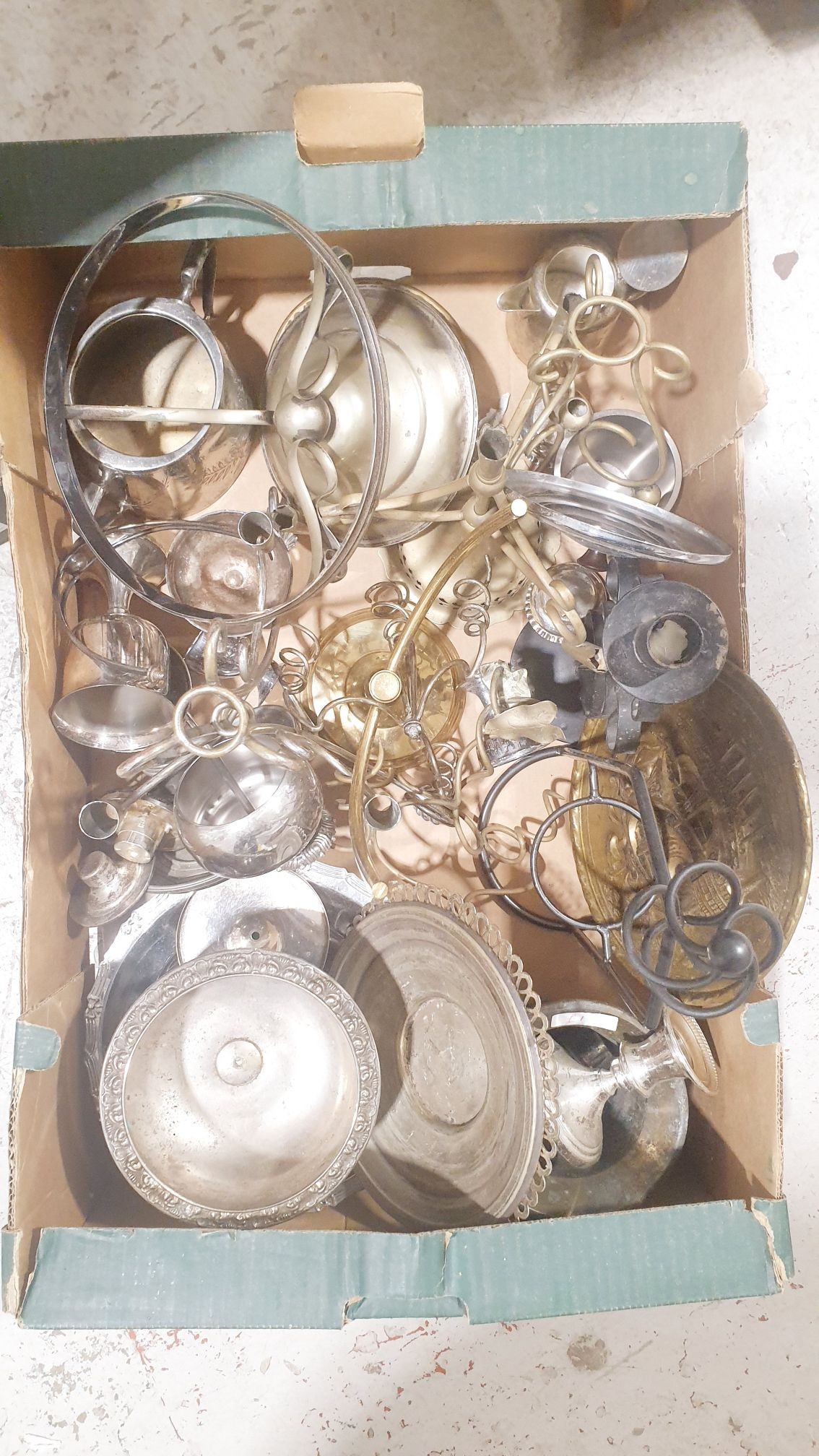 A box of metal ware. No shipping. Arrange collection or your own packer and shipper, please.
