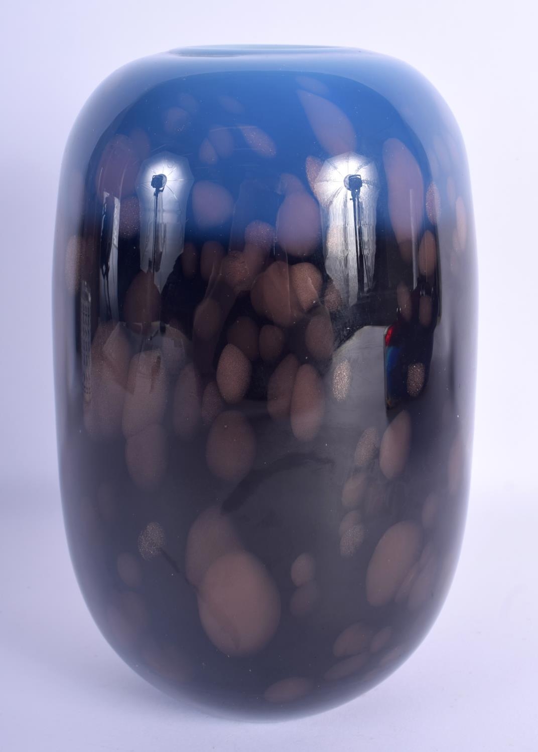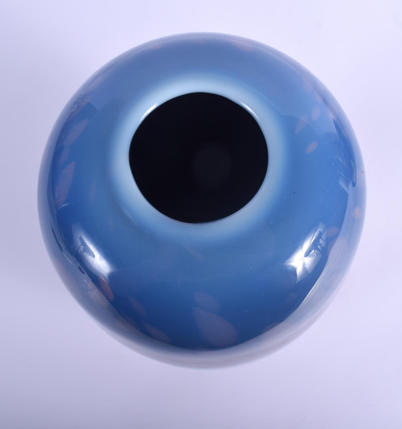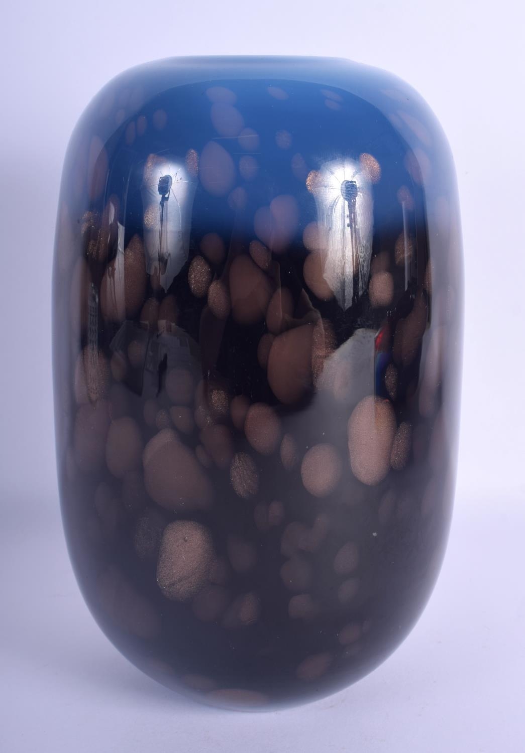 A SCOTTISH MONART BLUE GLASS VASE with splash decoration. 24 xm x 10 cm.