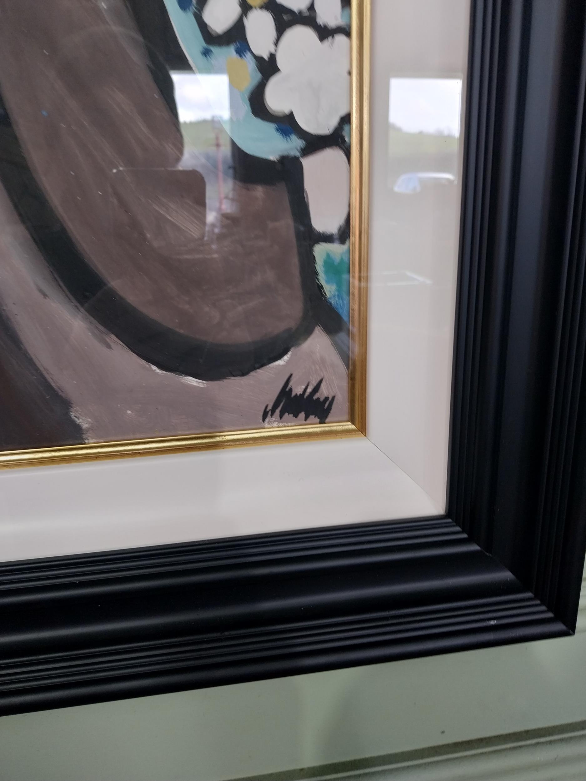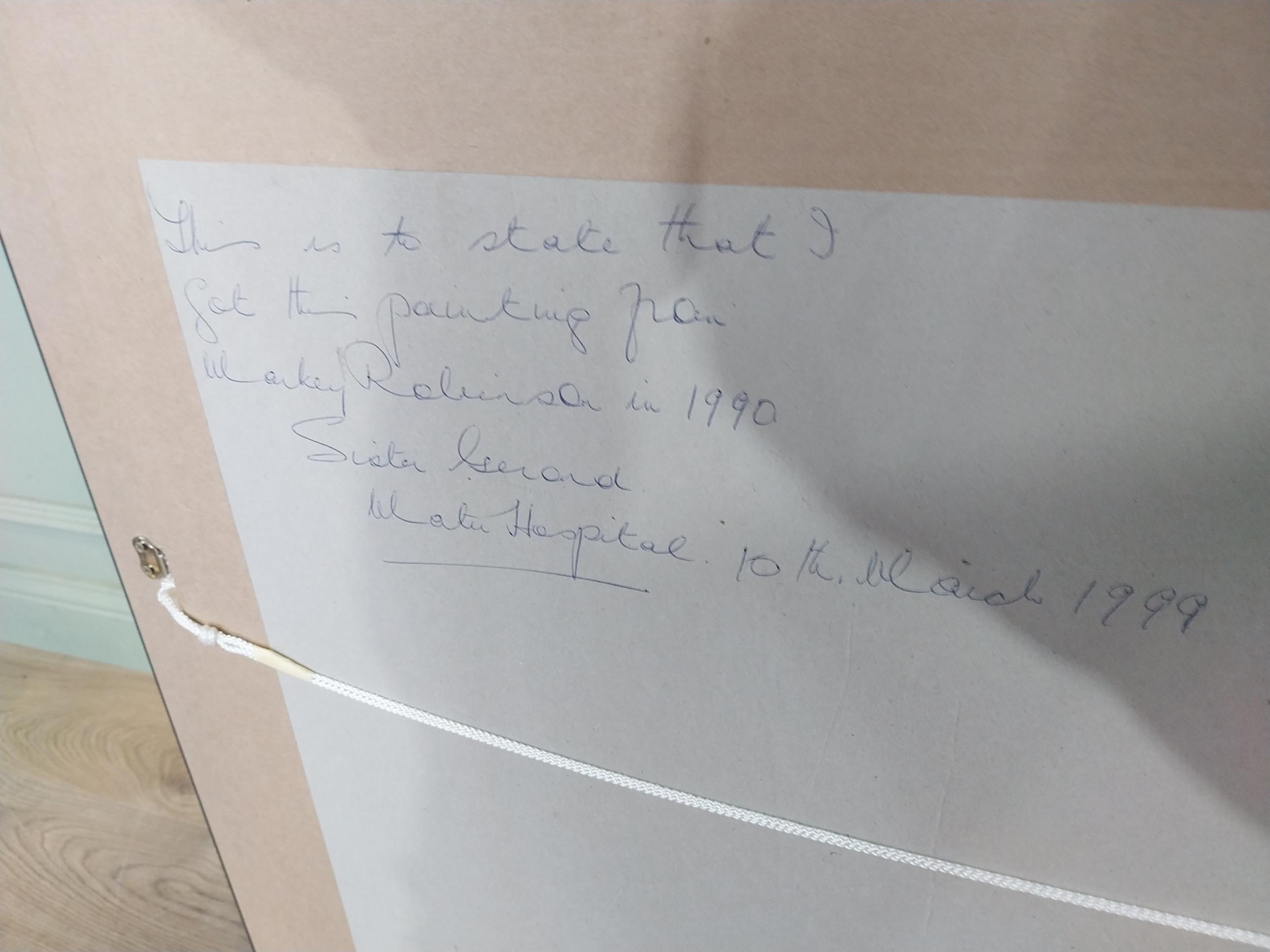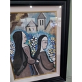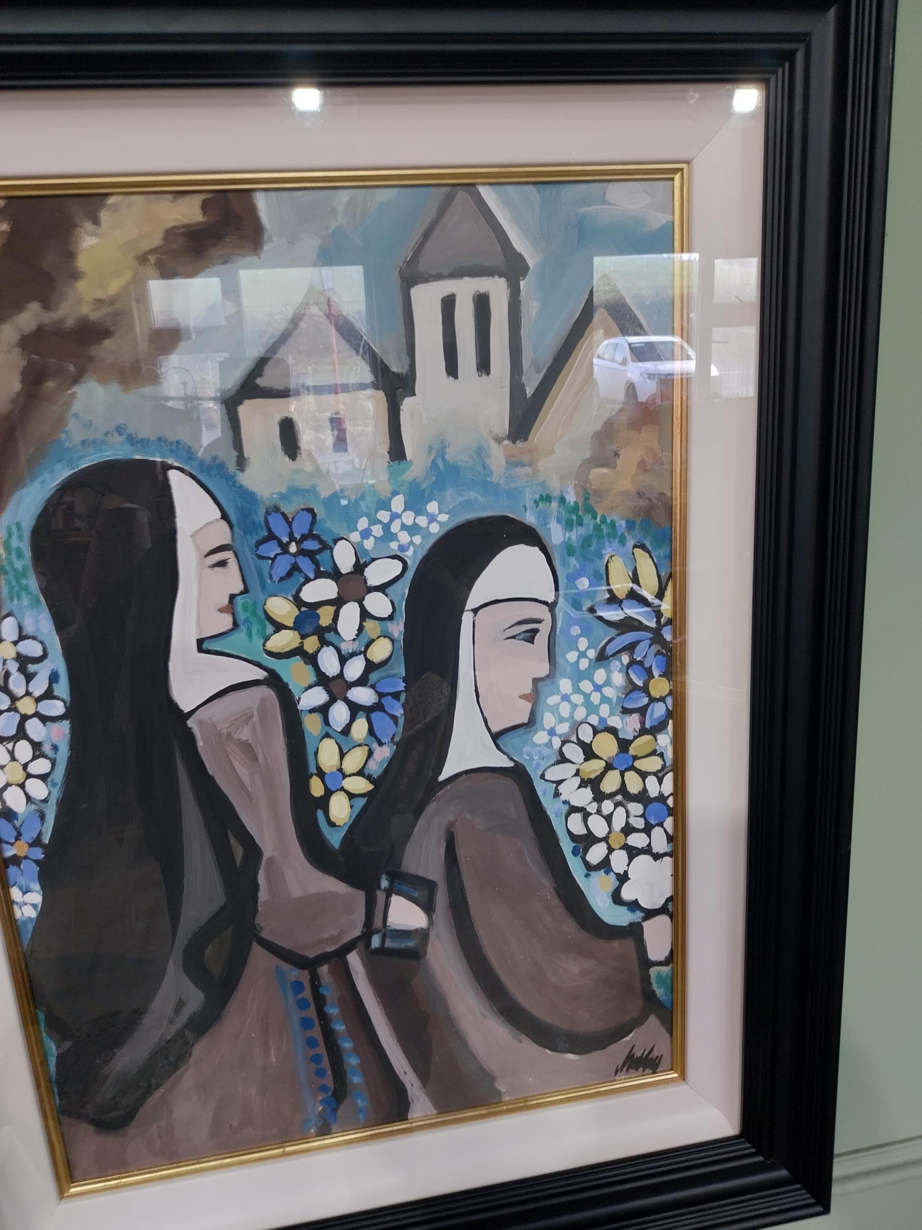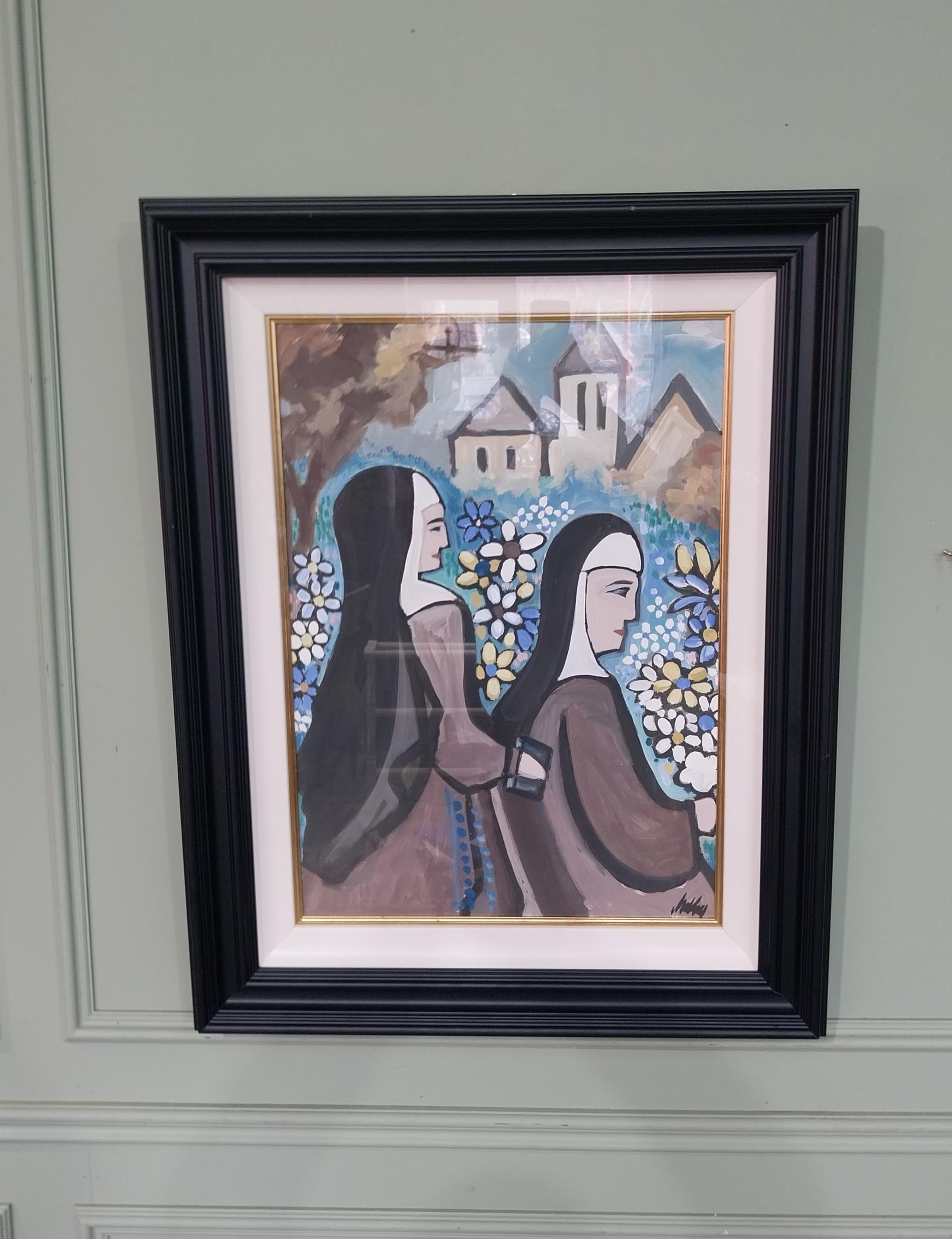 Nuns in Garden Markey Robinson gouache mounted in painted wooden frame. {66 cm H x 47 cm W}.